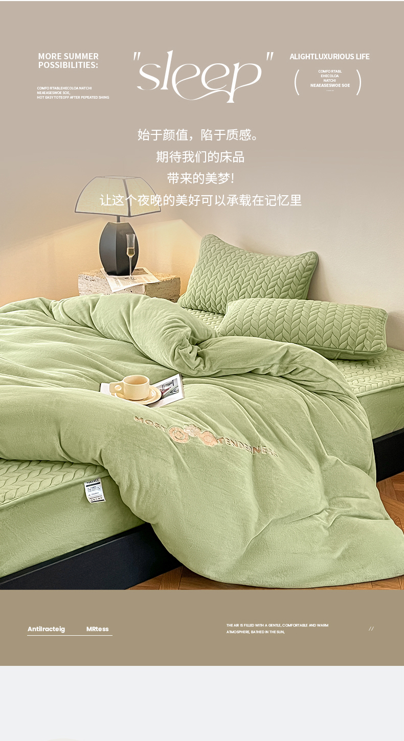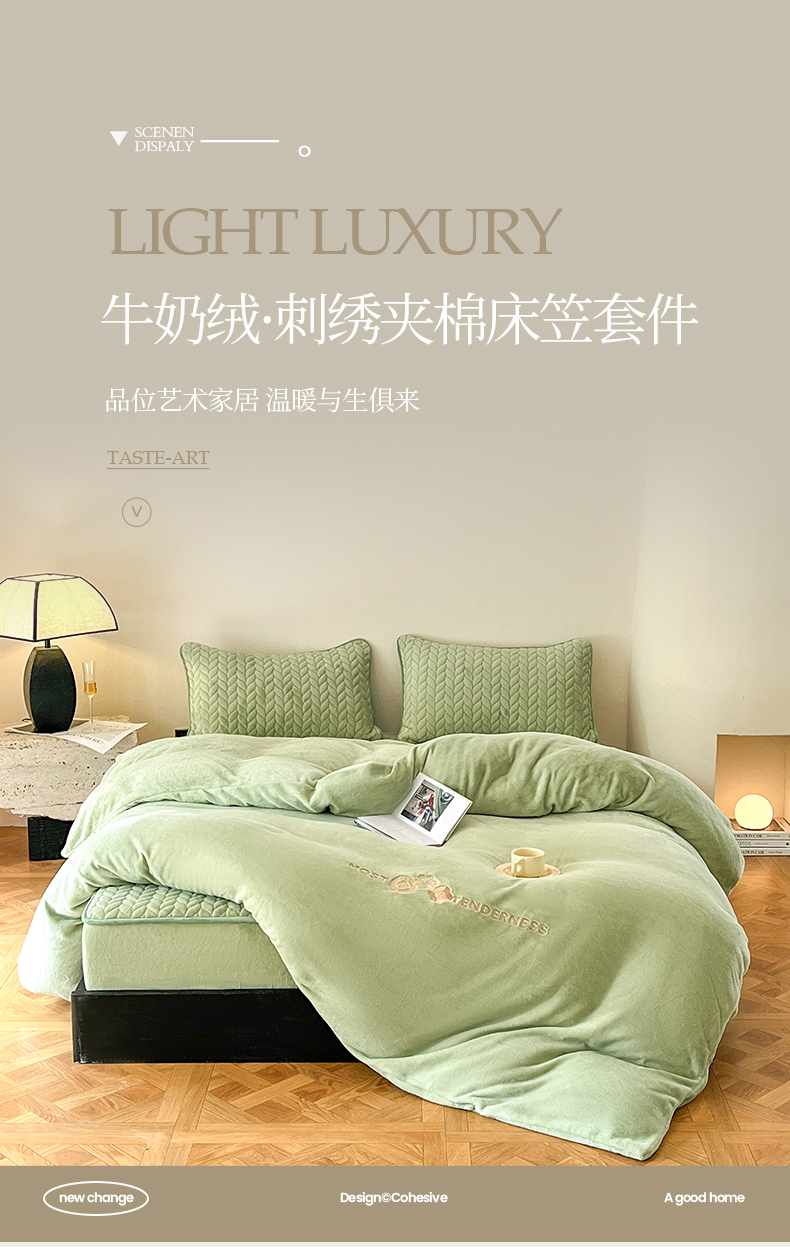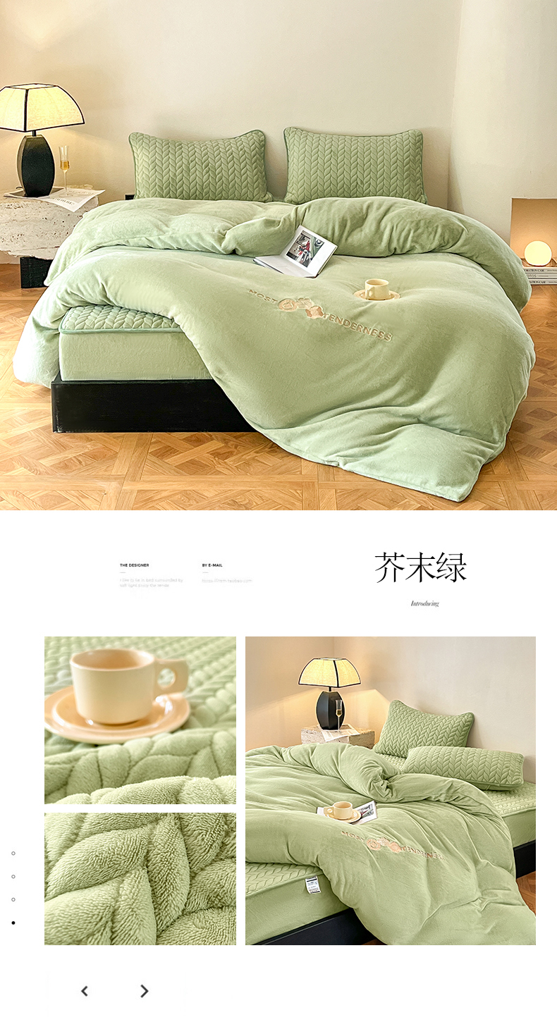 当前位置: 91家纺网 > 商品网购 > 床品套件 > 四件套 > 牛奶绒四件套 > 欧邦 新款轻奢牛奶绒刺绣四件套 芥末绿