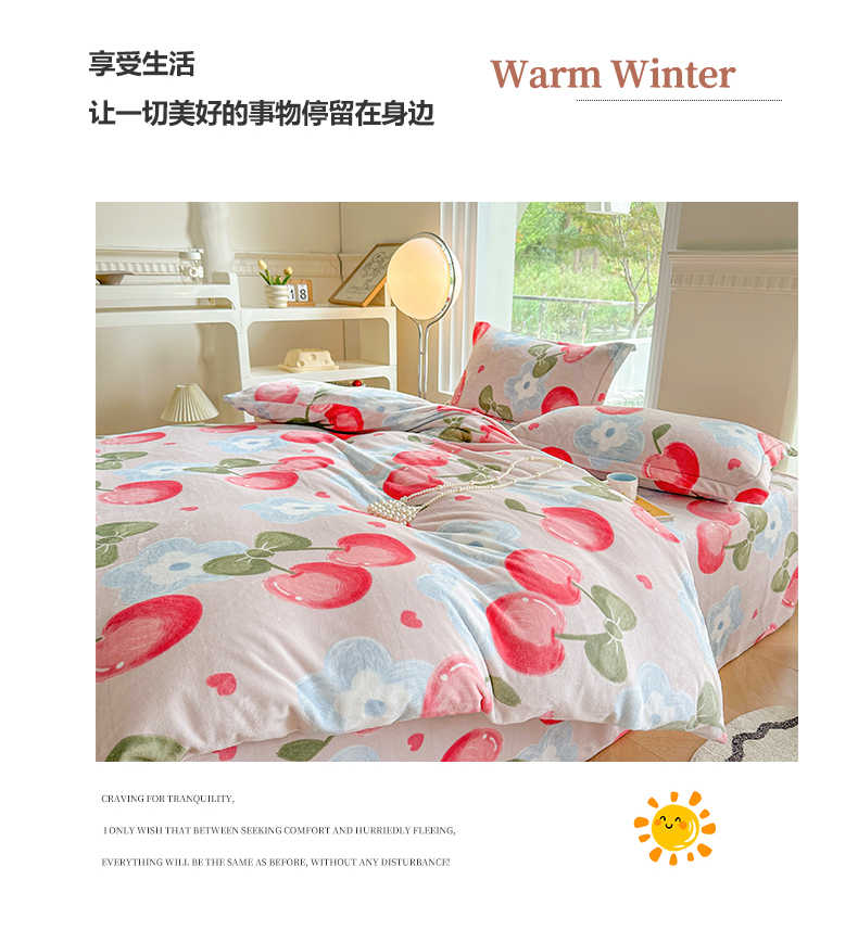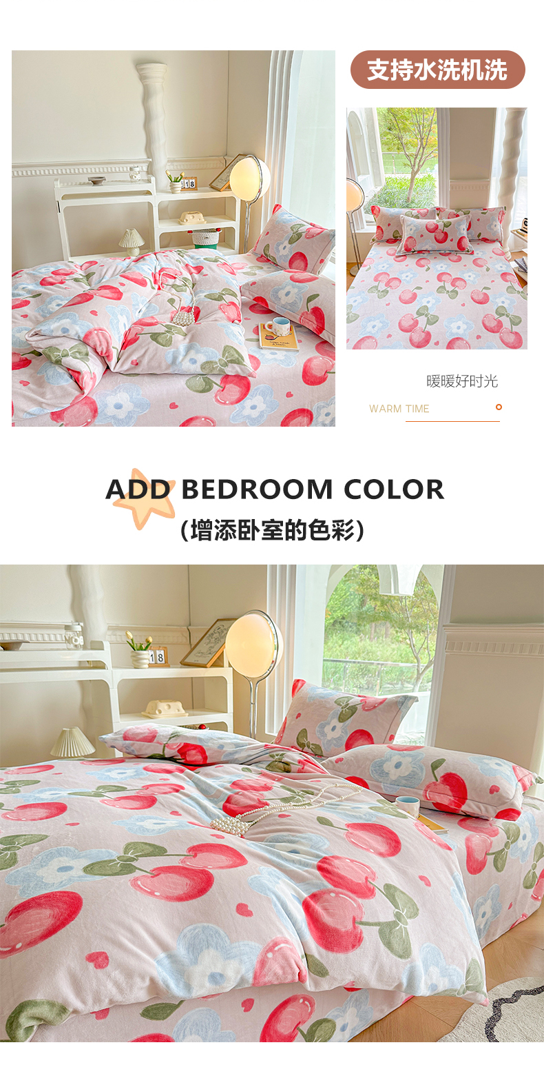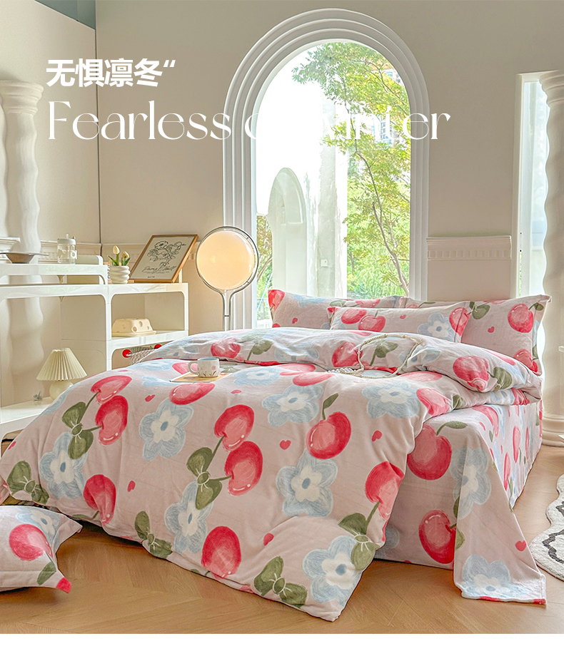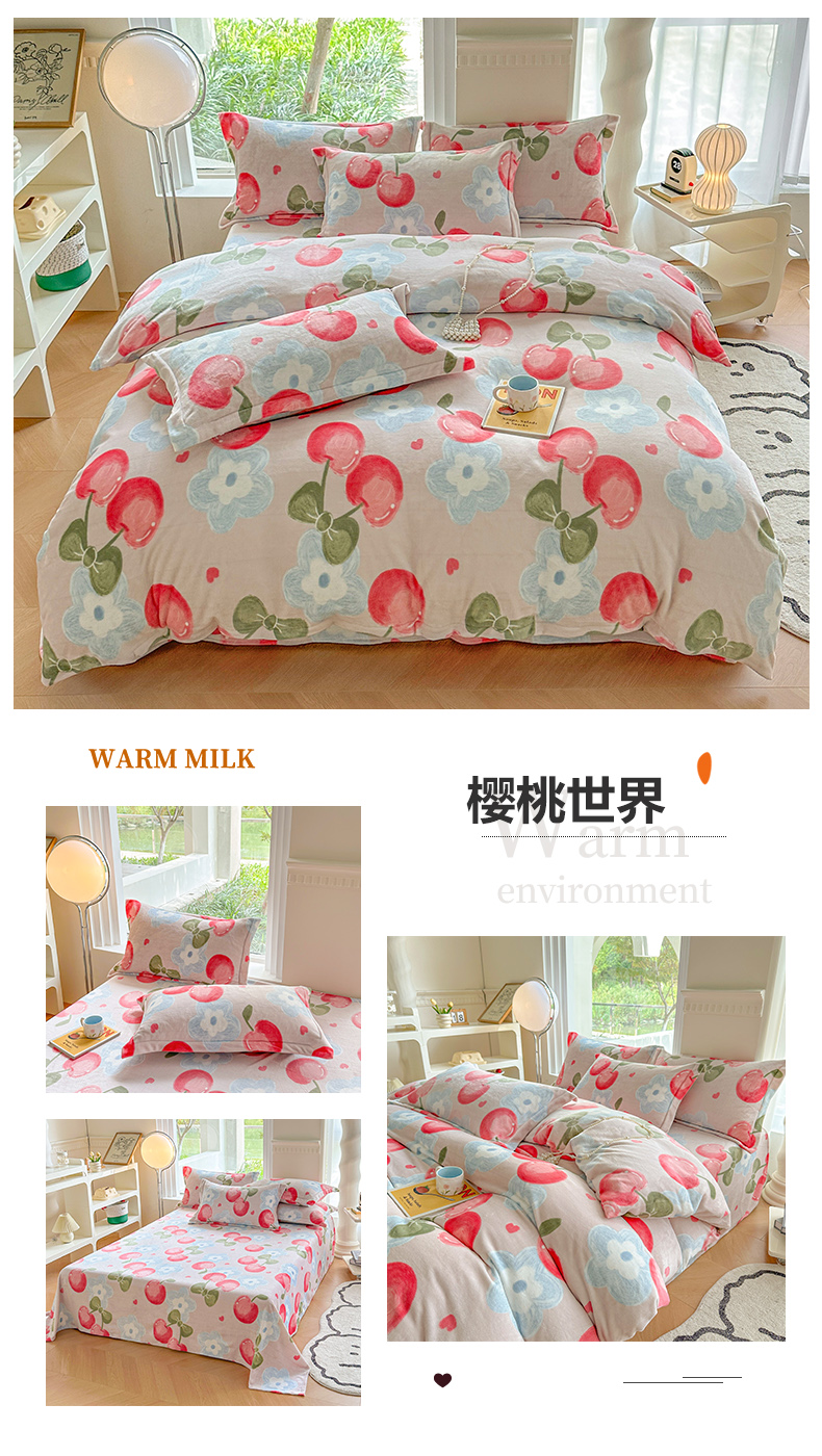商品名称:2024秋冬新款牛奶绒单被套 樱桃世界