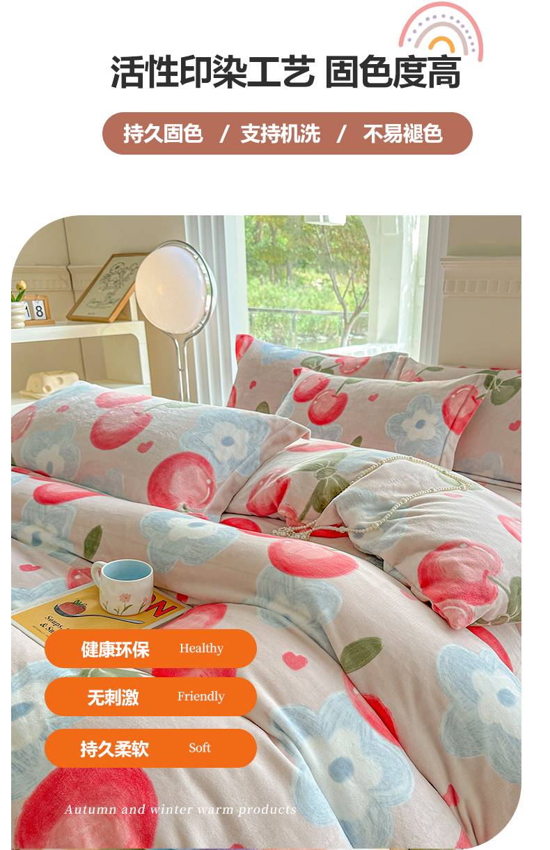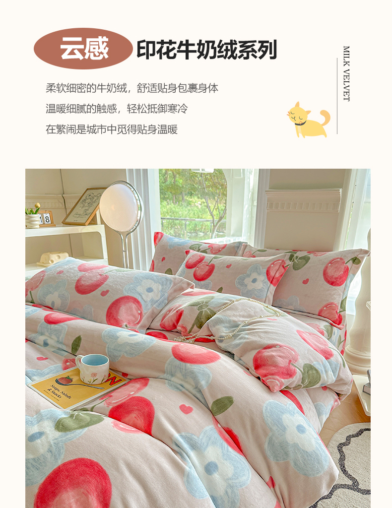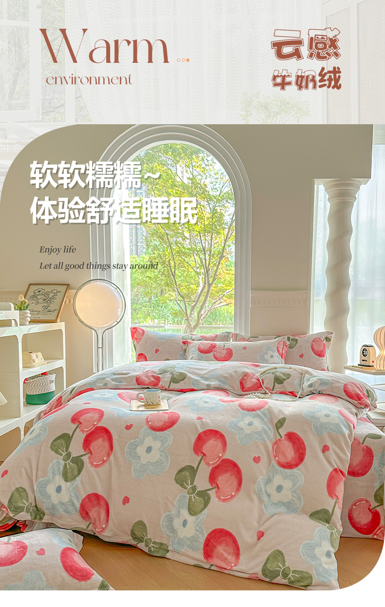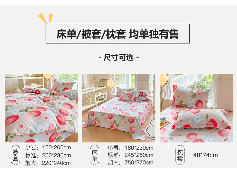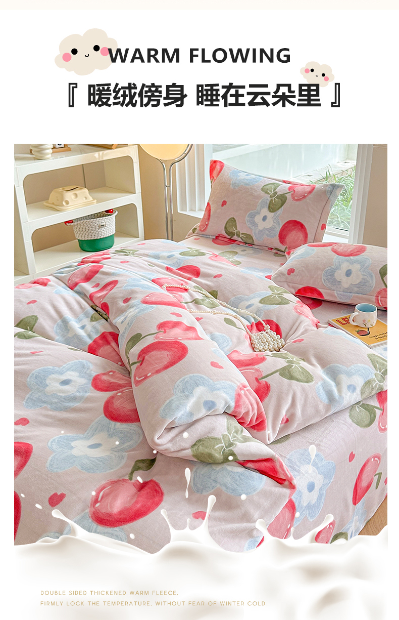 商品名称:2024秋冬新款牛奶绒单被套 樱桃世界