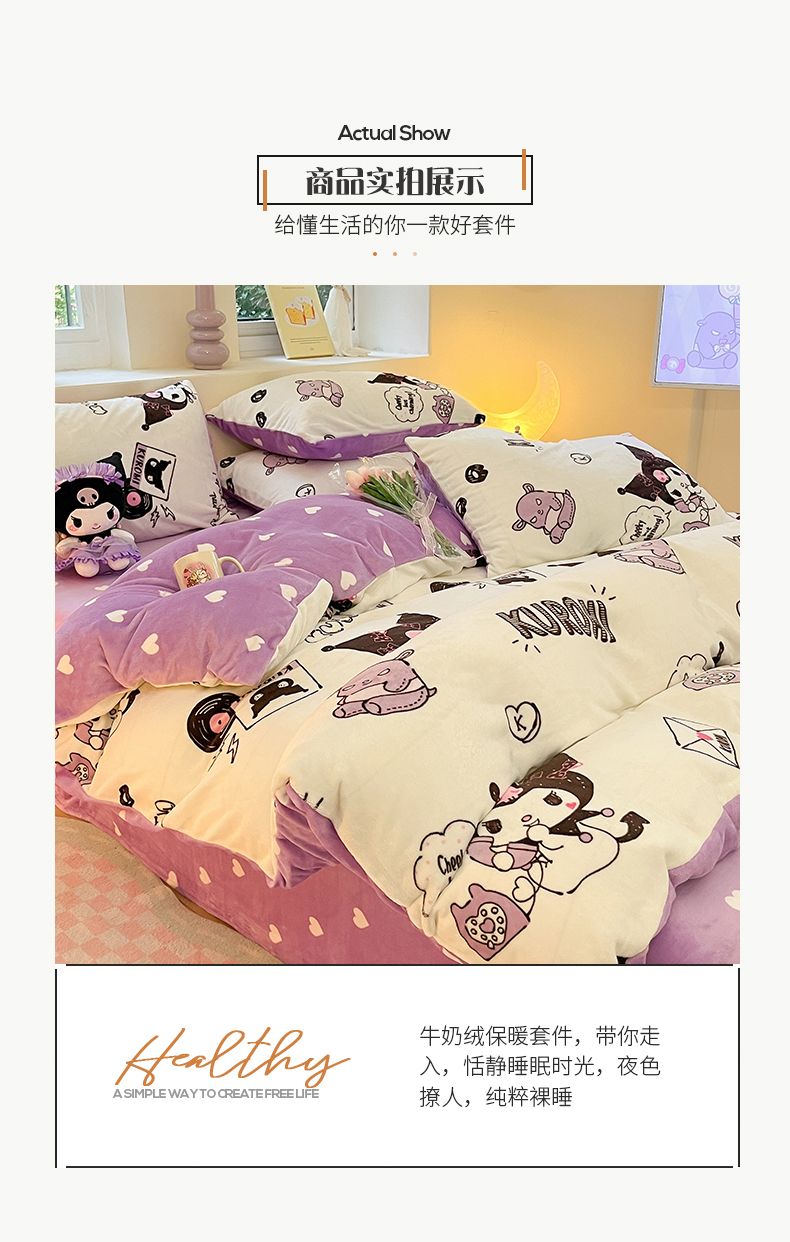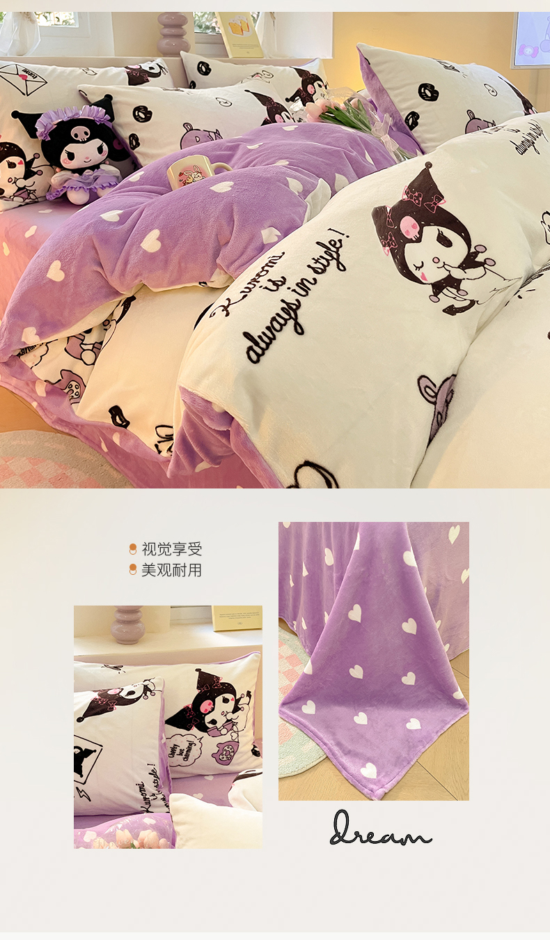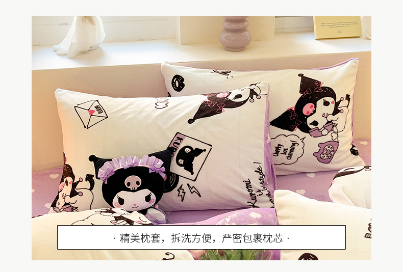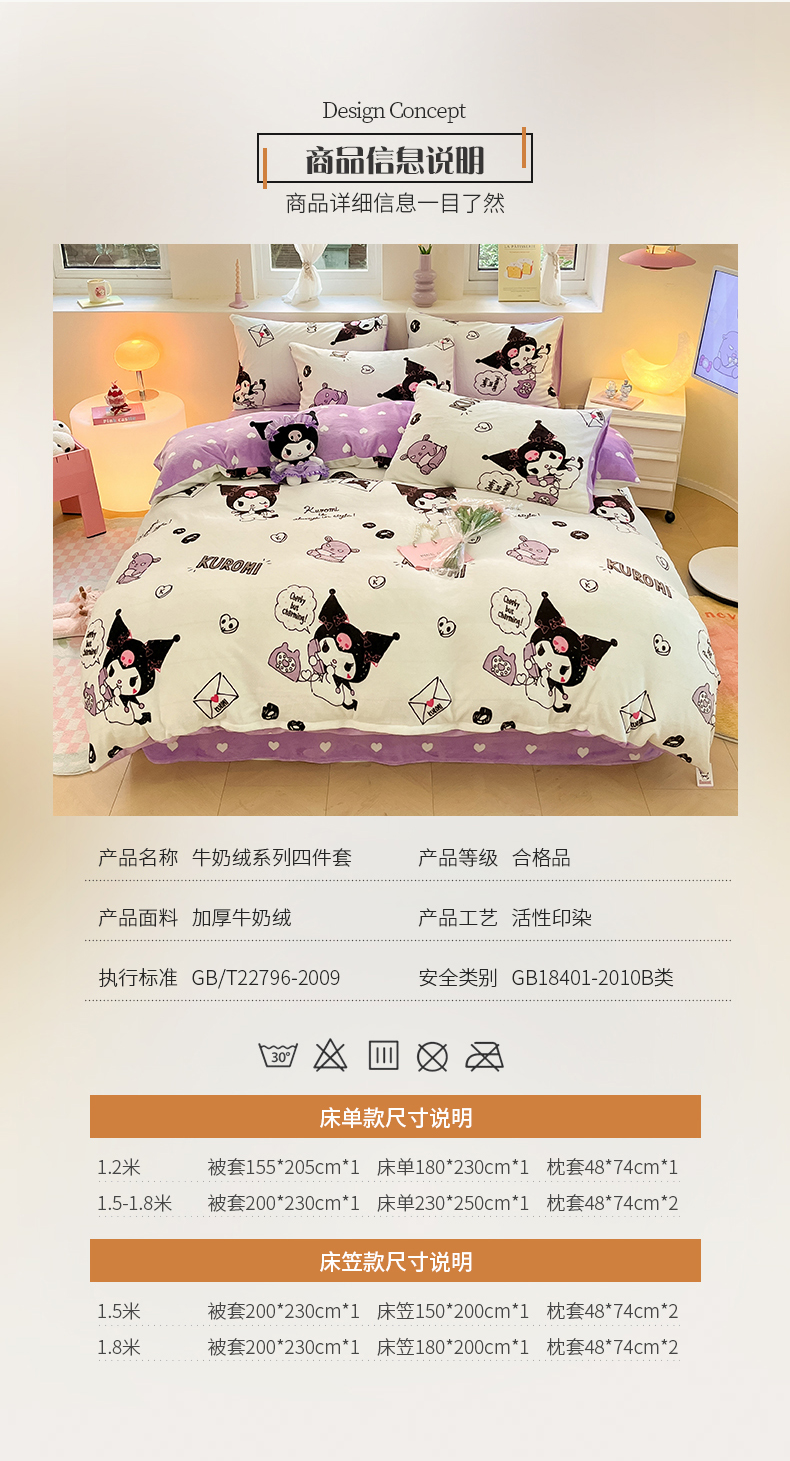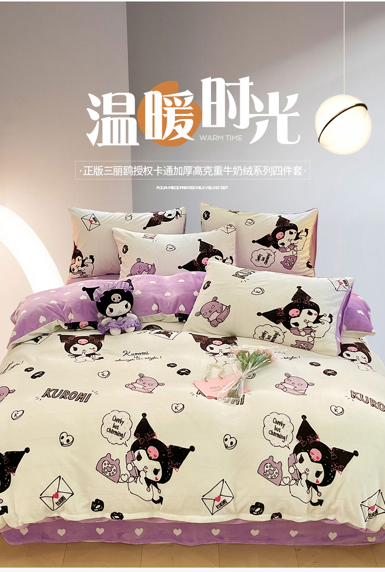 当前位置: 91家纺网 > 商品网购 > 床品套件 > 四件套 > 牛奶绒四件套 > 桃子 2023新款正版三丽鸥授权卡通加厚高克重牛奶绒系列四件套 绒三丽鸥-乖乖库洛米