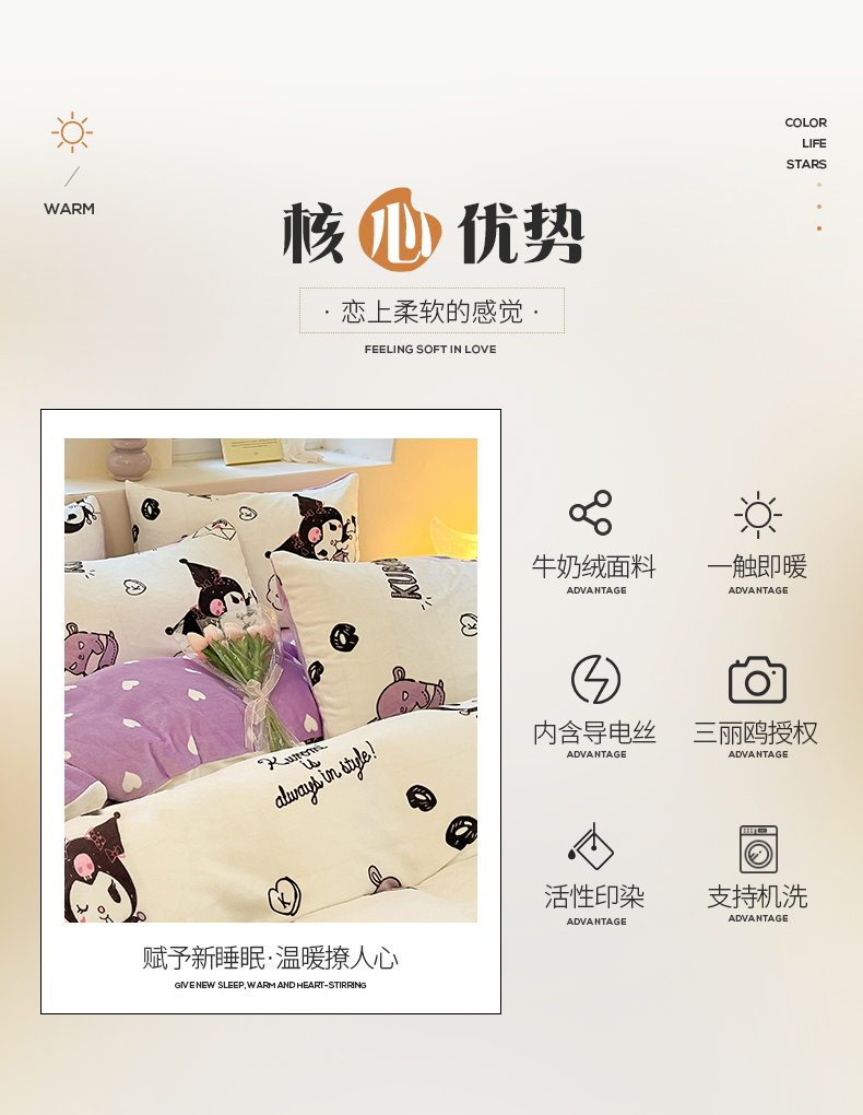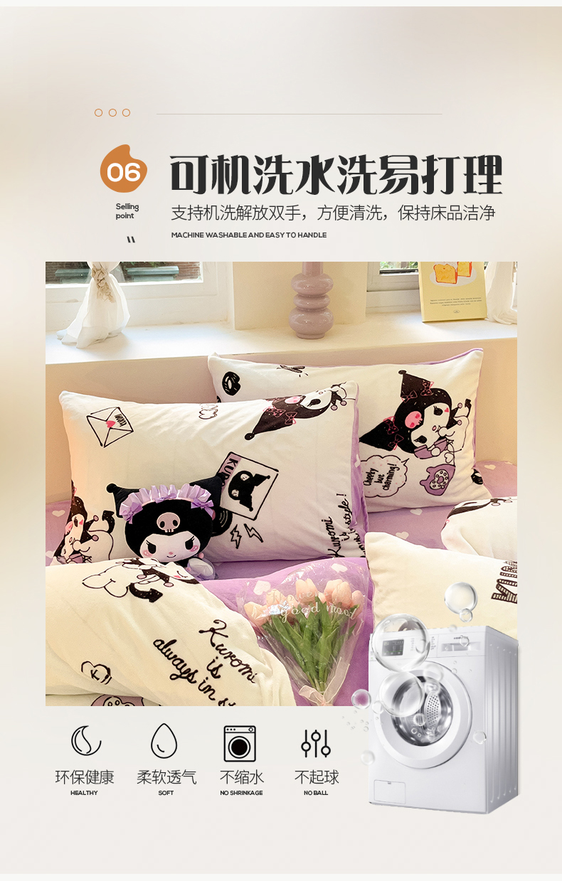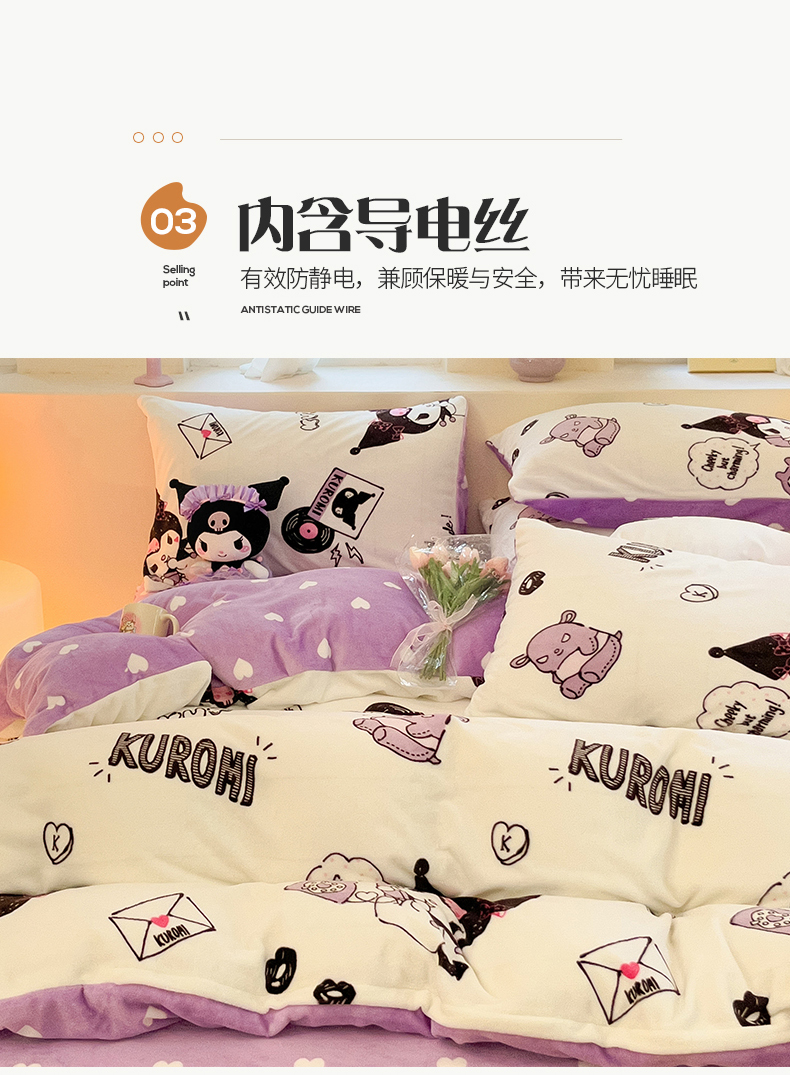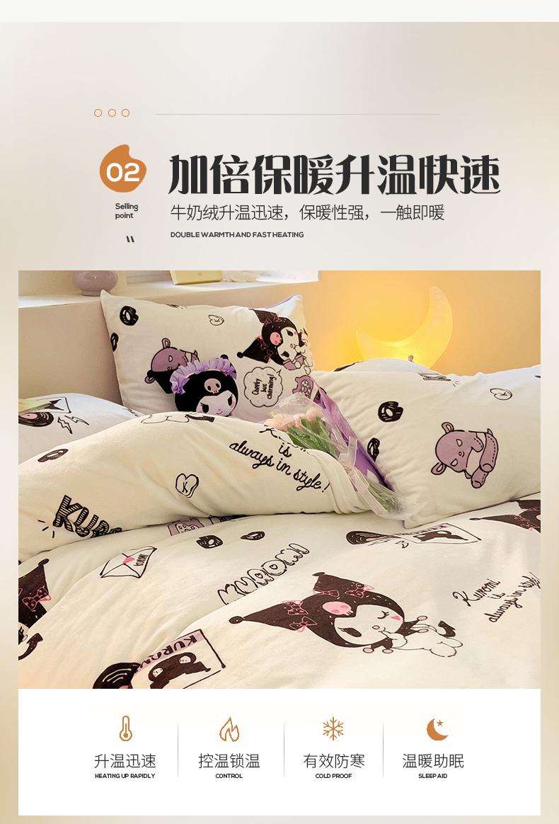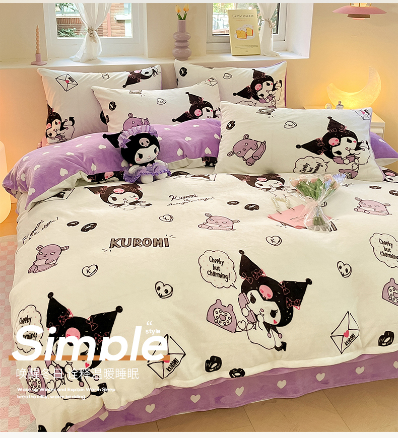 当前位置: 91家纺网 > 商品网购 > 床品套件 > 四件套 > 牛奶绒四件套 > 桃子 2023新款正版三丽鸥授权卡通加厚高克重牛奶绒系列四件套 绒三丽鸥-乖乖库洛米