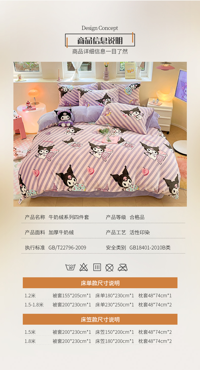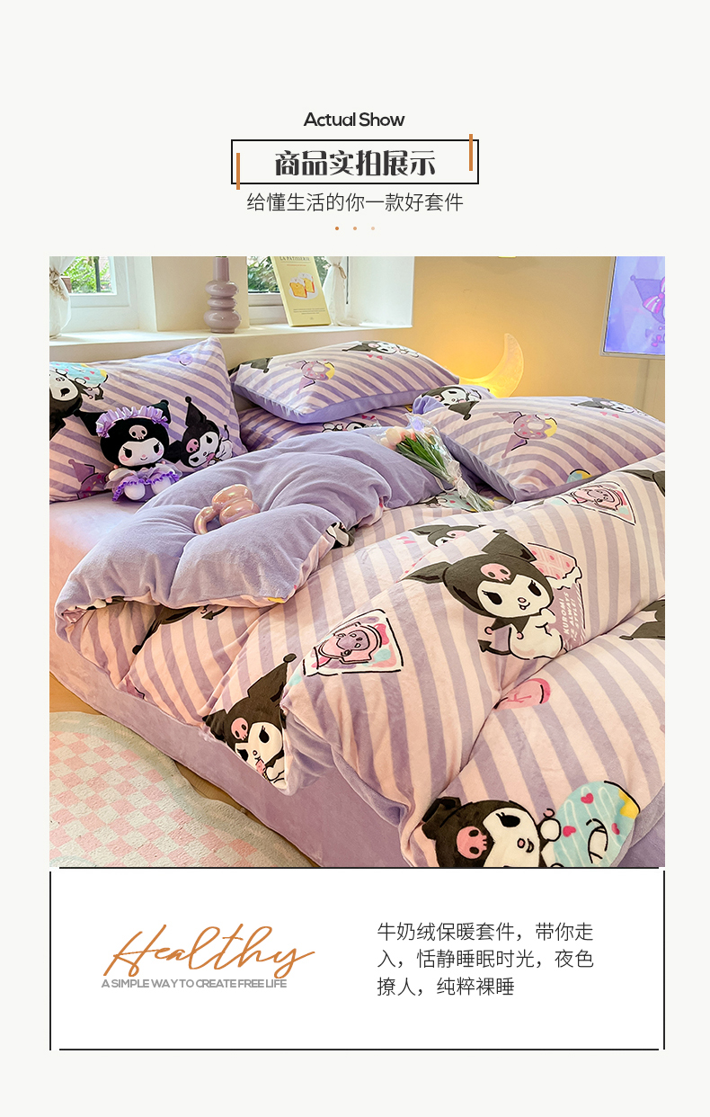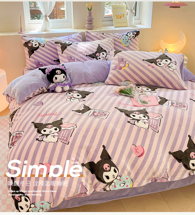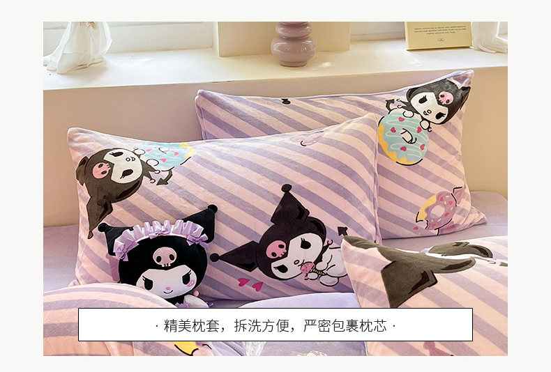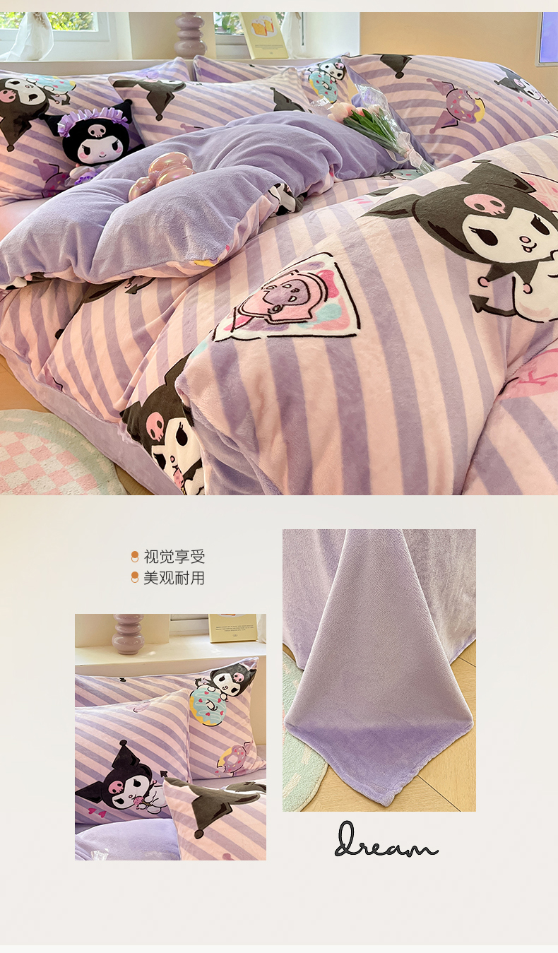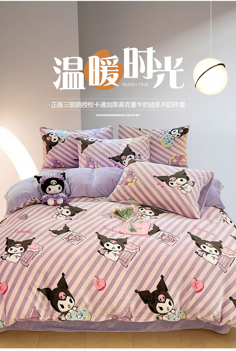 当前位置: 91家纺网 > 商品网购 > 床品套件 > 四件套 > 牛奶绒四件套 > 桃子 2023新款正版三丽鸥授权卡通加厚高克重牛奶绒系列四件套 绒三丽鸥-紫巧库洛米