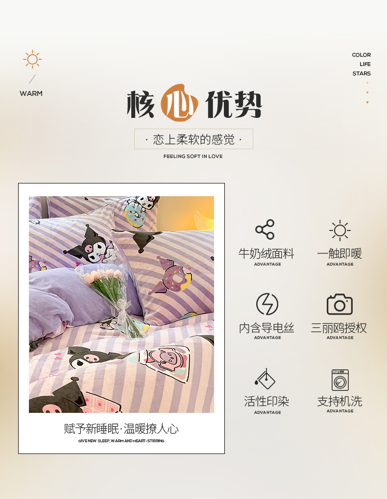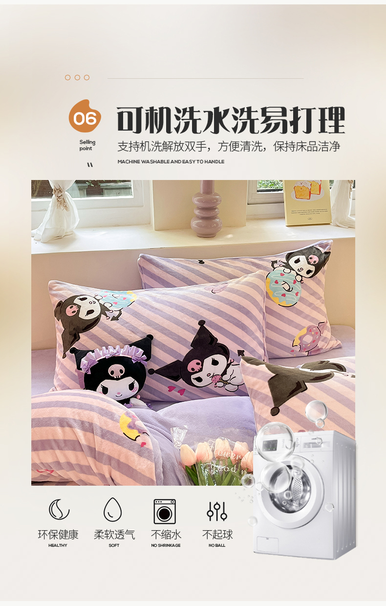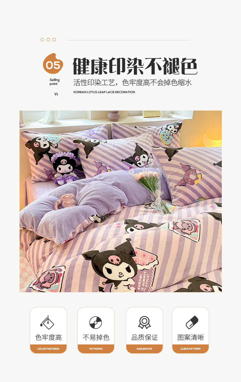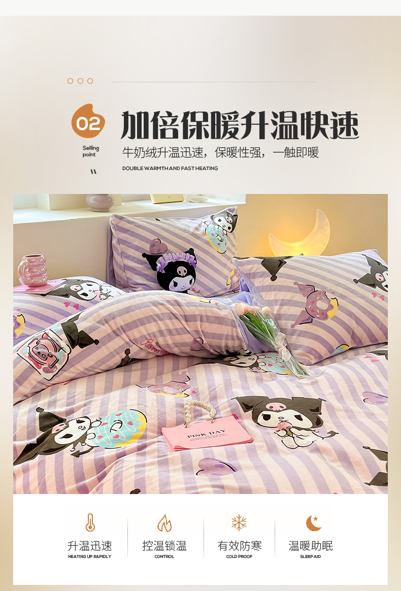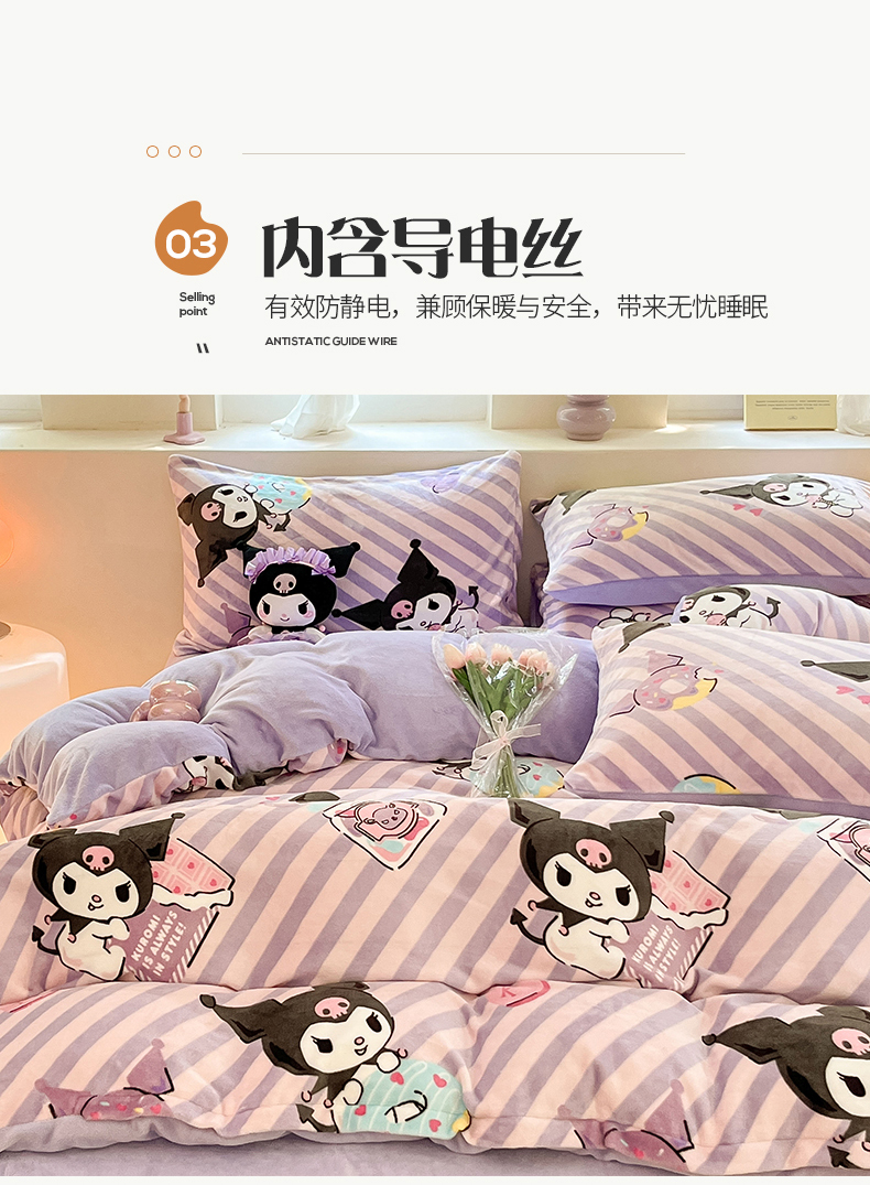 当前位置: 91家纺网 > 商品网购 > 床品套件 > 四件套 > 牛奶绒四件套 > 桃子 2023新款正版三丽鸥授权卡通加厚高克重牛奶绒系列四件套 绒三丽鸥-紫巧库洛米