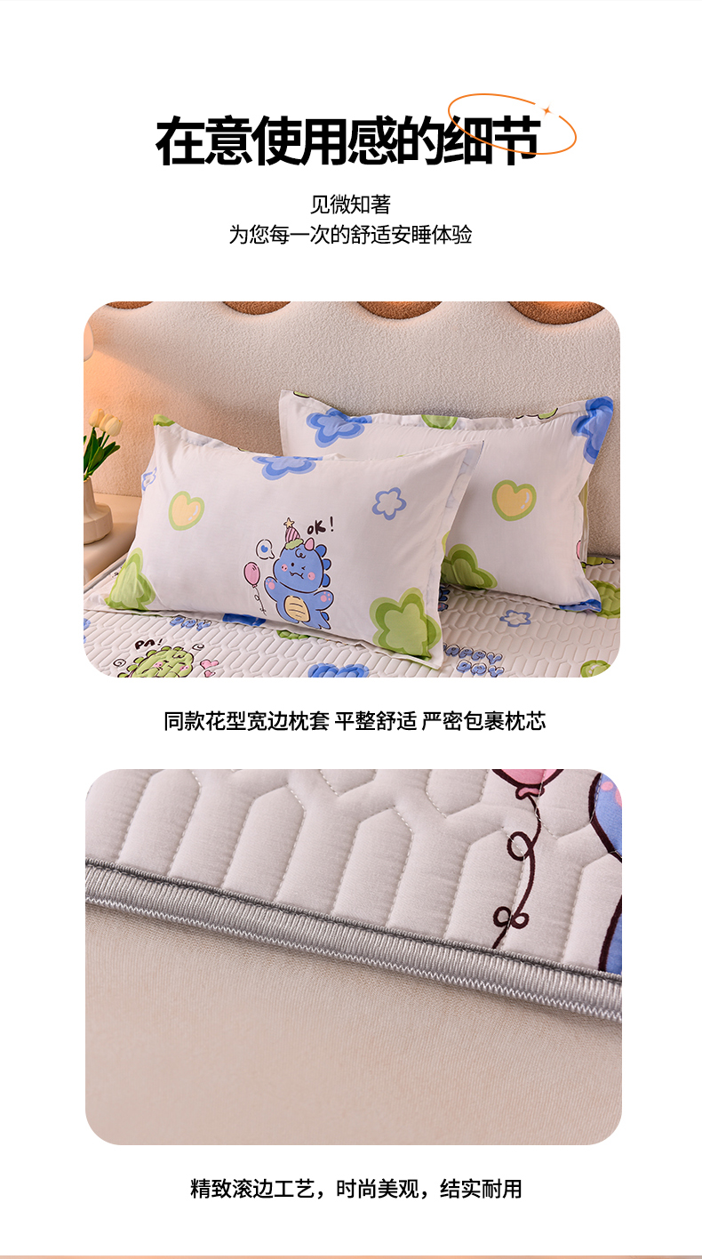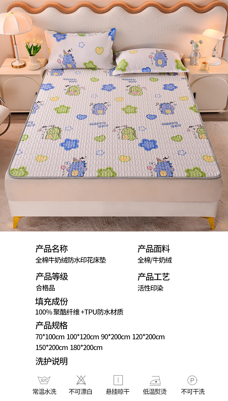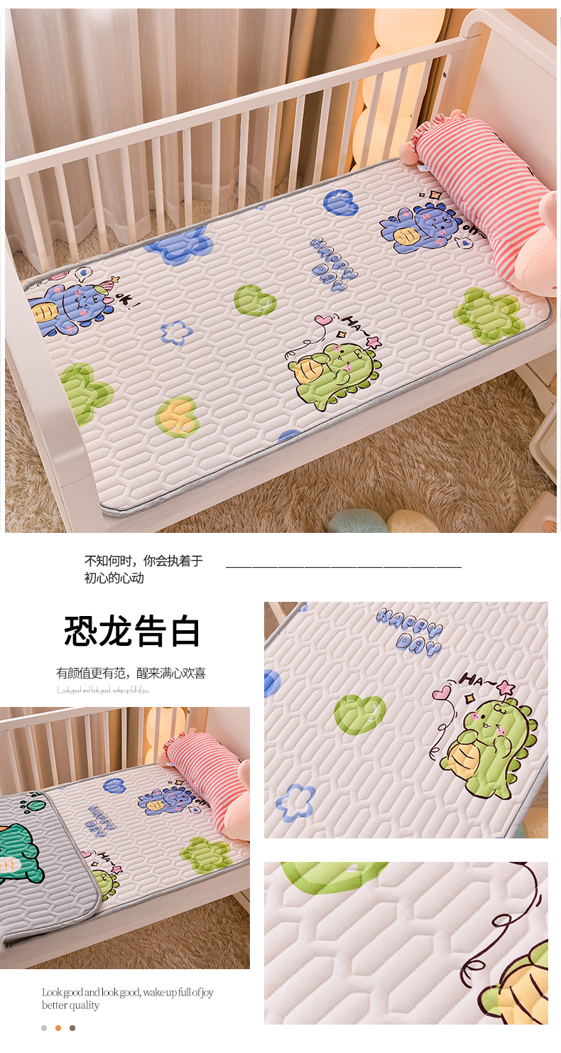 商品名称:床笠人家 2025新款A棉B绒-双面防水护理垫儿童床 恐龙告白
