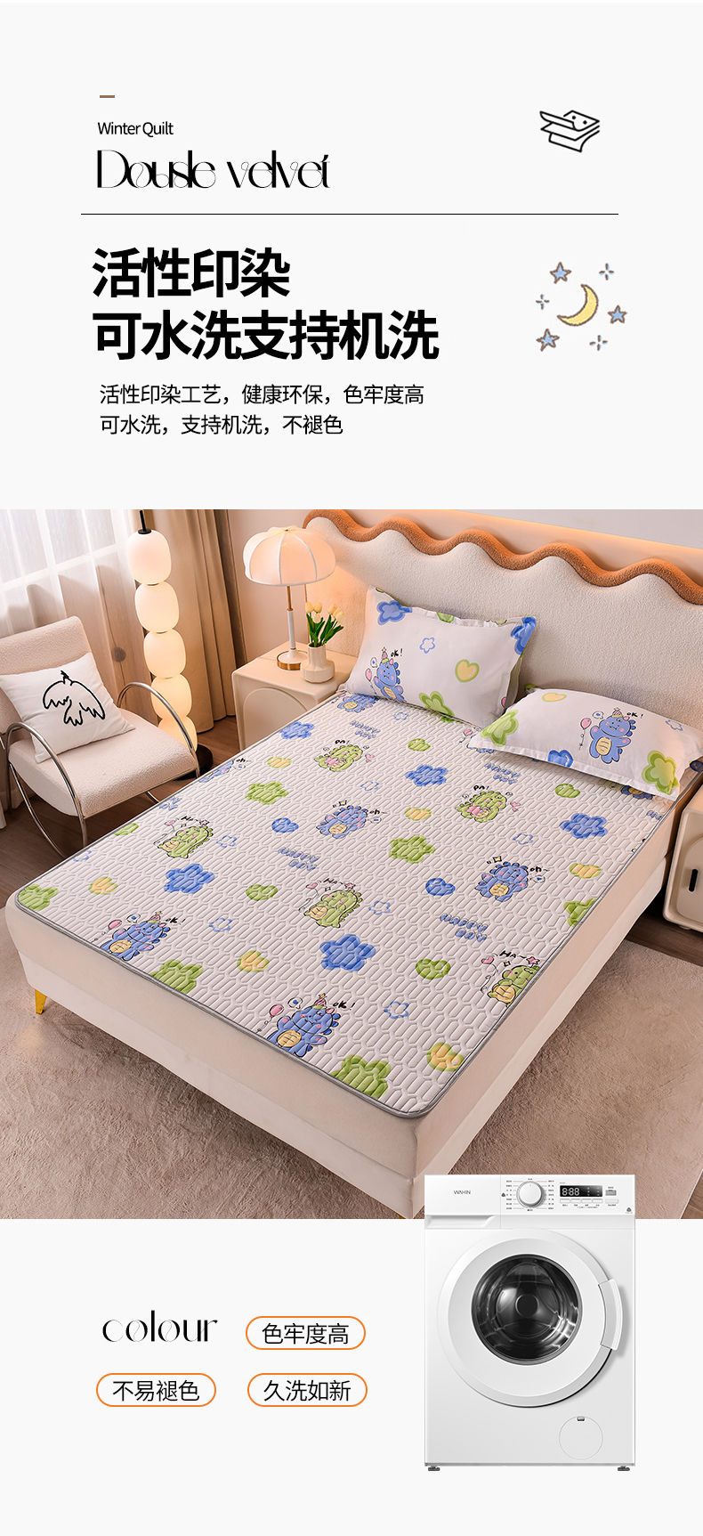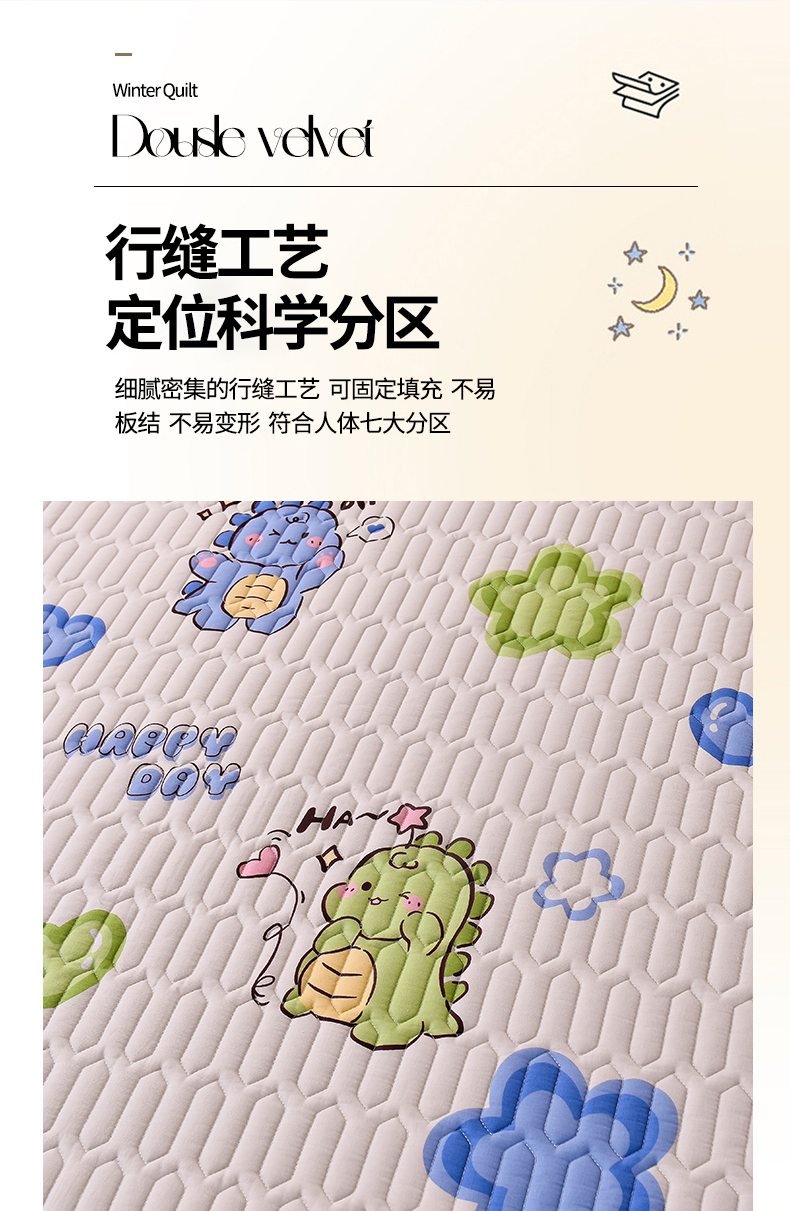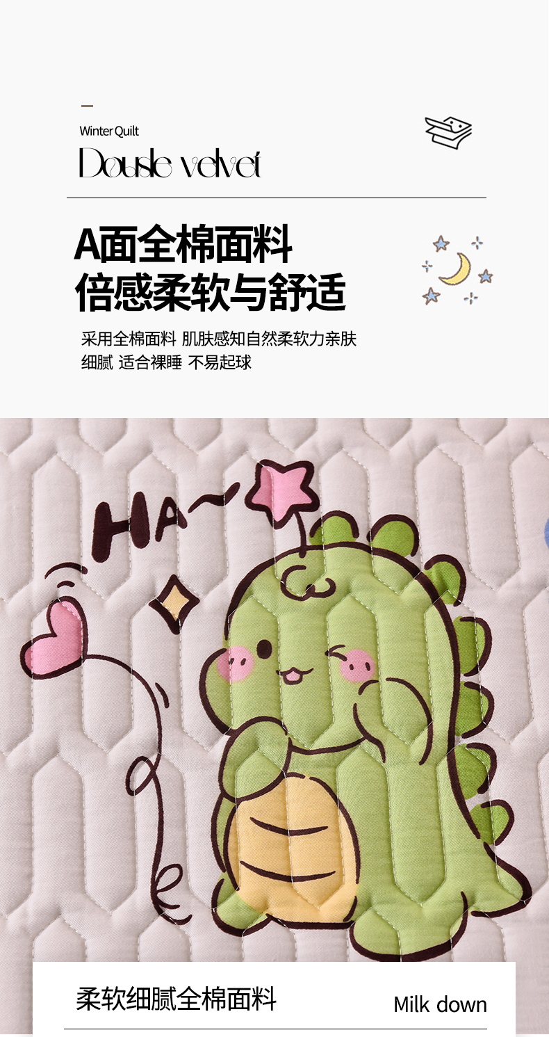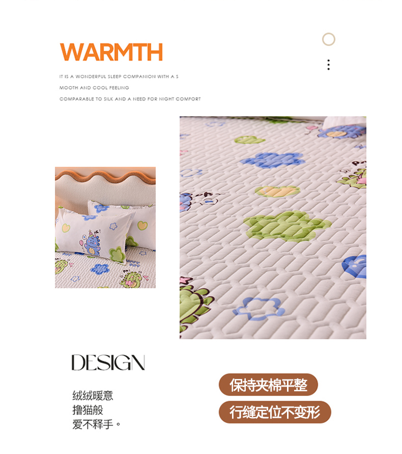 商品名称:床笠人家 2025新款A棉B绒-双面防水护理垫儿童床 恐龙告白