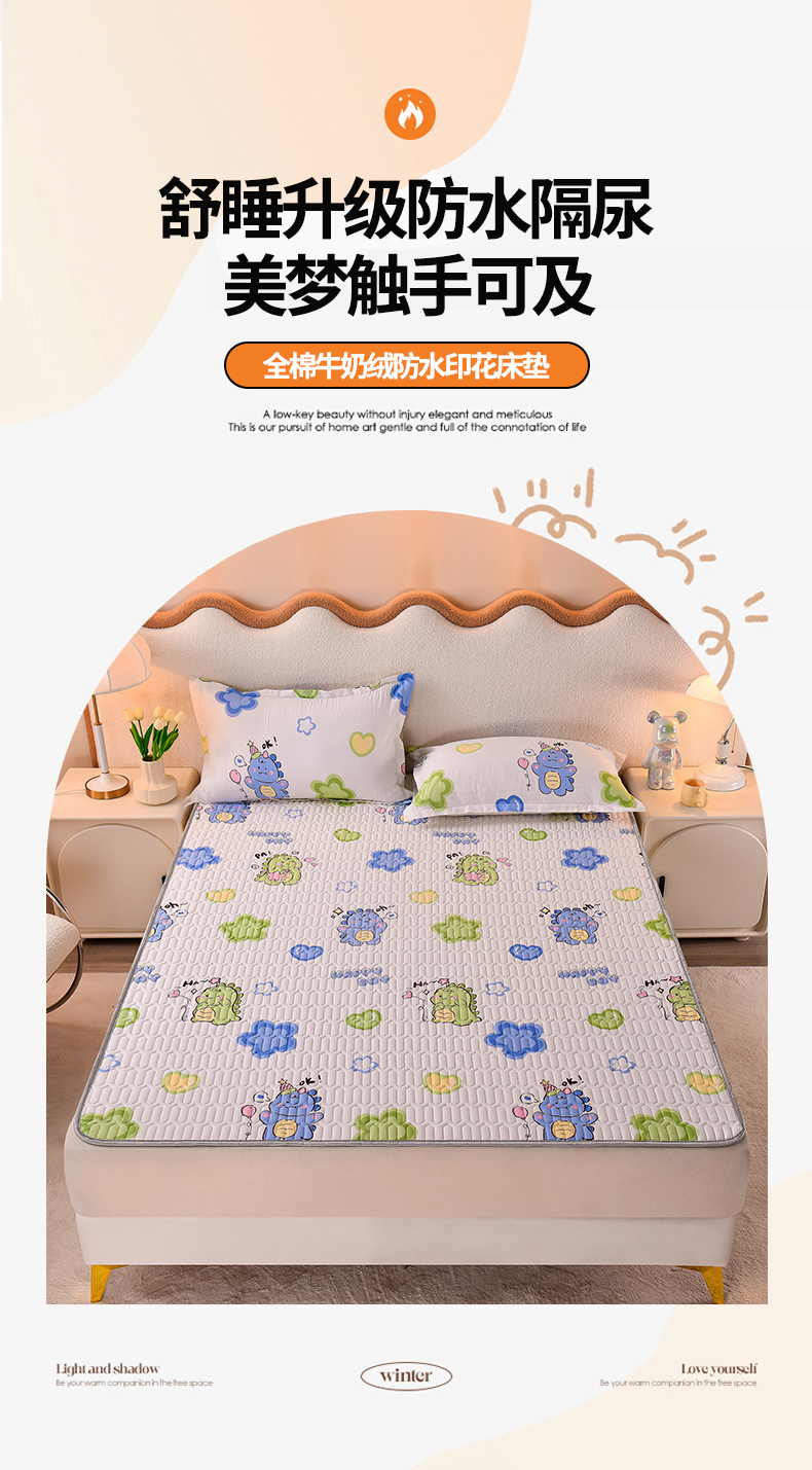 床笠人家 2025新款A棉B绒-双面防水护理垫儿童床 恐龙告白