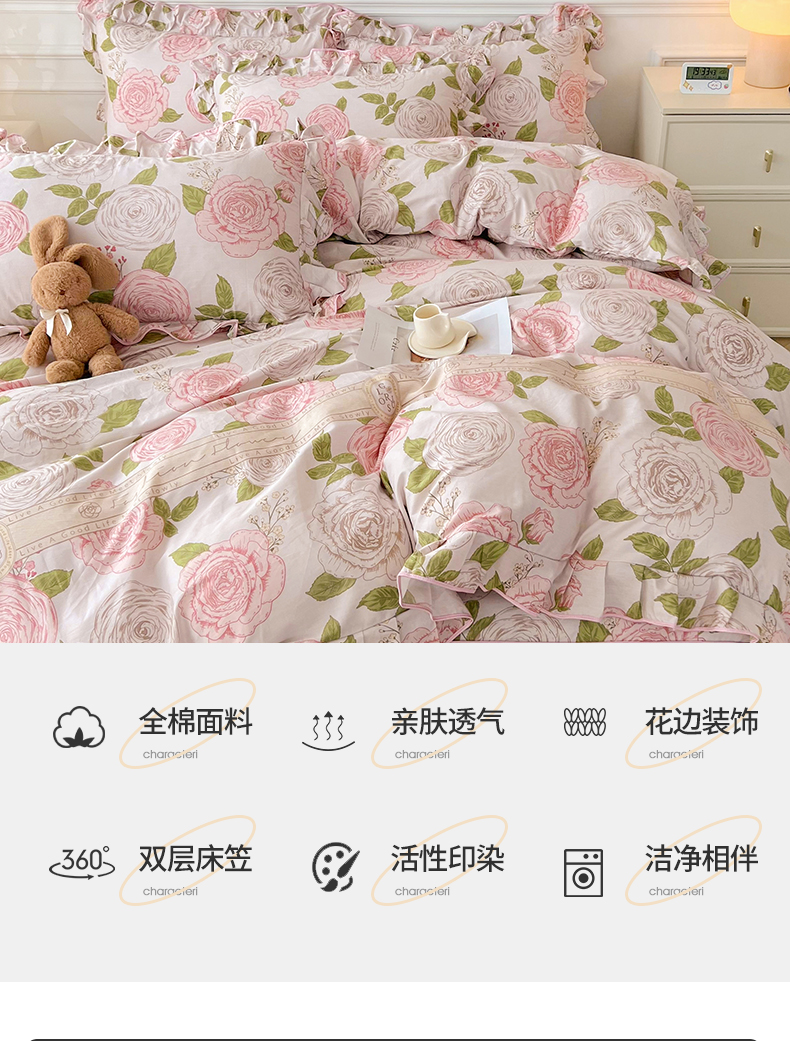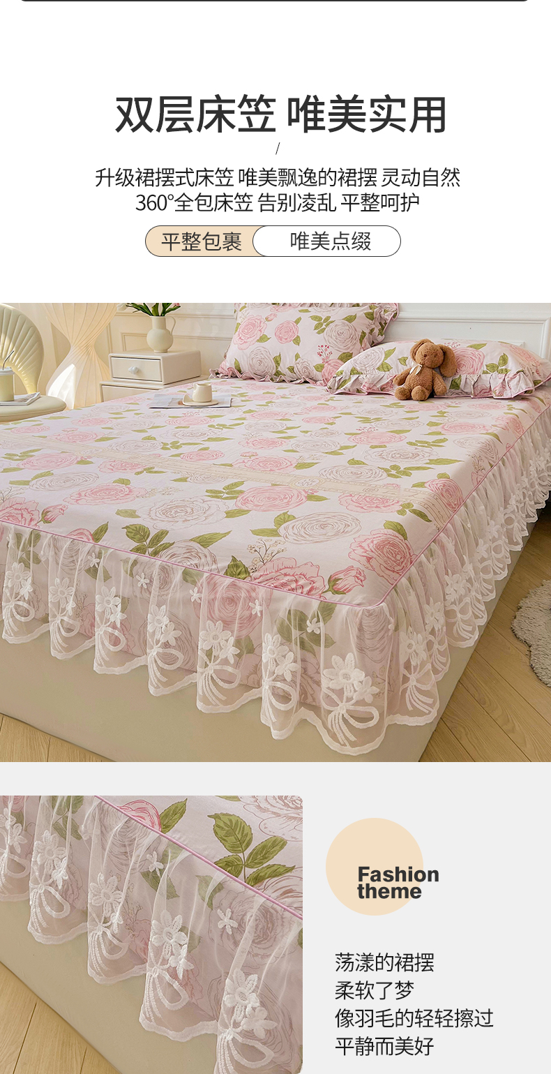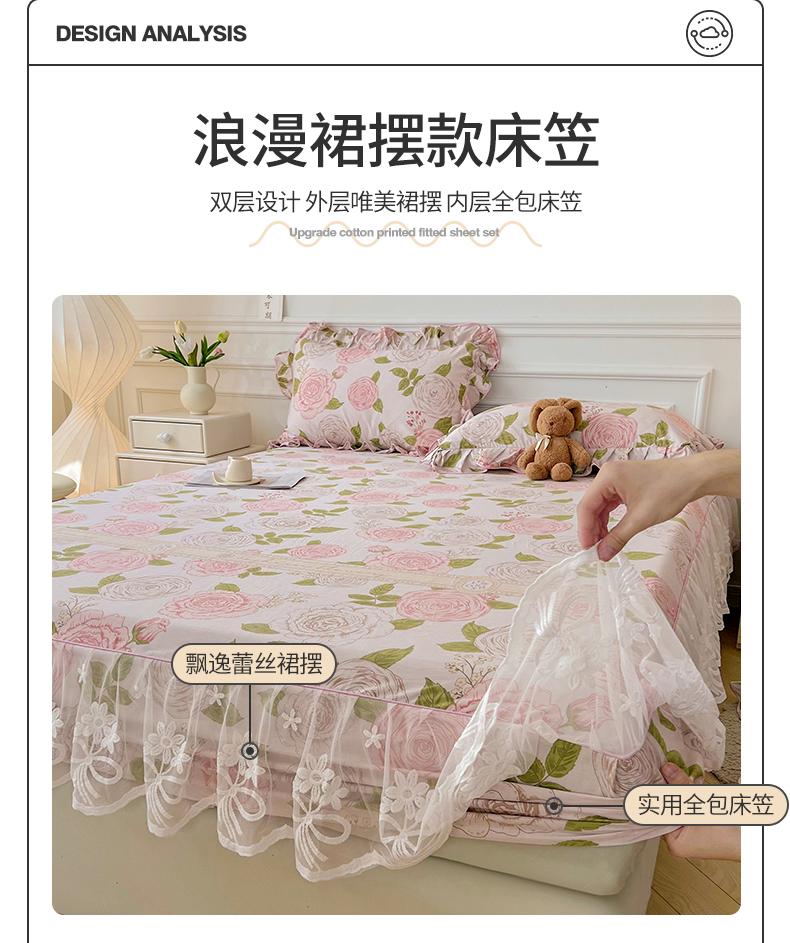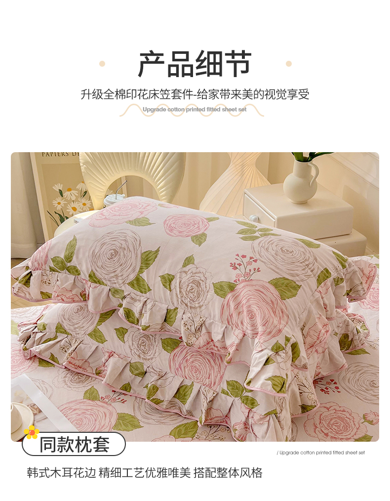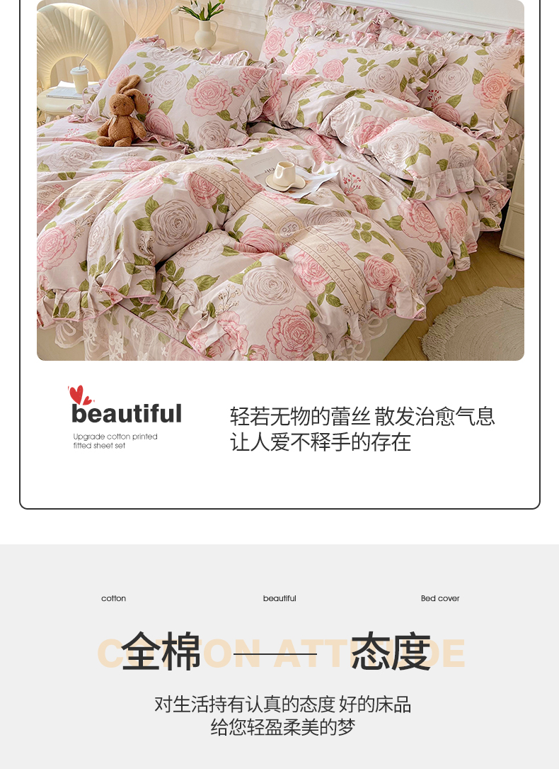 当前位置: 91家纺网 > 商品网购 > 床品套件 > 四件套 > 全棉普通四件套 > 宜凡家纺 2023款全棉花边裙摆款床笠四件套 芬特乐园