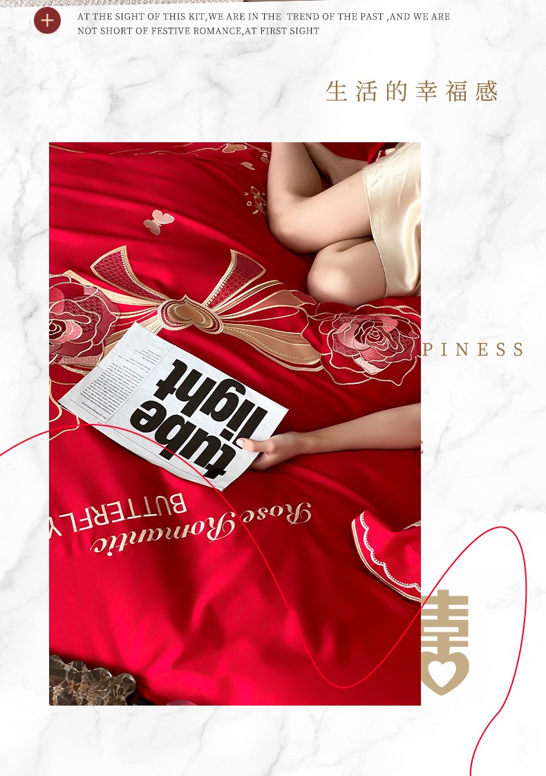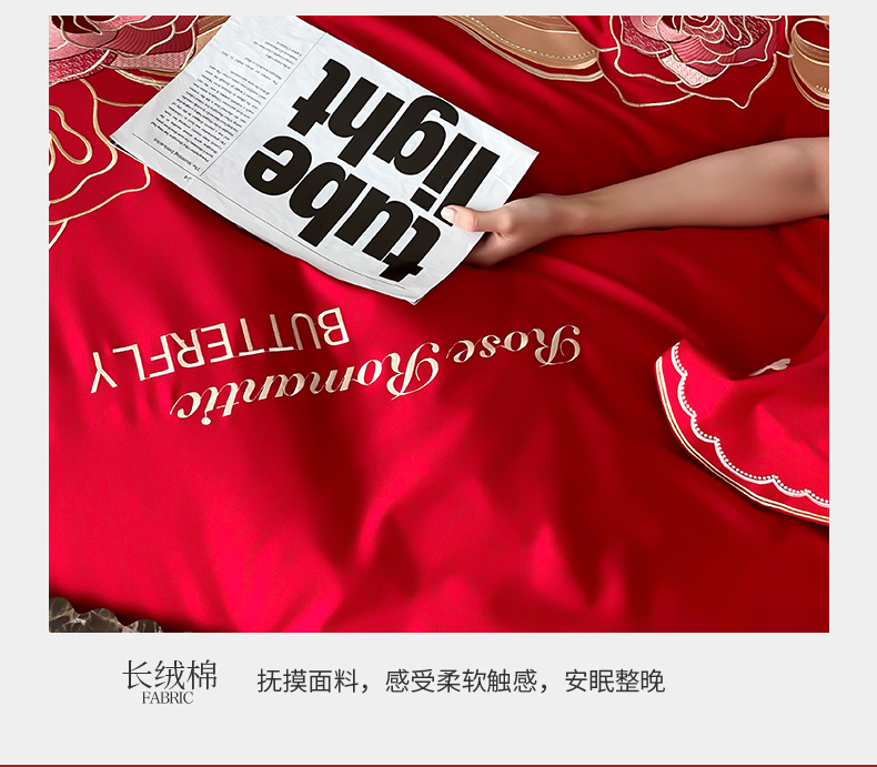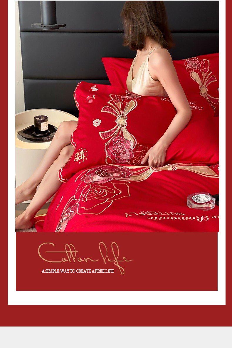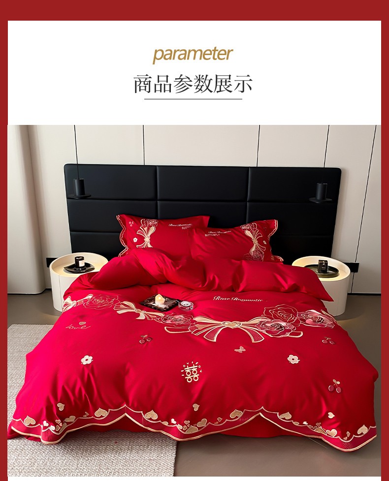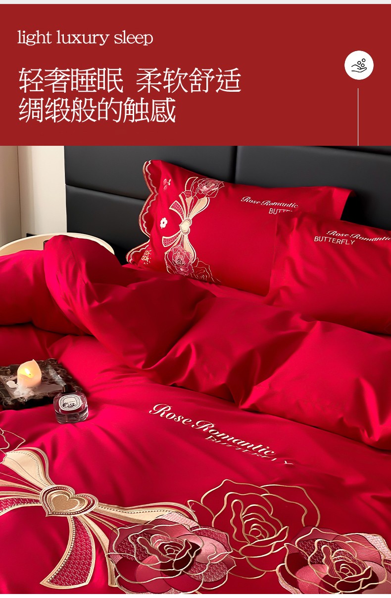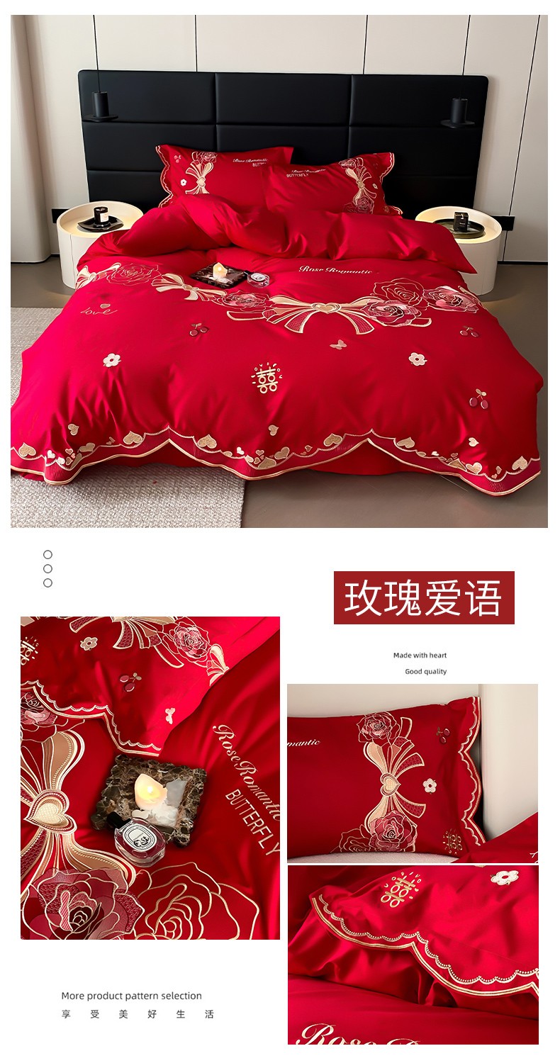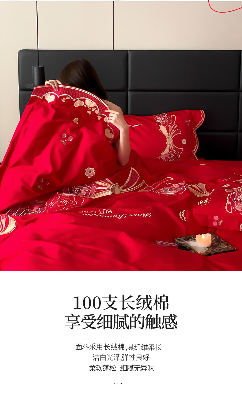 商品名称:用心 2023新款长绒棉婚庆四件套高端绣花简约家居 玫瑰爱语