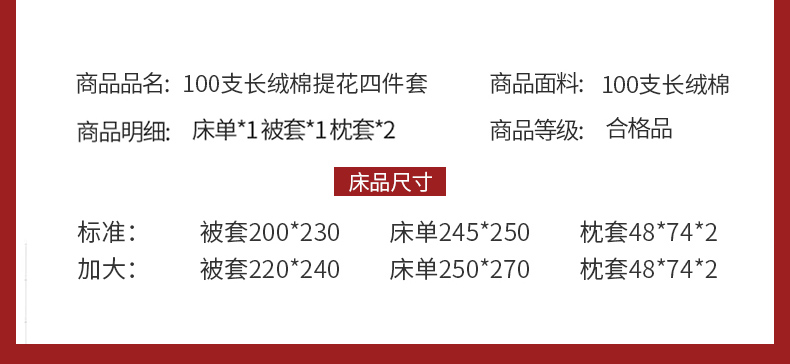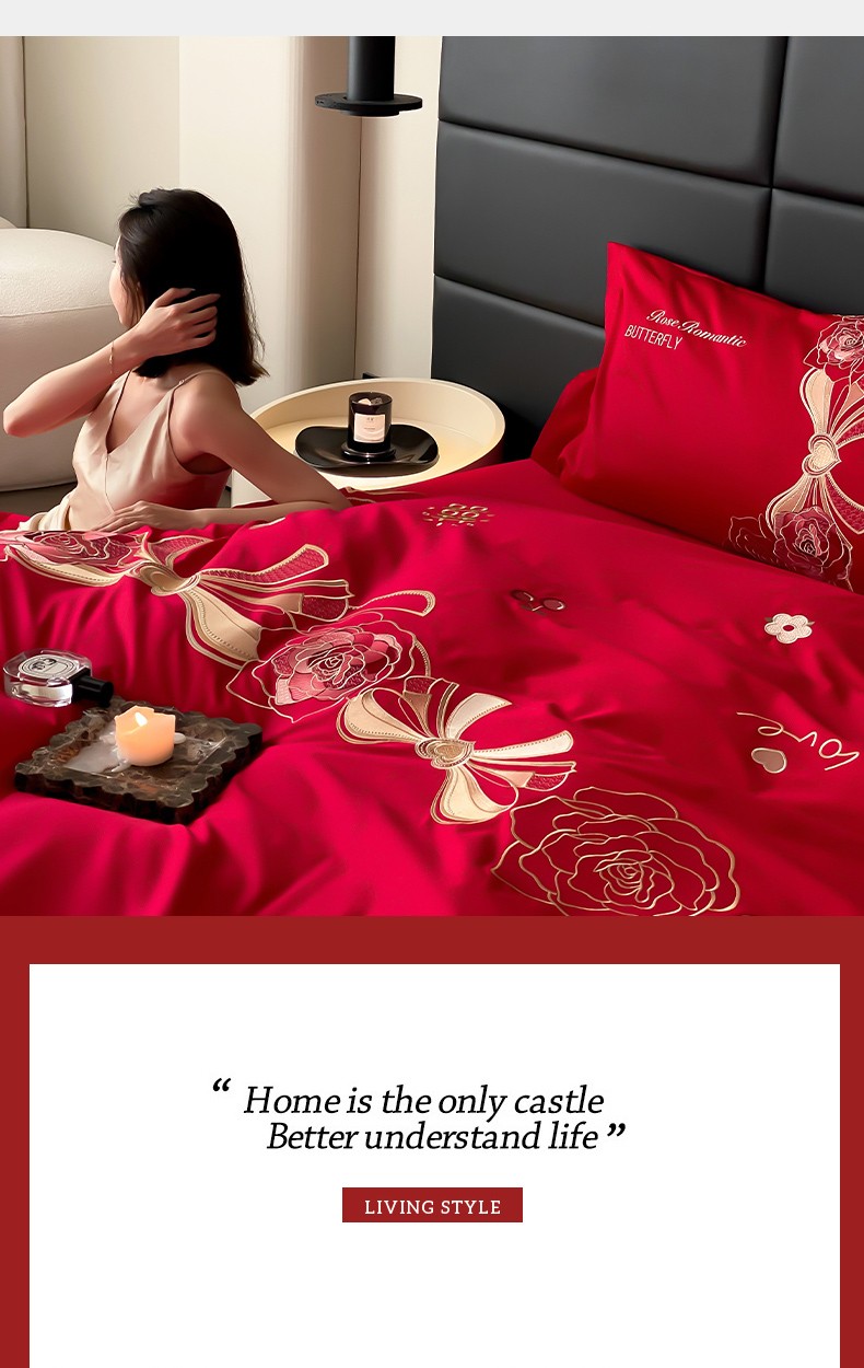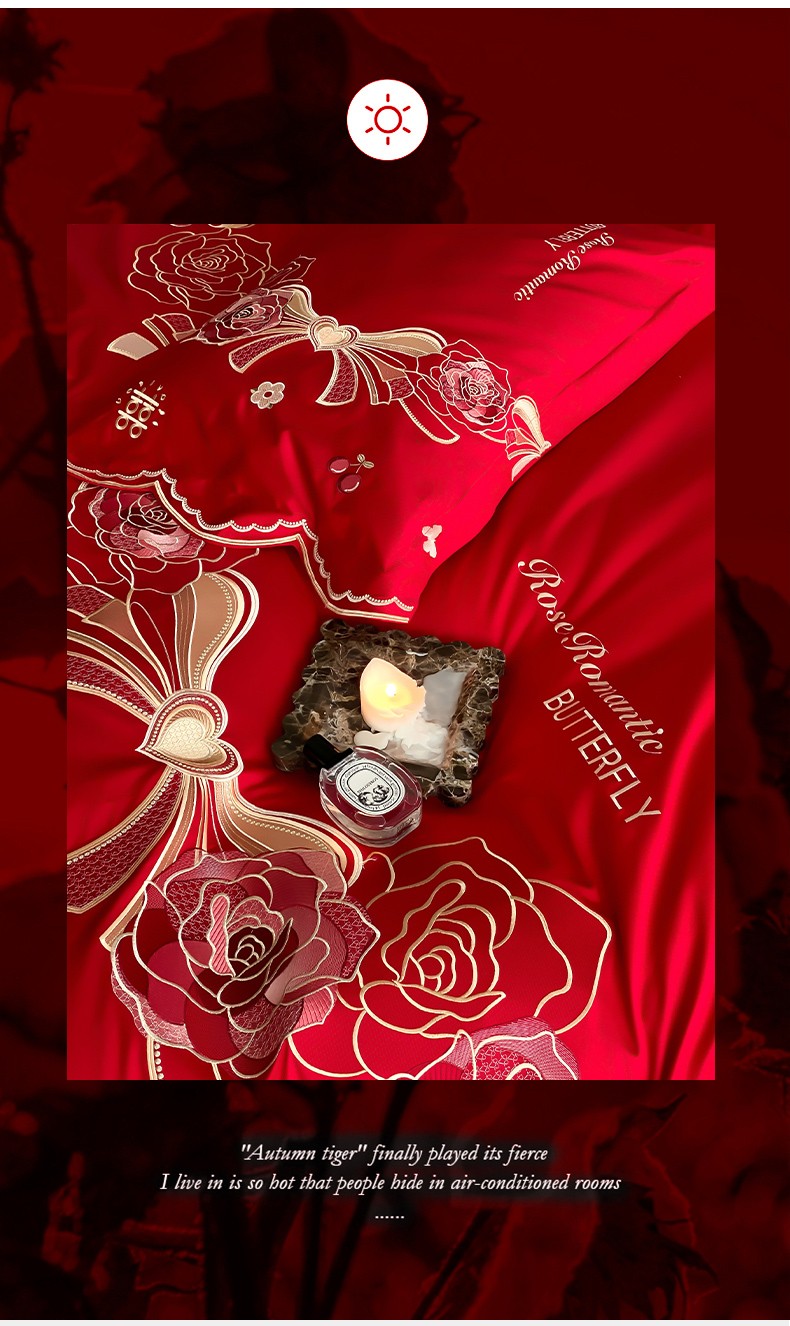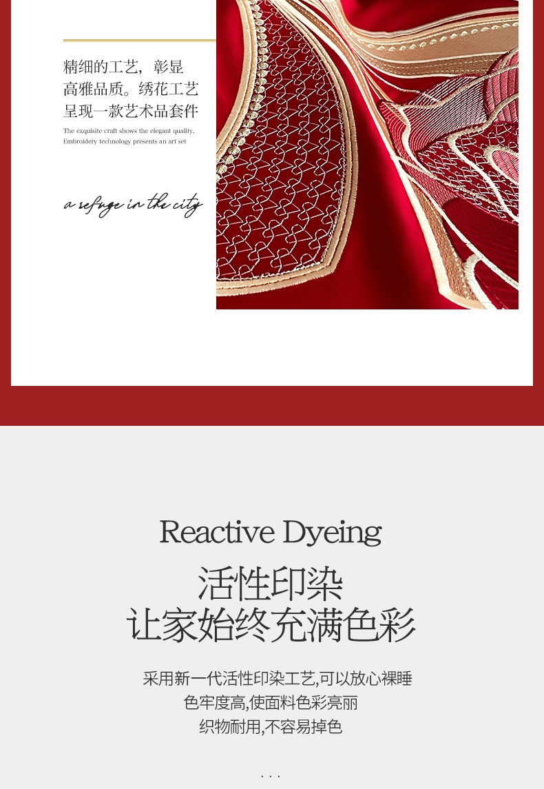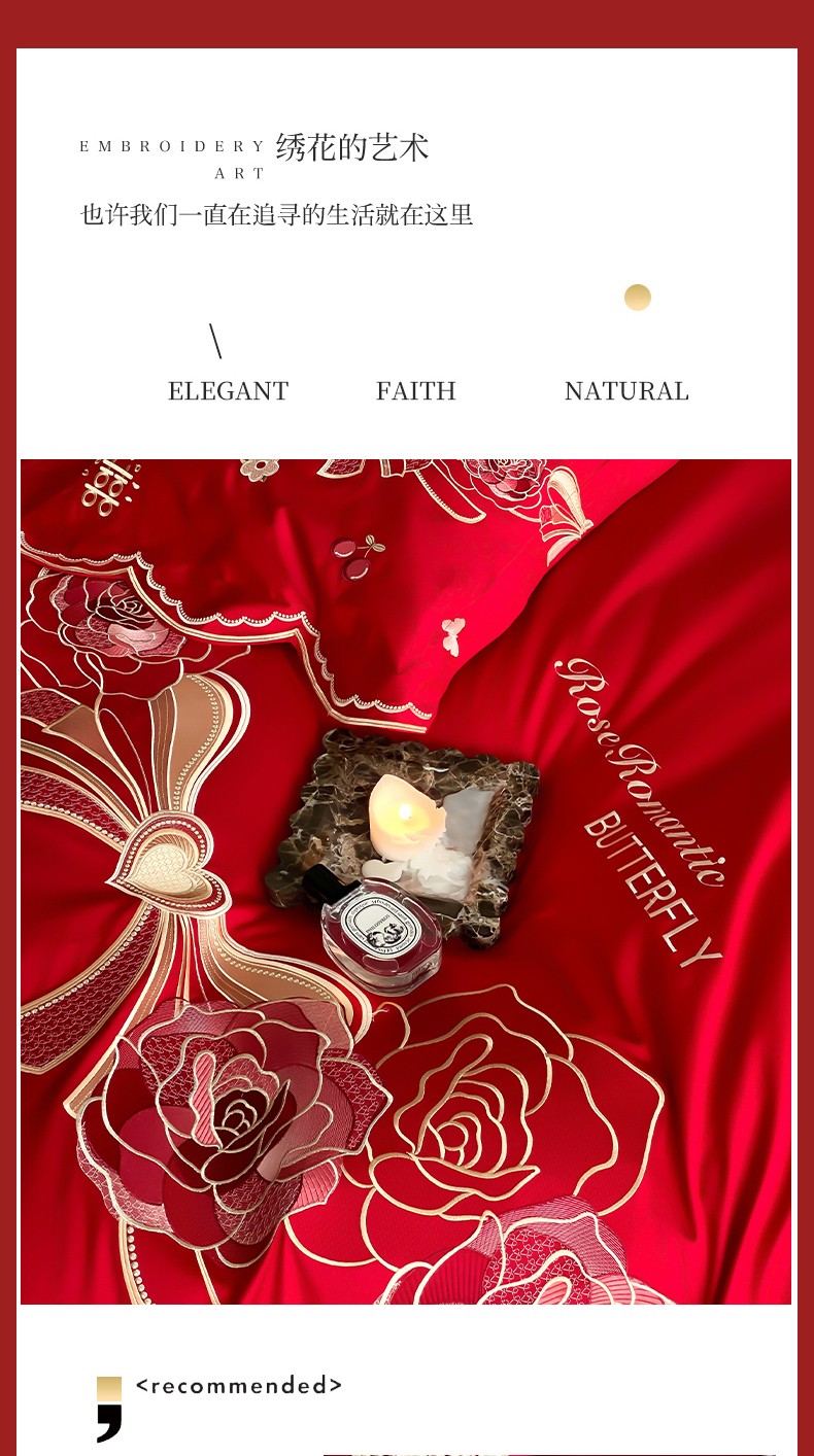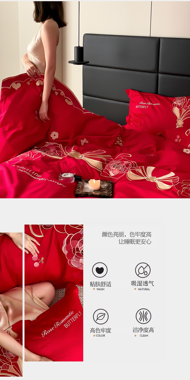 商品名称:用心 2023新款长绒棉婚庆四件套高端绣花简约家居 玫瑰爱语