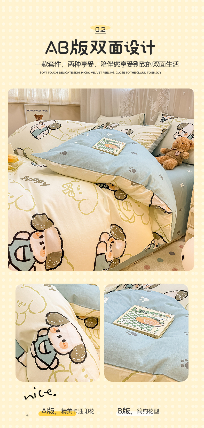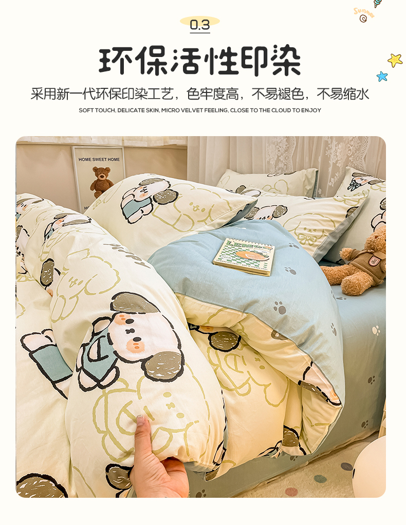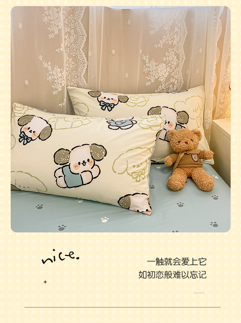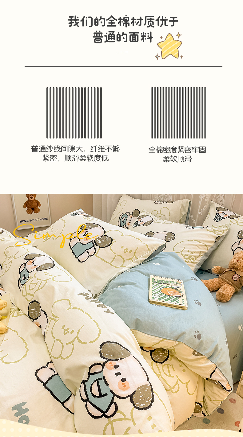 当前位置: 91家纺网 > 商品网购 > 床品套件 > 四件套 > 全棉普通四件套 > 小懒猪 2024春夏新款全棉卡通印花四件套 班尼狗