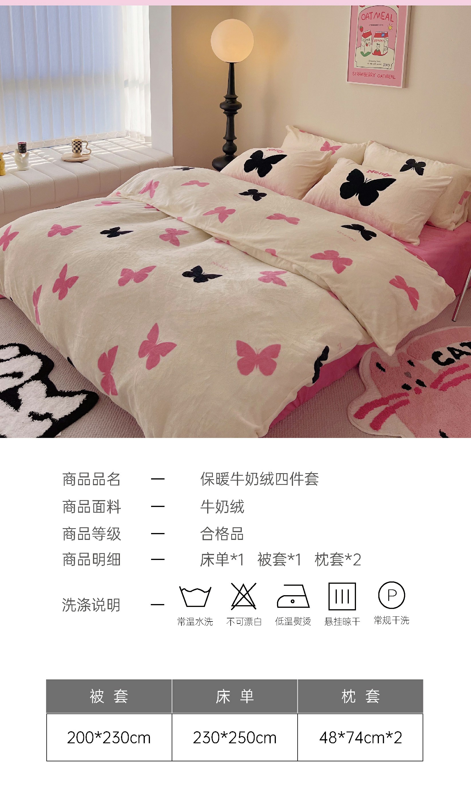 商品名称:红馆 2023新款A类230g牛奶绒四件套--千禧辣妹风 幻蝶