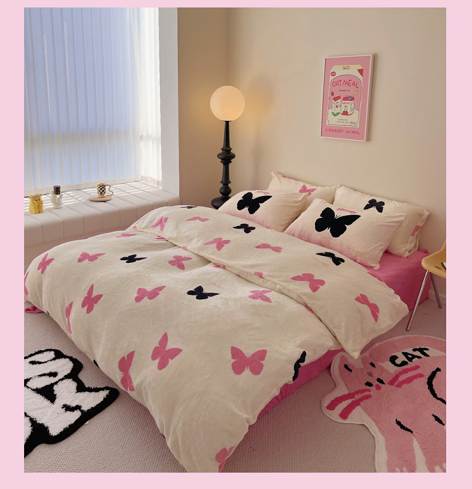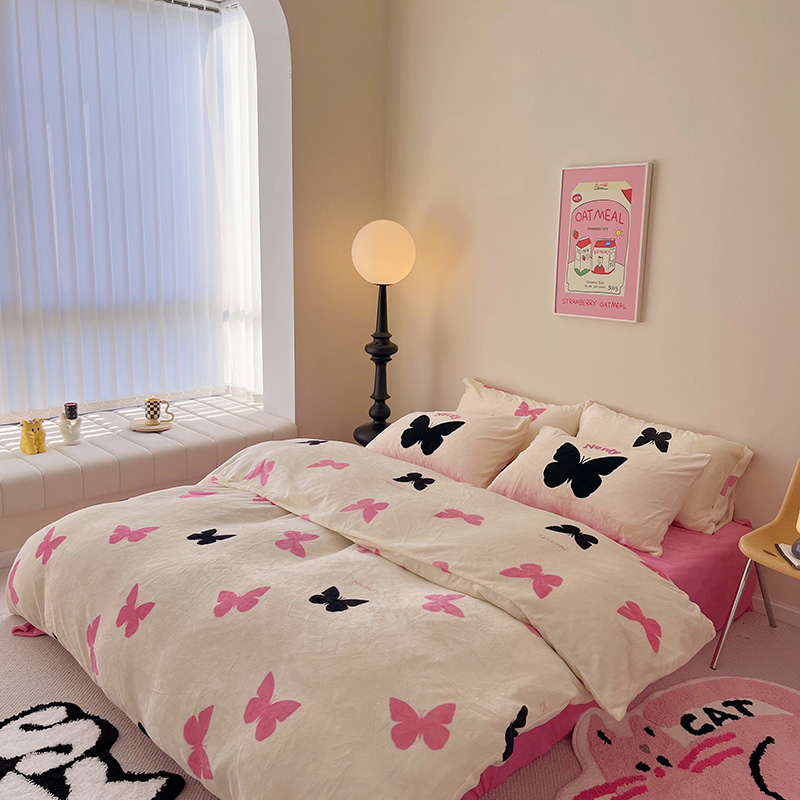 红馆 2023新款A类230g牛奶绒四件套--千禧辣妹风 幻蝶
