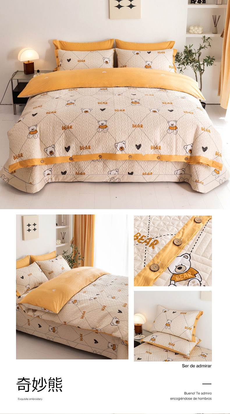 优乐家纺 2025新款纯棉印花夹棉系列床盖三件套-纽扣款新狂欢乐园,新狂欢乐园
