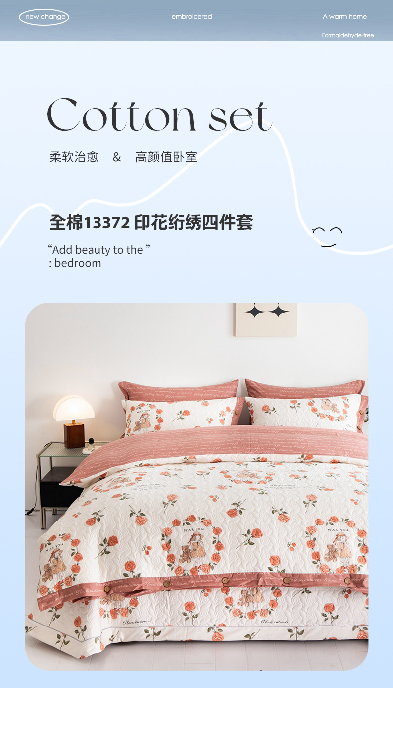 (总)优乐家纺 2025新款全棉斜纹13376单层被套夹棉床盖款四件套,安琪-黄,安琪-绿,波西米亚,博尔-咖,春意盎然,朵唯,花颜悦色,迷雾,慕斯,南薇,南薇-兰,普卡拉-红,普卡拉-兰,清婉,蔚然花,早春