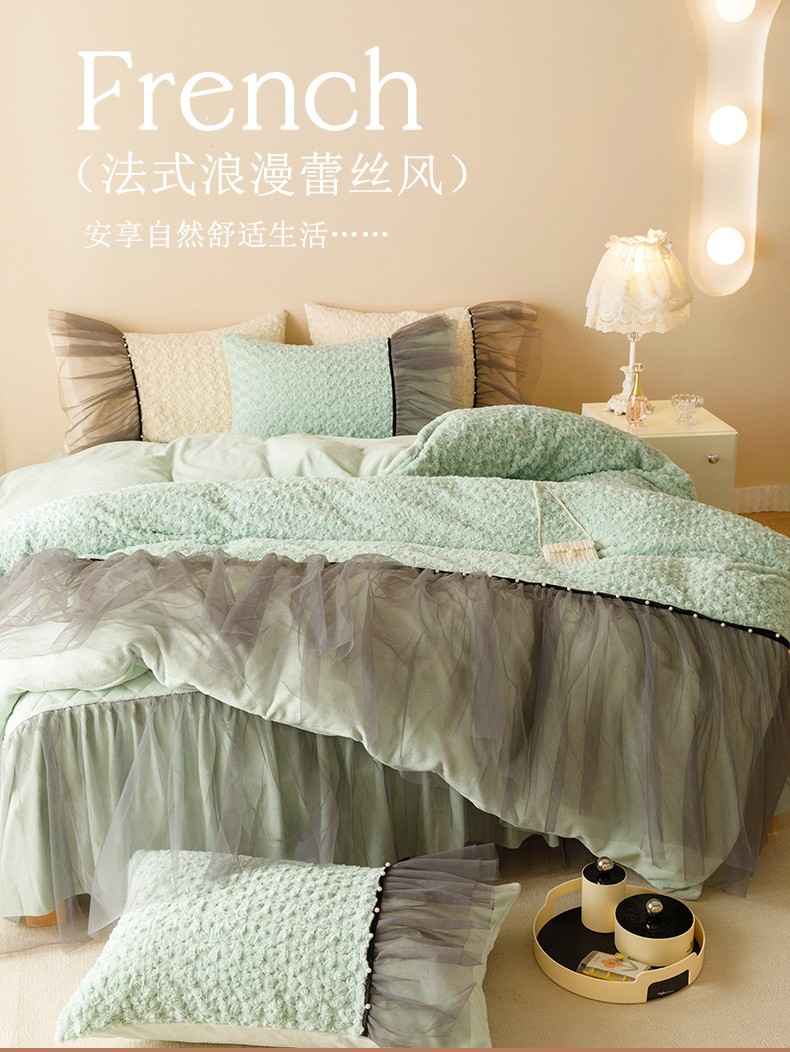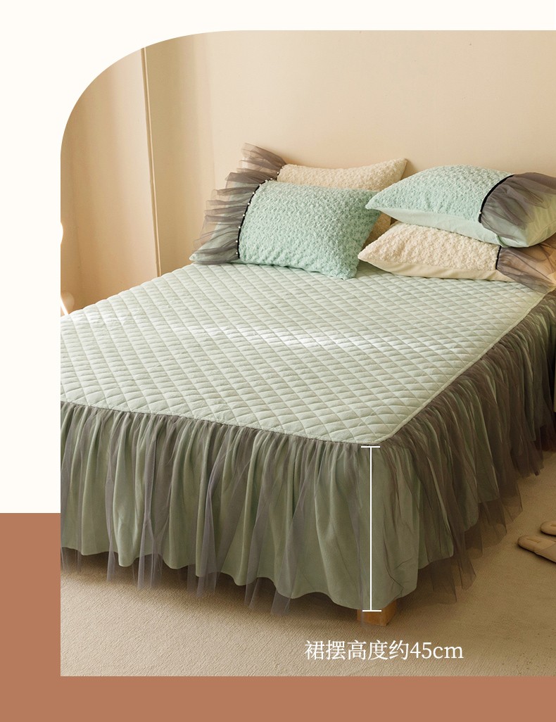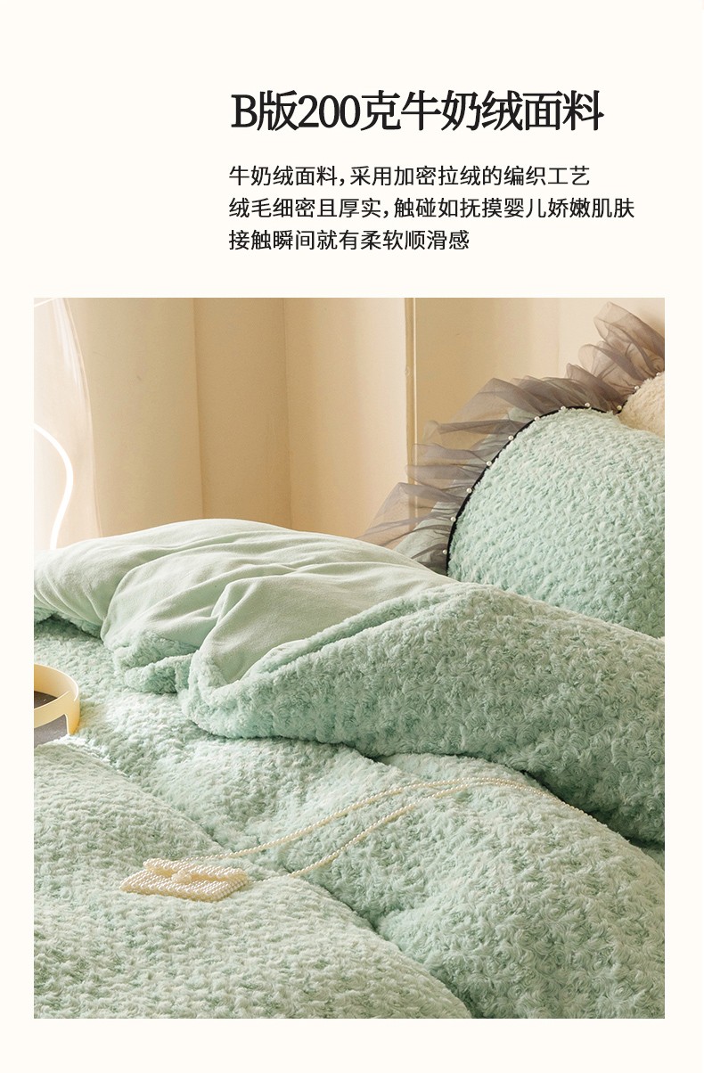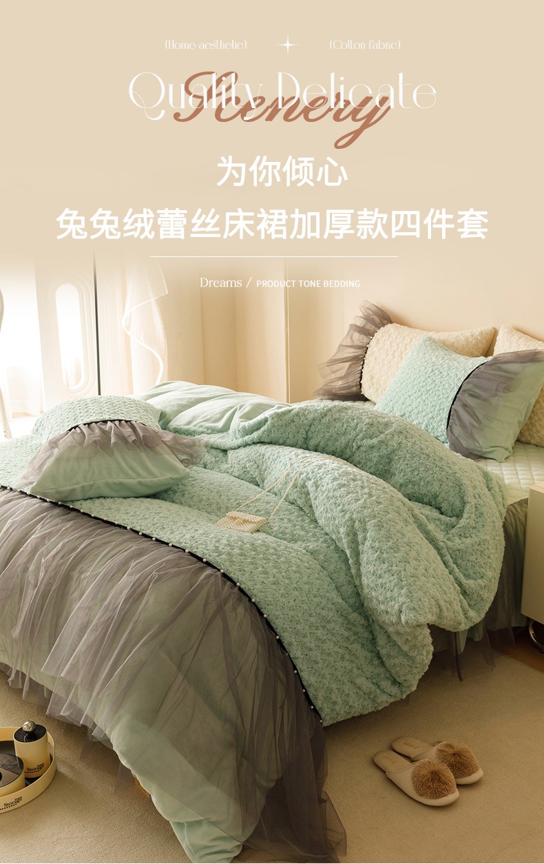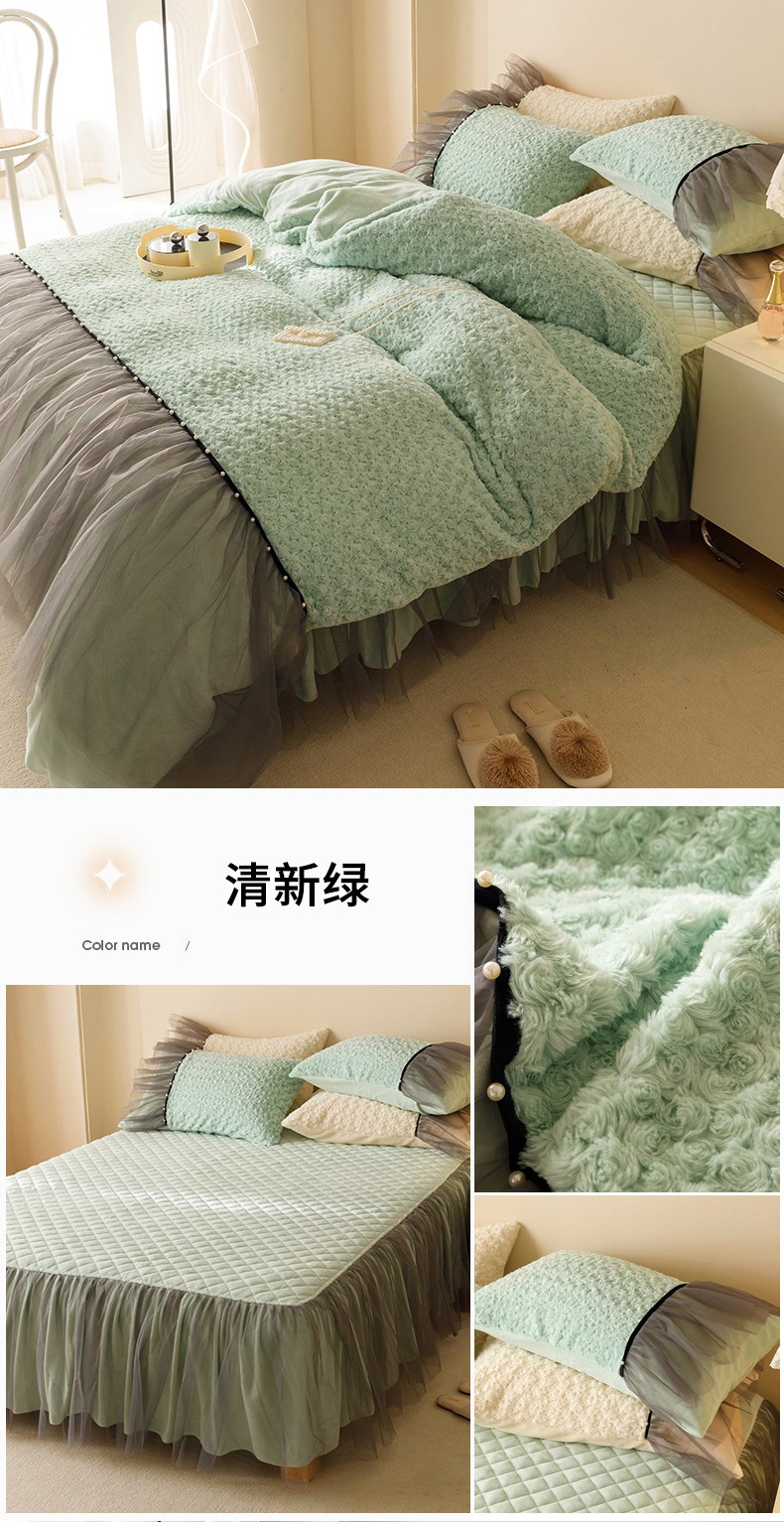 商品名称:菊上 2023-兔兔绒-玫瑰花语加棉床裙款系列 清新绿