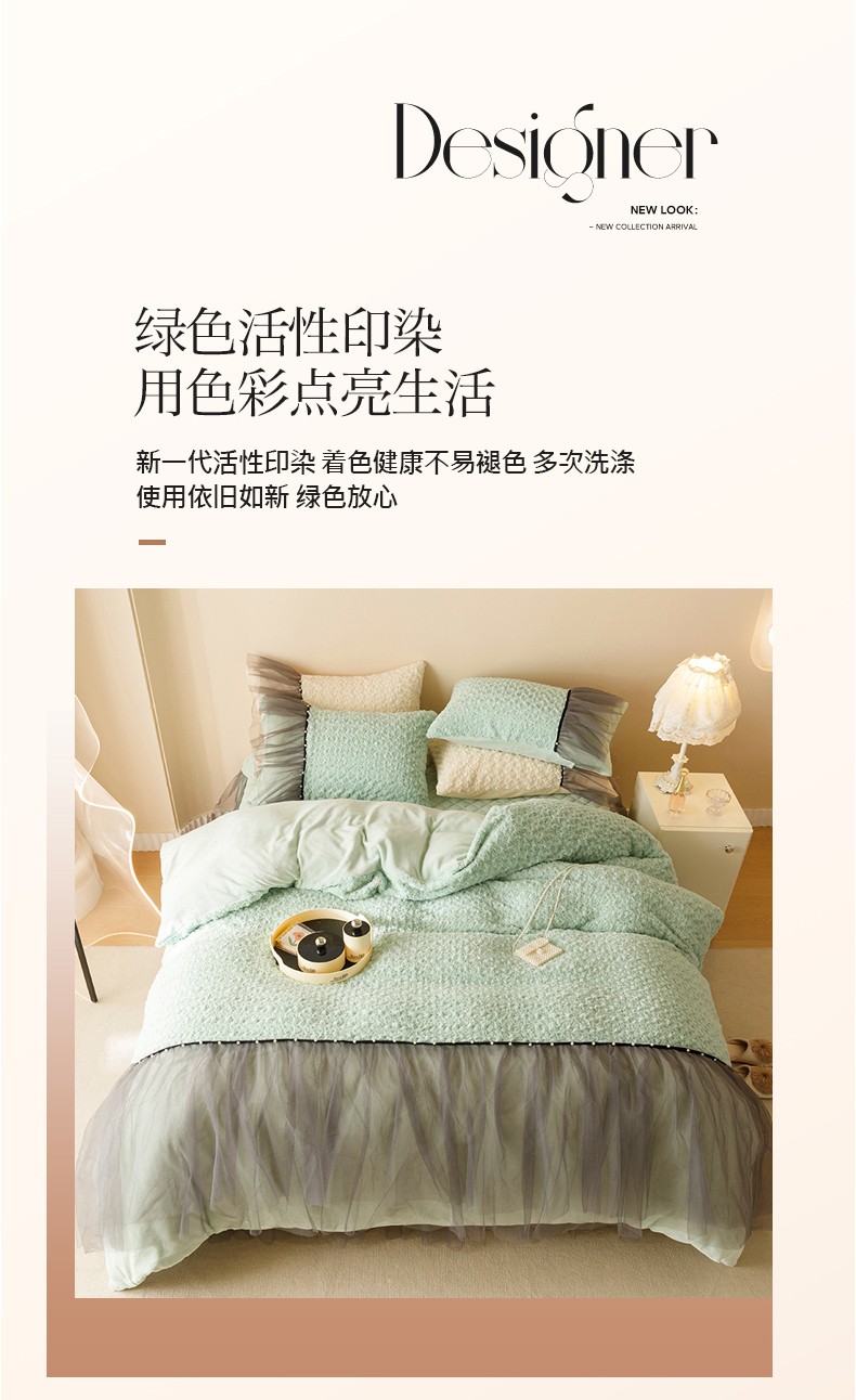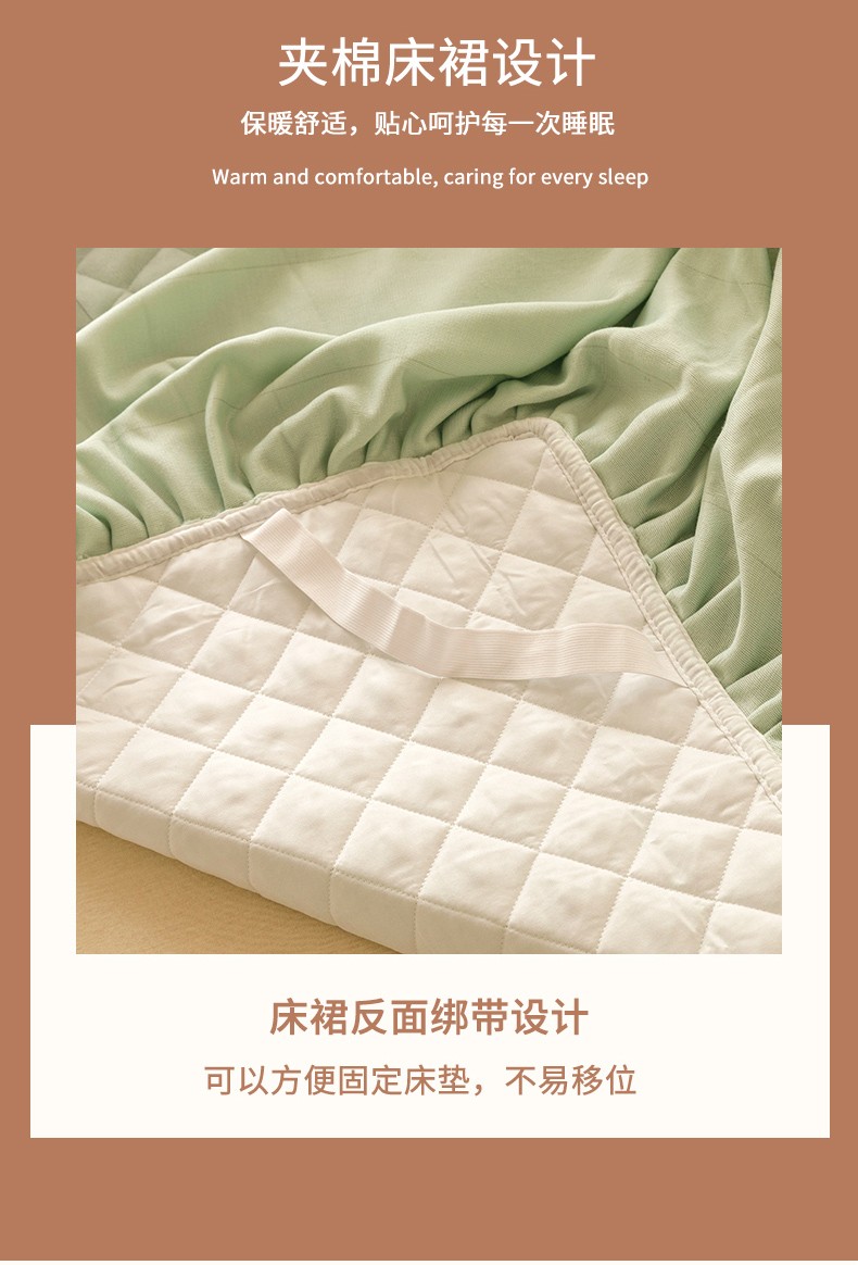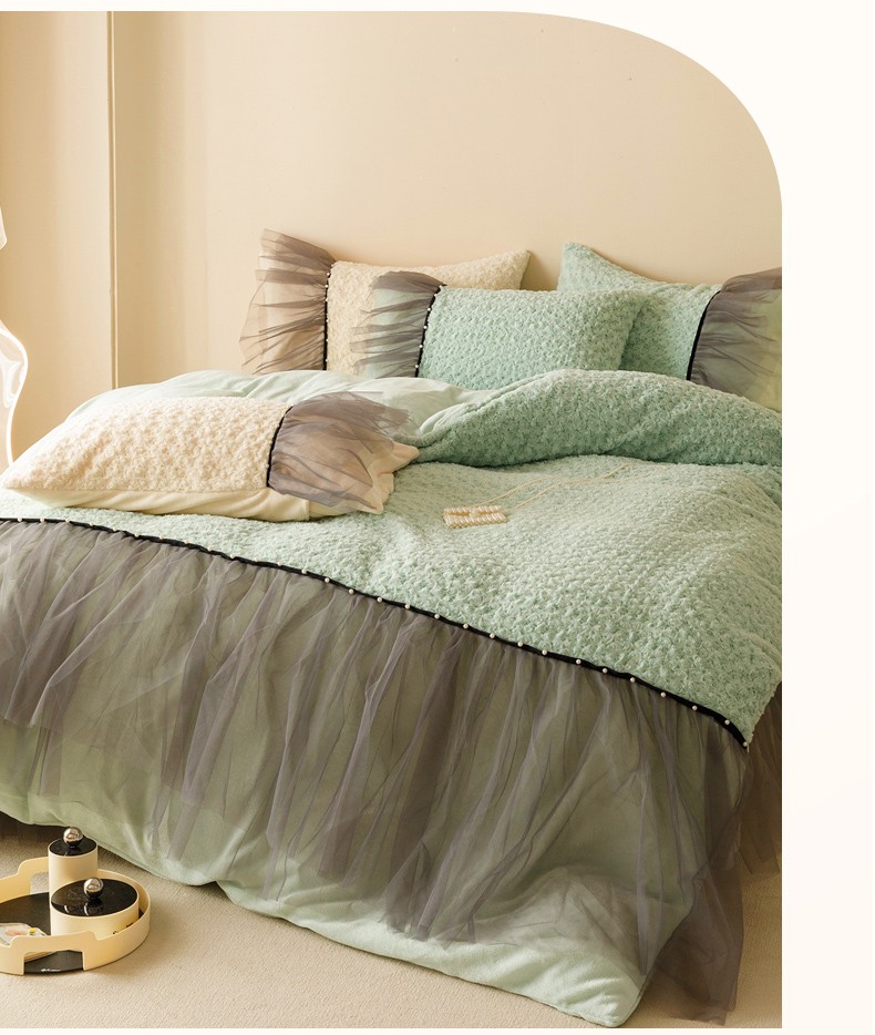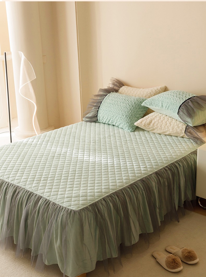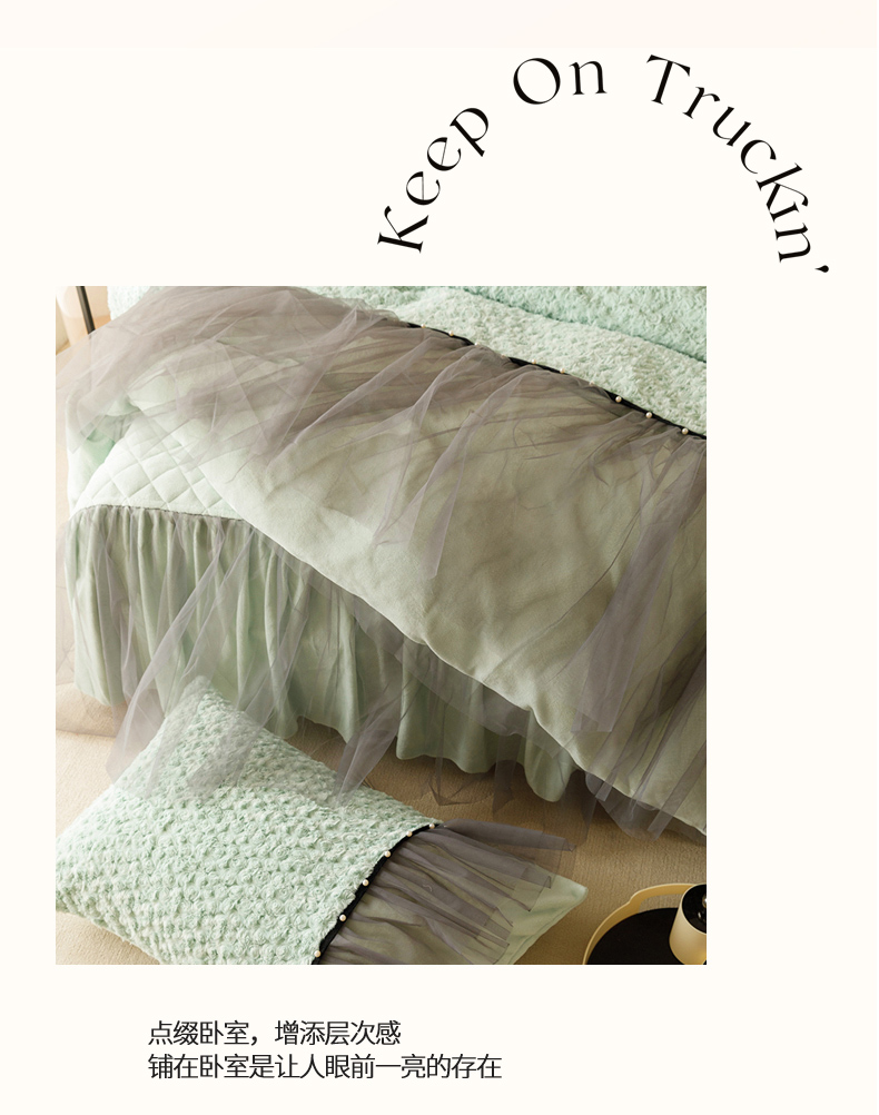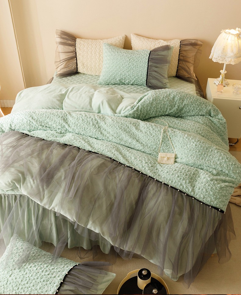 商品名称:菊上 2023-兔兔绒-玫瑰花语加棉床裙款系列 清新绿