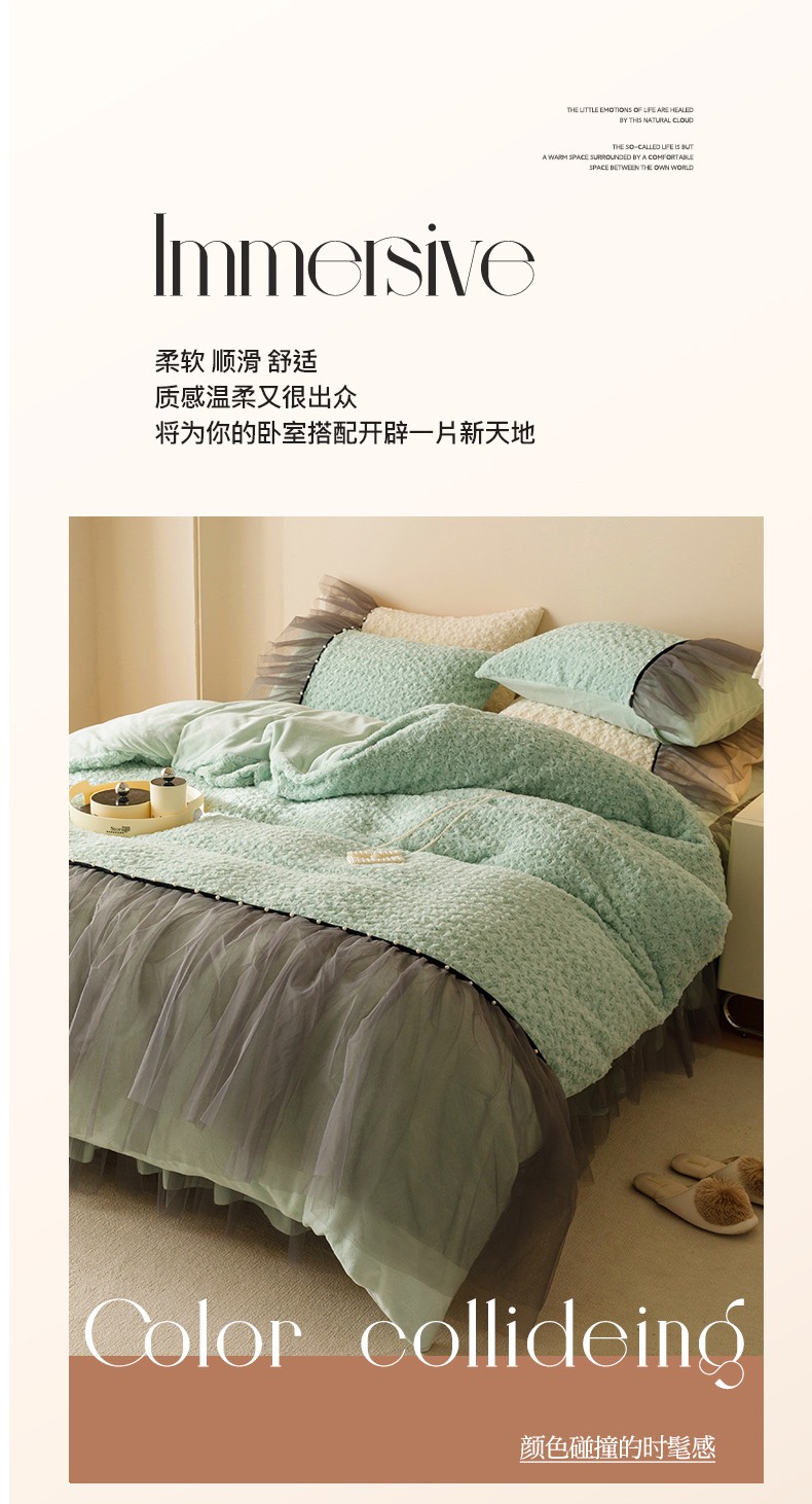 (总)菊上家纺 2025新款高克重5D雕花牛奶绒时尚仿皮草国潮风床盖四件套-羽妃系列,羽妃-米咖,羽妃-豆绿,羽妃-玫粉