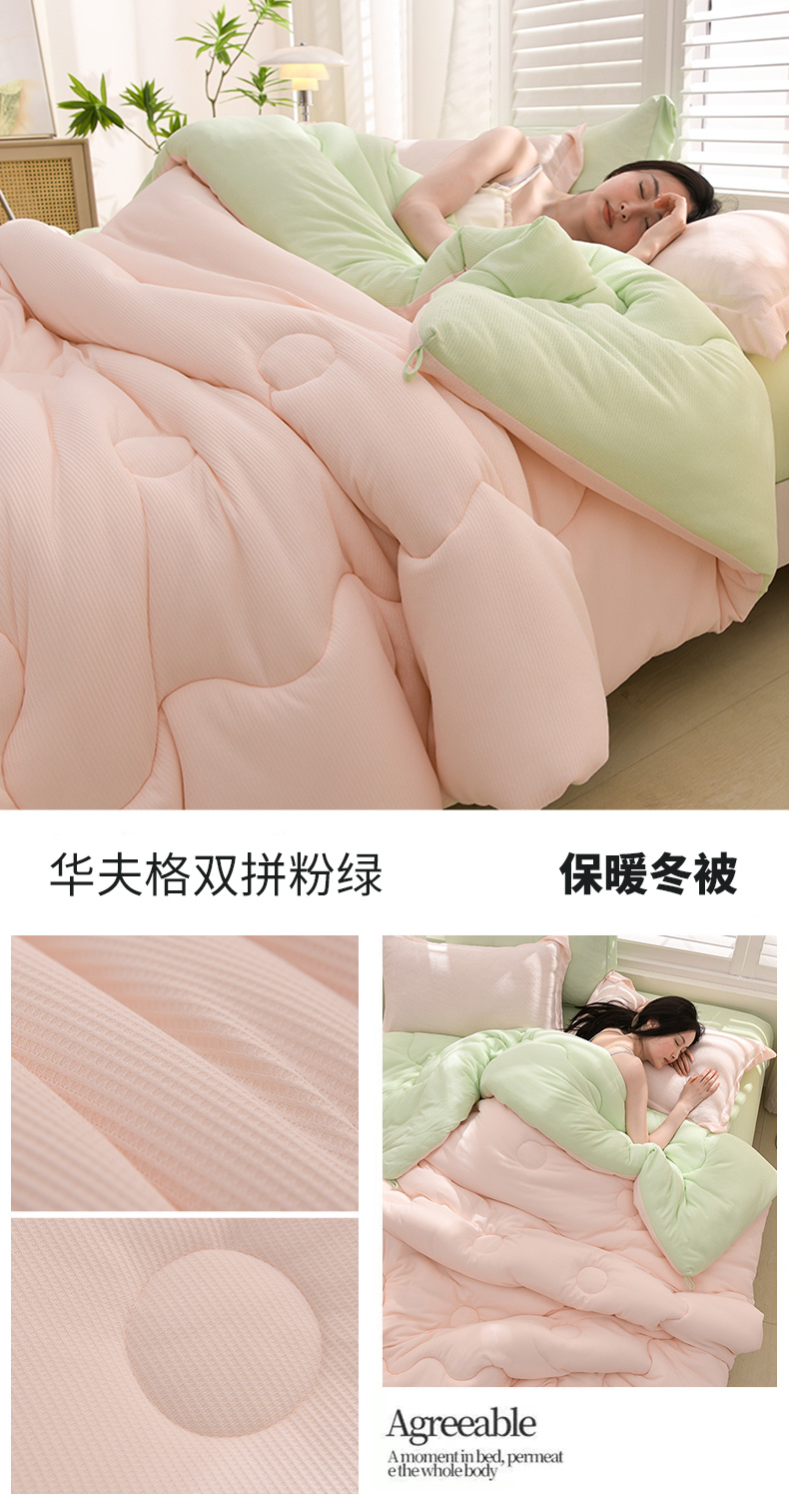 圣楚家纺 2024新款华夫格宝暖冬被 华夫格双拼粉绿