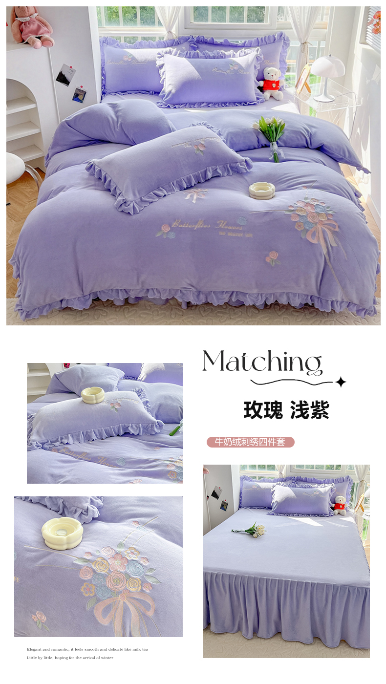 当前位置: 91家纺网 > 商品网购 > 床品套件 > 四件套 > 牛奶绒四件套 > 包小包 2023新款牛奶绒玫瑰刺绣四件套(提供买家秀) 玫瑰浅紫