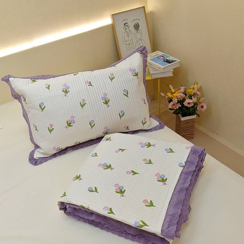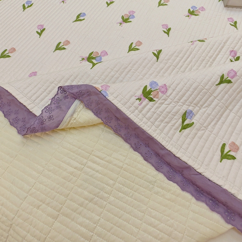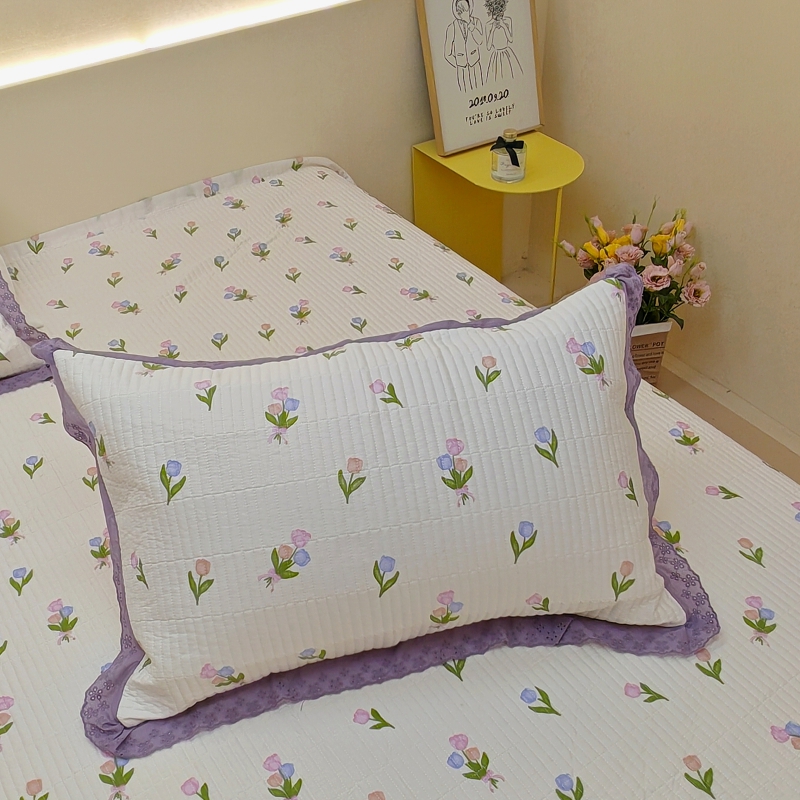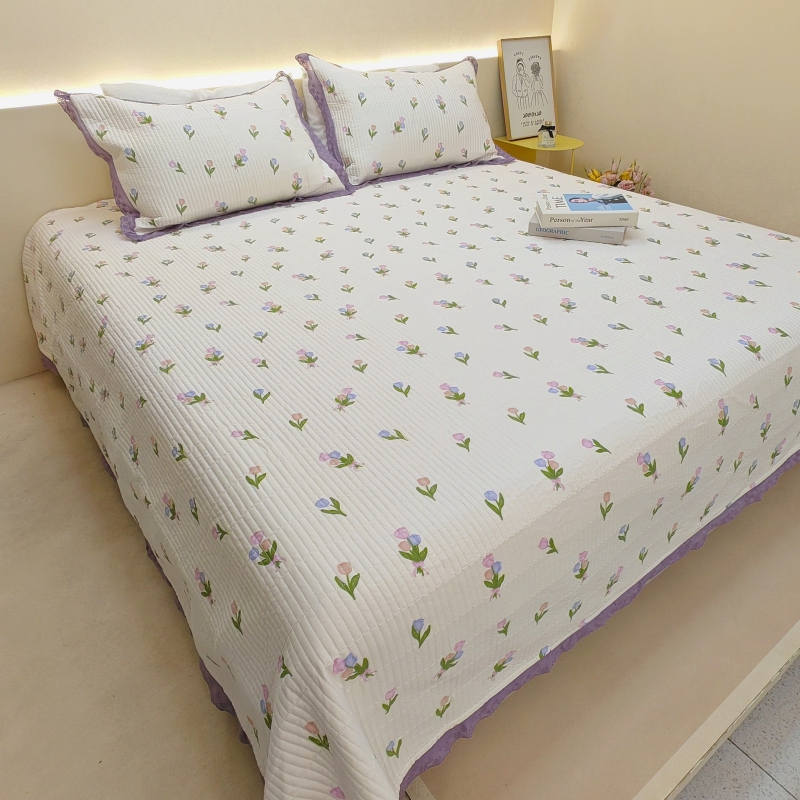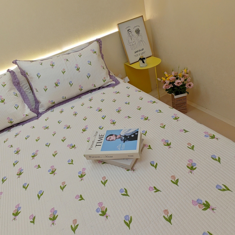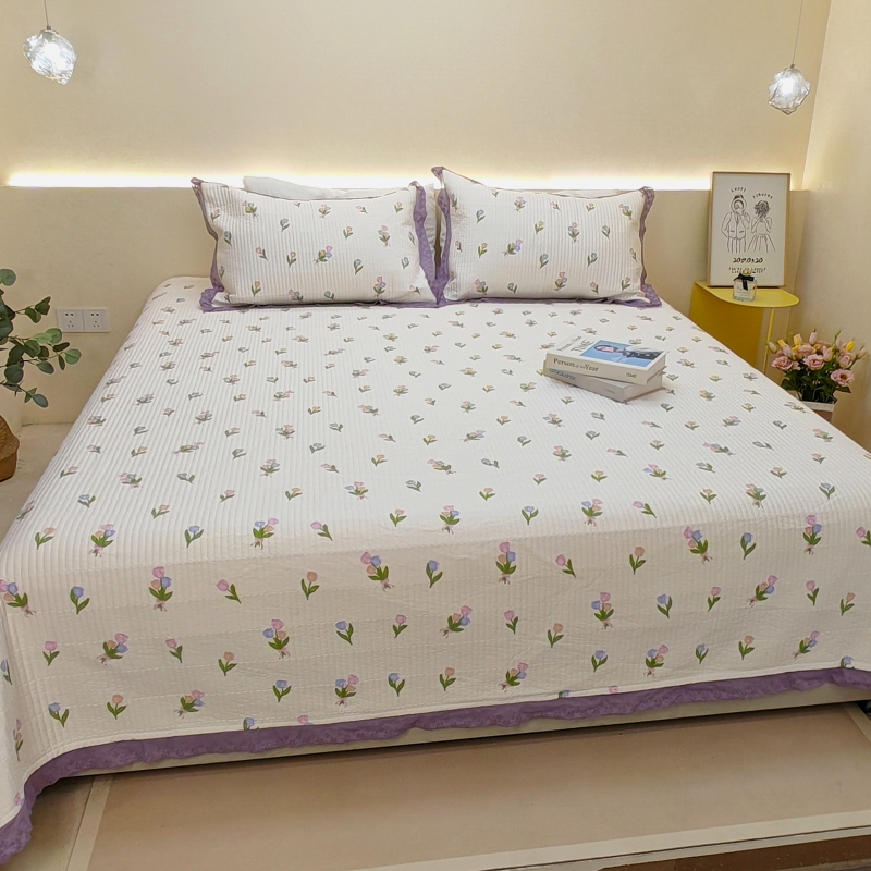 有货 2023秋冬新品韩式13372全棉棉花床盖三件套 床盖-小美好