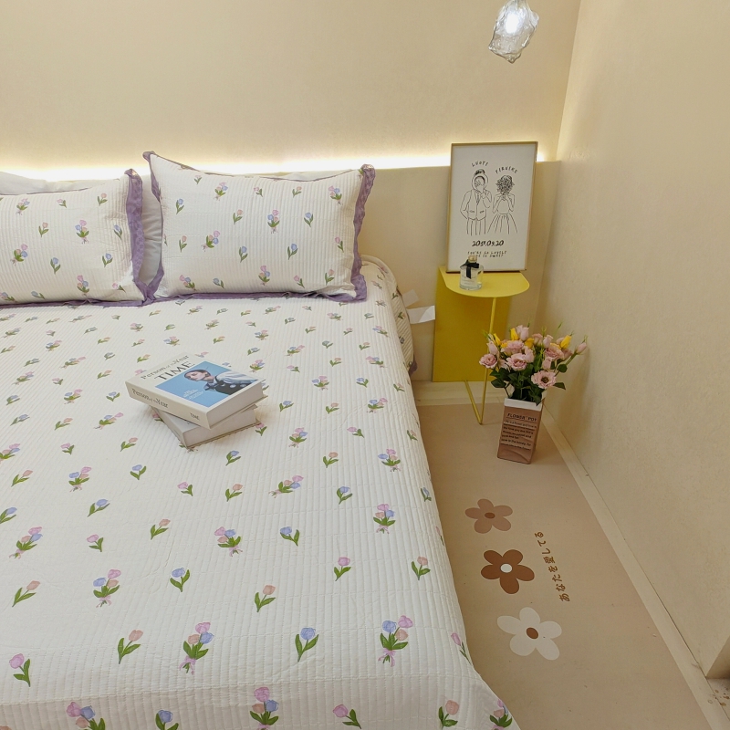 商品名称:有货 2023秋冬新品韩式13372全棉棉花床盖三件套 床盖-小美好