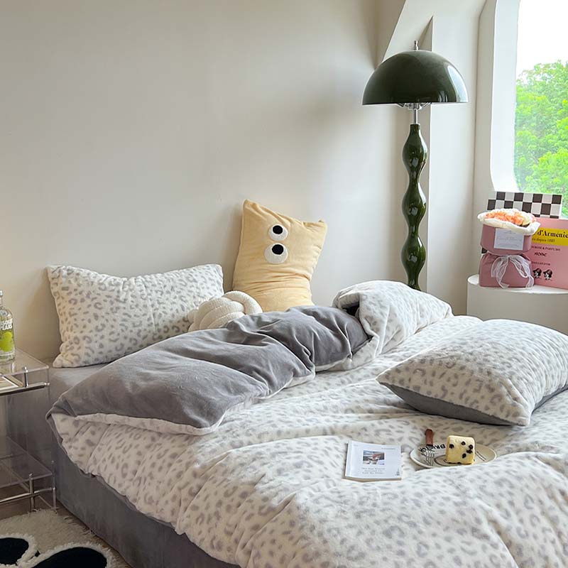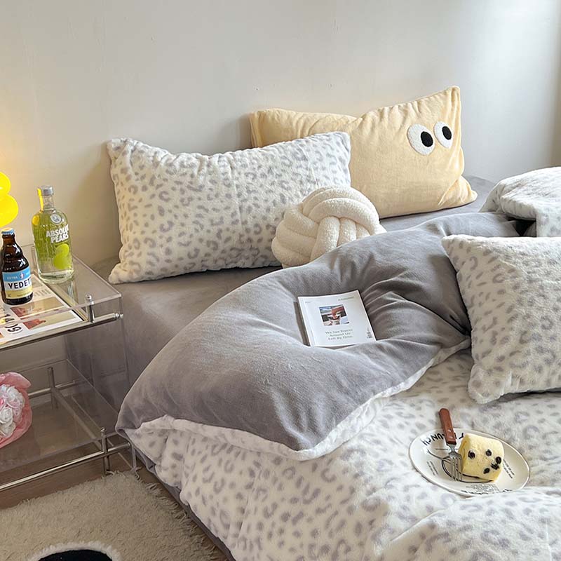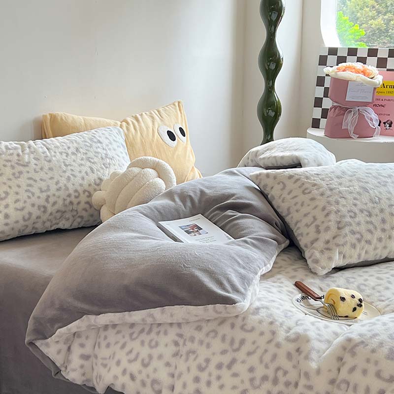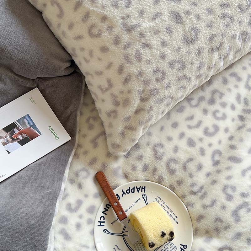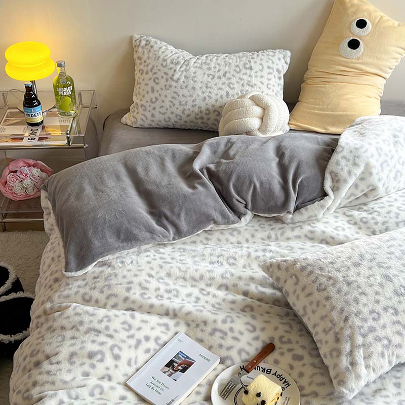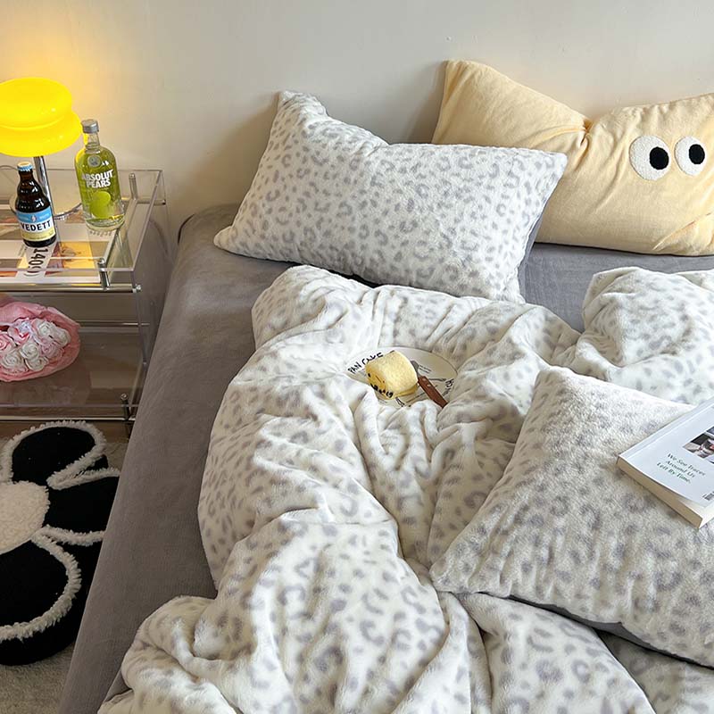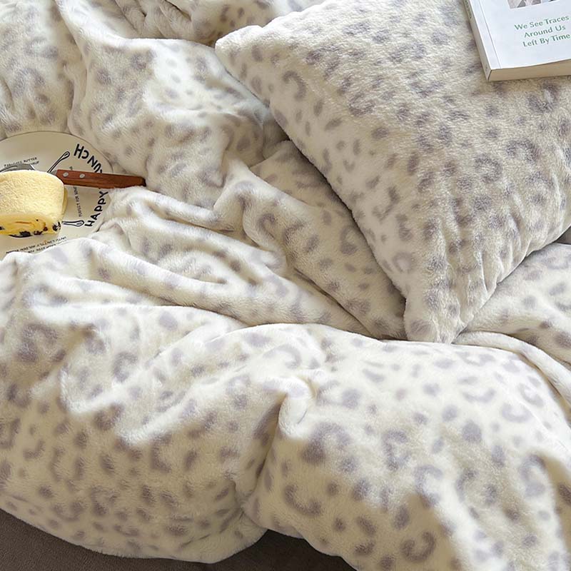 柚子家纺 2023新款高克重舒适保暖兔绒印花四件套 豹纹