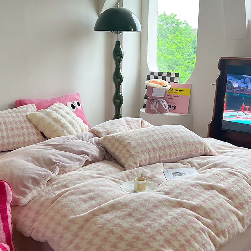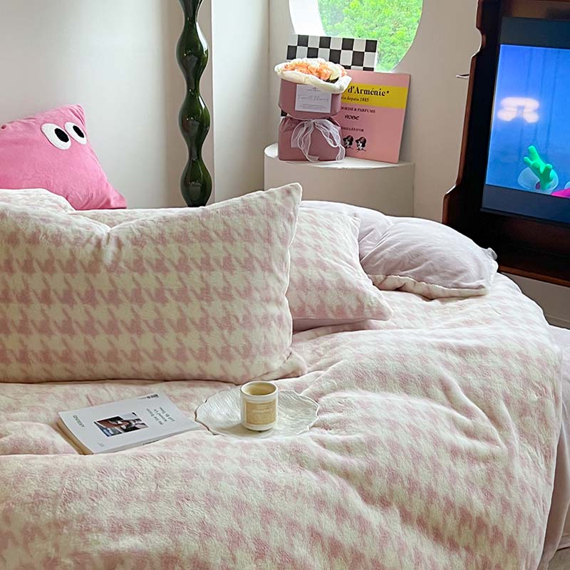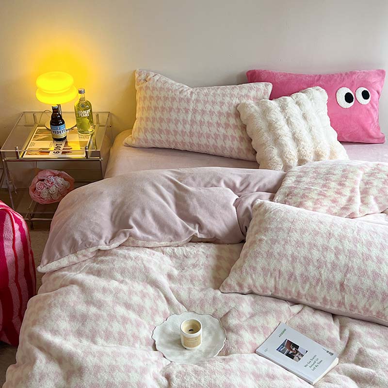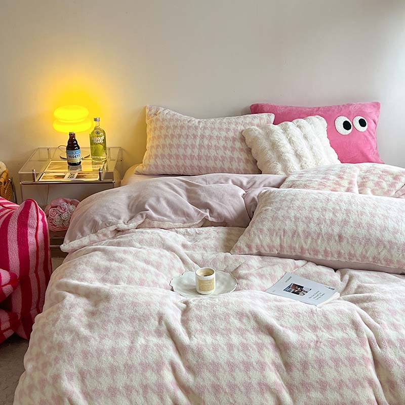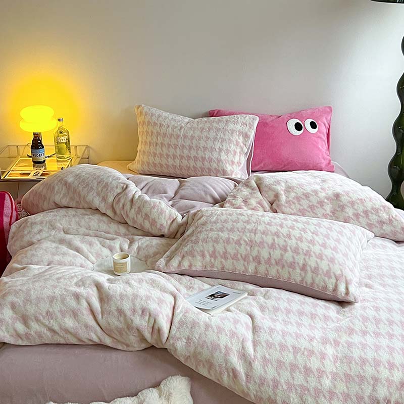 柚子家纺 2023新款高克重舒适保暖兔绒印花四件套 千鸟格