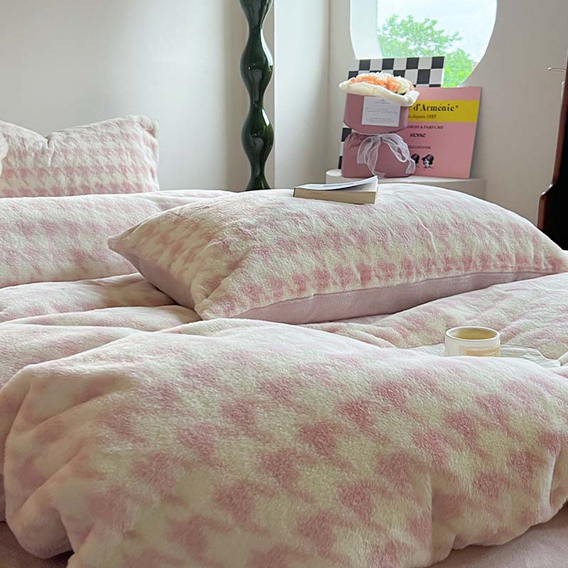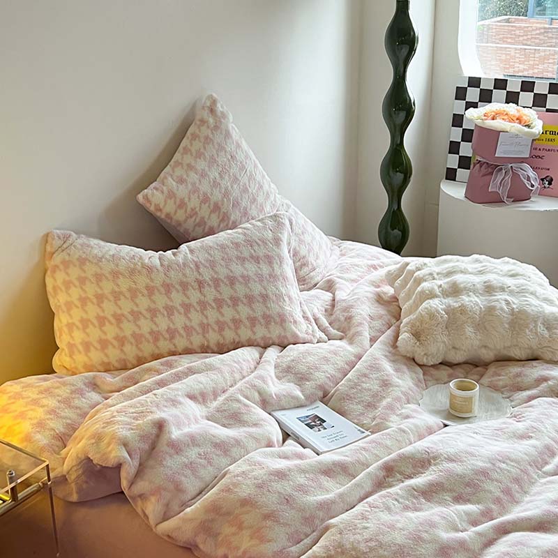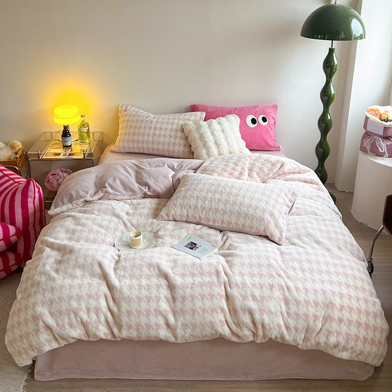 商品名称:柚子家纺 2023新款高克重舒适保暖兔绒印花四件套 千鸟格