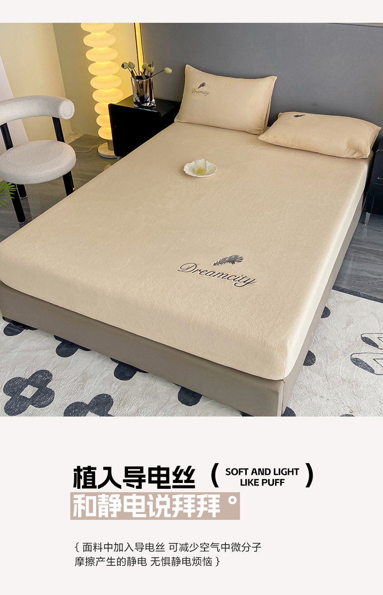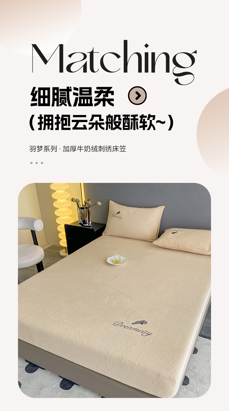 • 91家纺网 家纺一手货源 找家纺 古吉梦 2023新款牛奶绒刺绣床笠-羽梦 羽梦-香槟