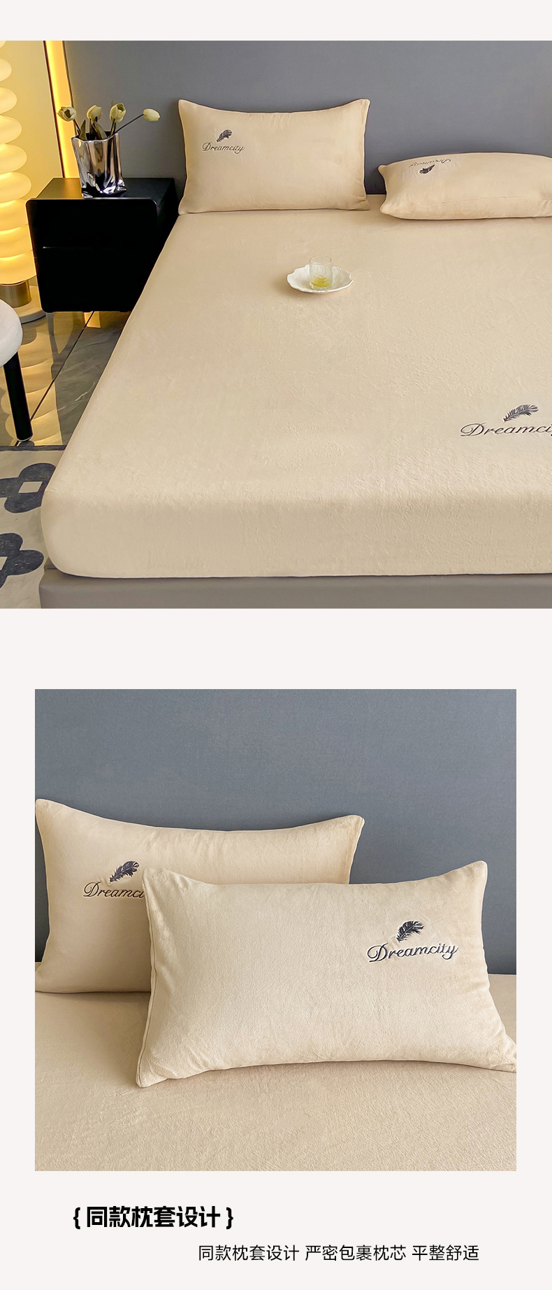 古吉梦 2023新款牛奶绒刺绣床笠-羽梦 羽梦-香槟