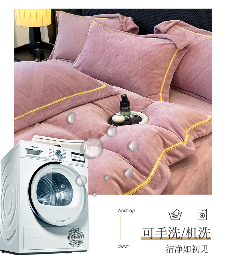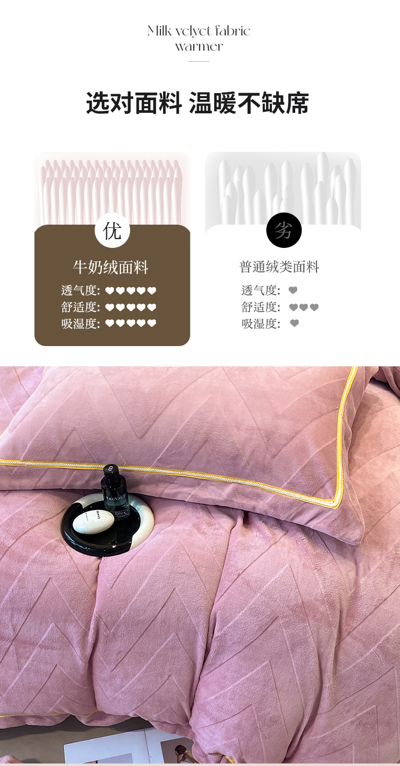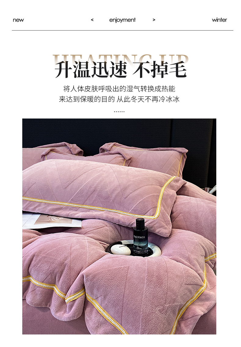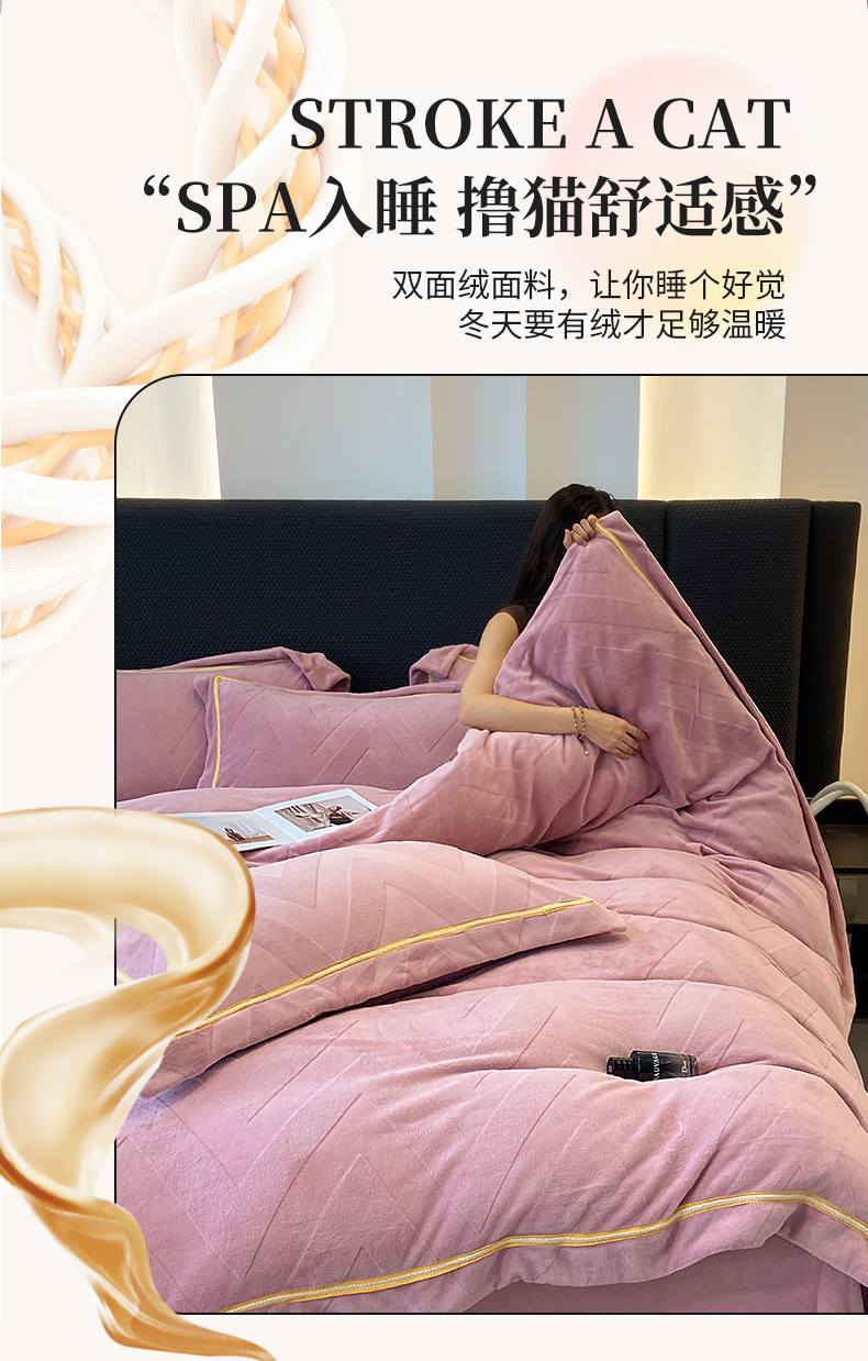 商品名称:家居1号 2024新款冬季高端剪花230克全消光工艺牛奶绒宝宝绒珊瑚绒婴儿绒刺绣轻奢四件套床单被套-简尚 简尚-藕紫