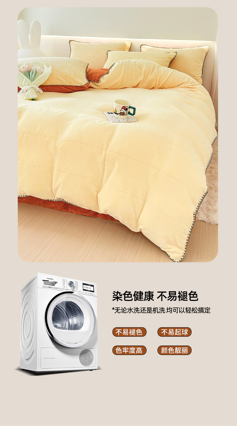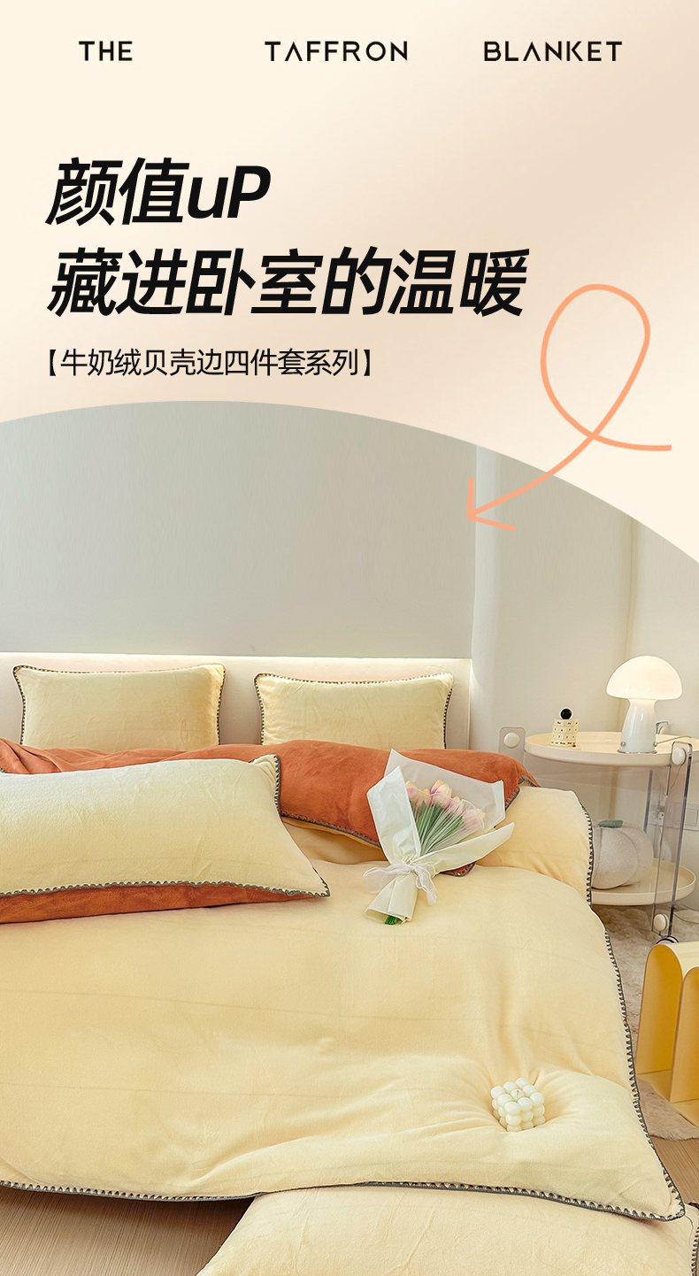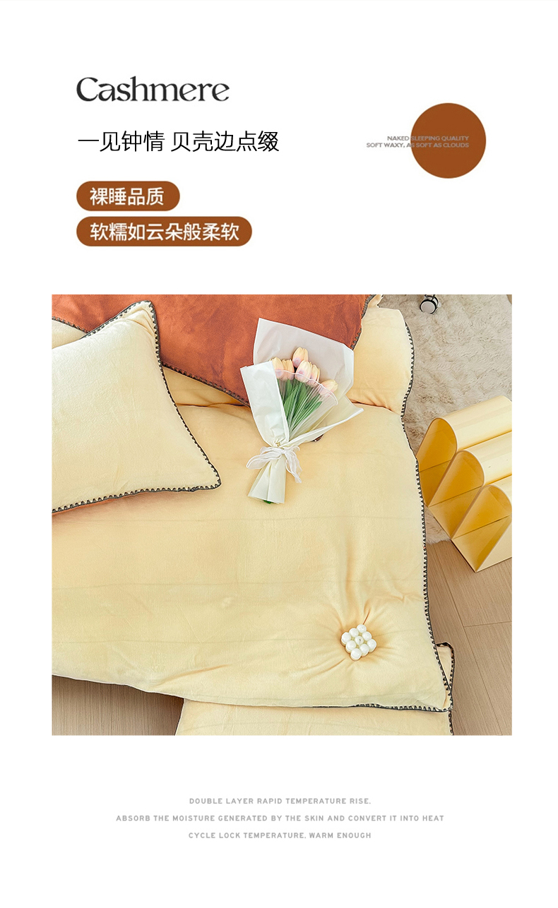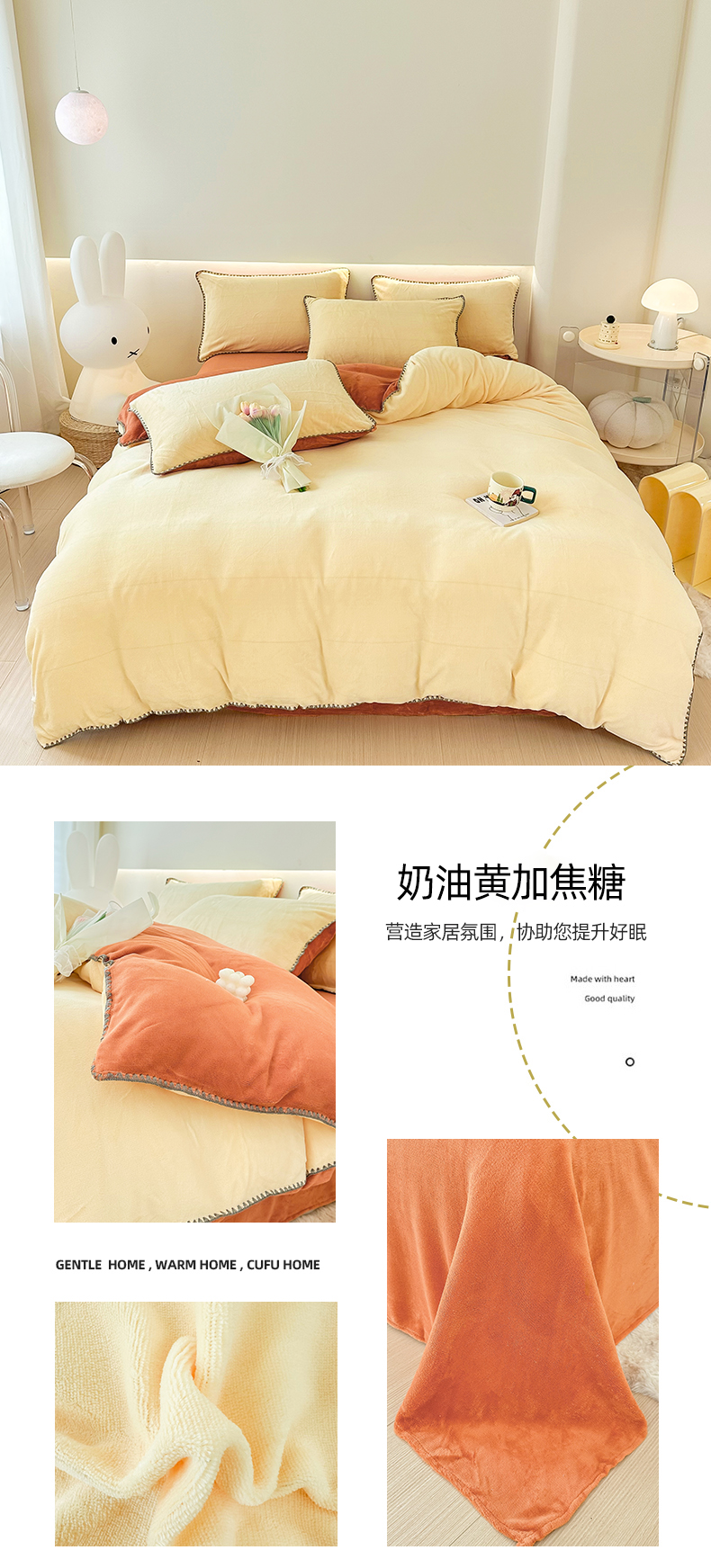 迷仙巢家纺 2023新款贝壳绒四件套 奶油黄加焦糖