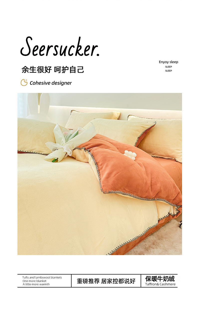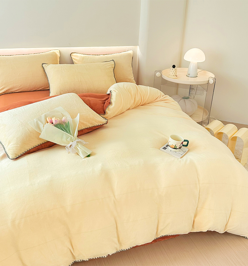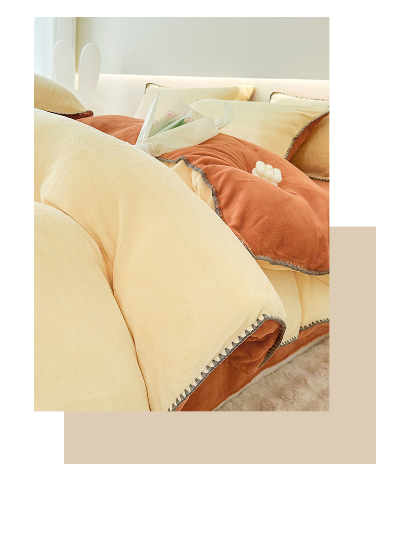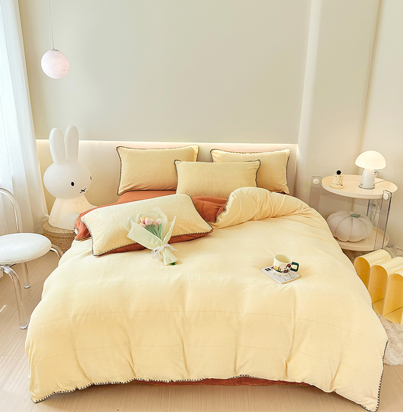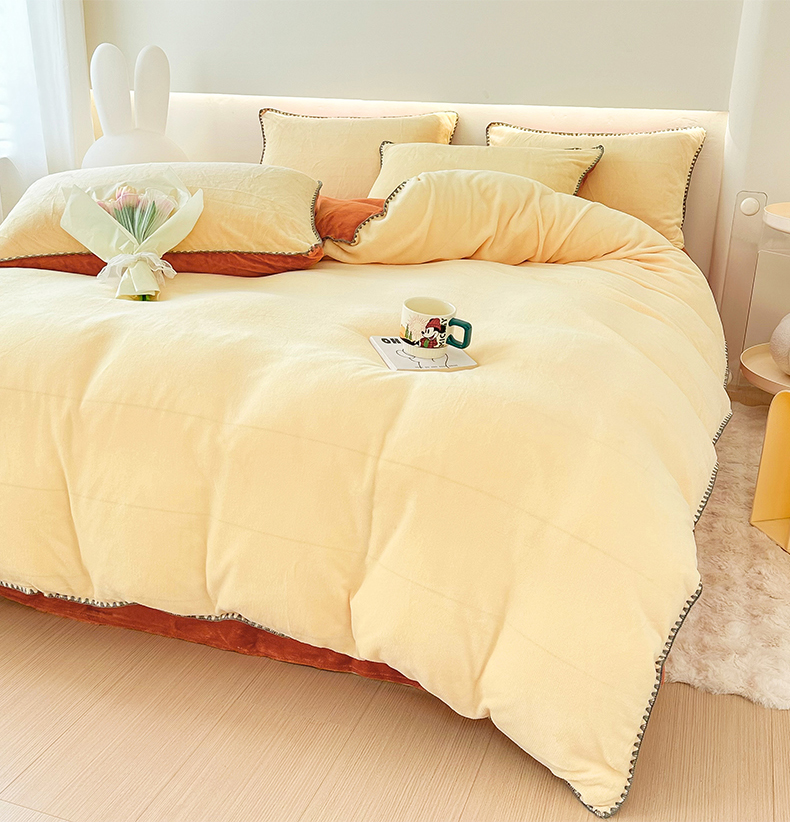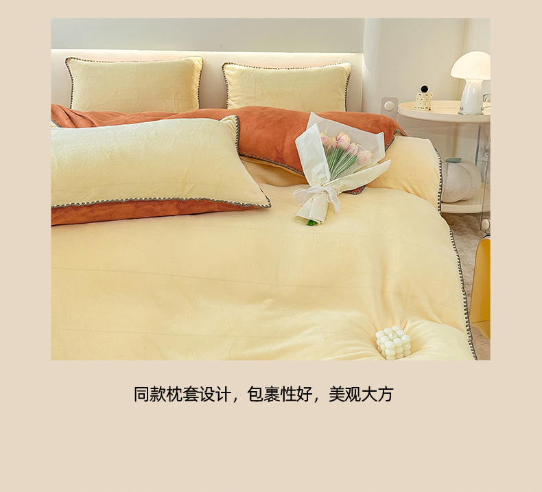 迷仙巢家纺 2023新款贝壳绒四件套 奶油黄加焦糖
