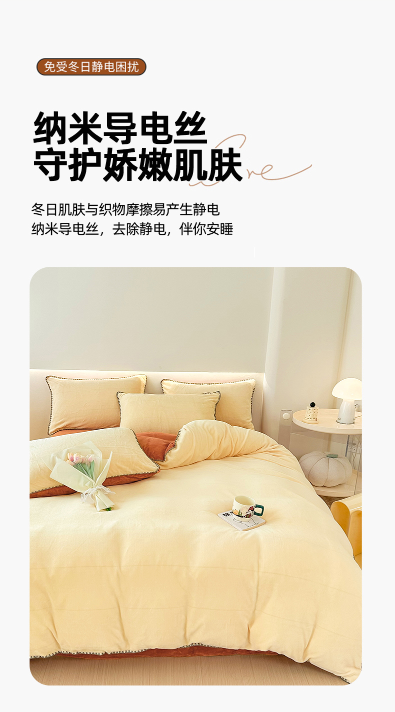 商品名称:迷仙巢家纺 2023新款贝壳绒四件套 奶油黄加焦糖