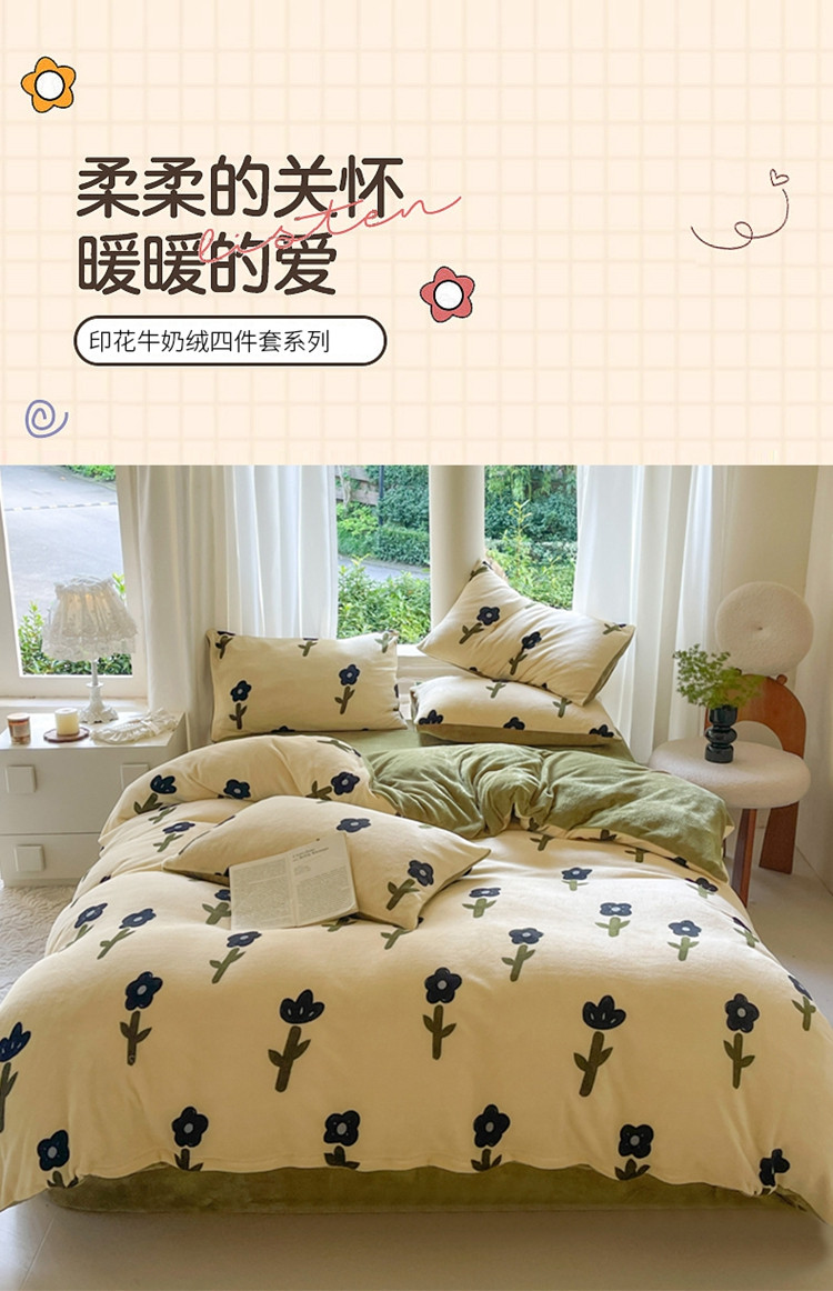 仟网汇 2023新款印花双面牛奶绒四件套 小美好