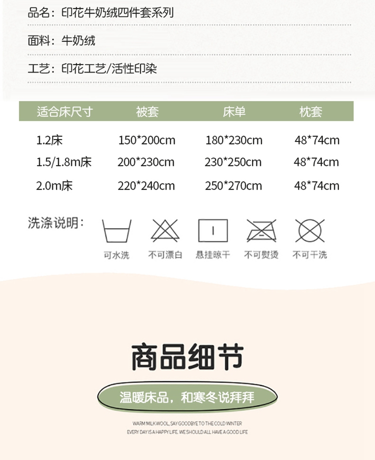 商品名称:仟网汇 2023新款印花双面牛奶绒四件套 小美好