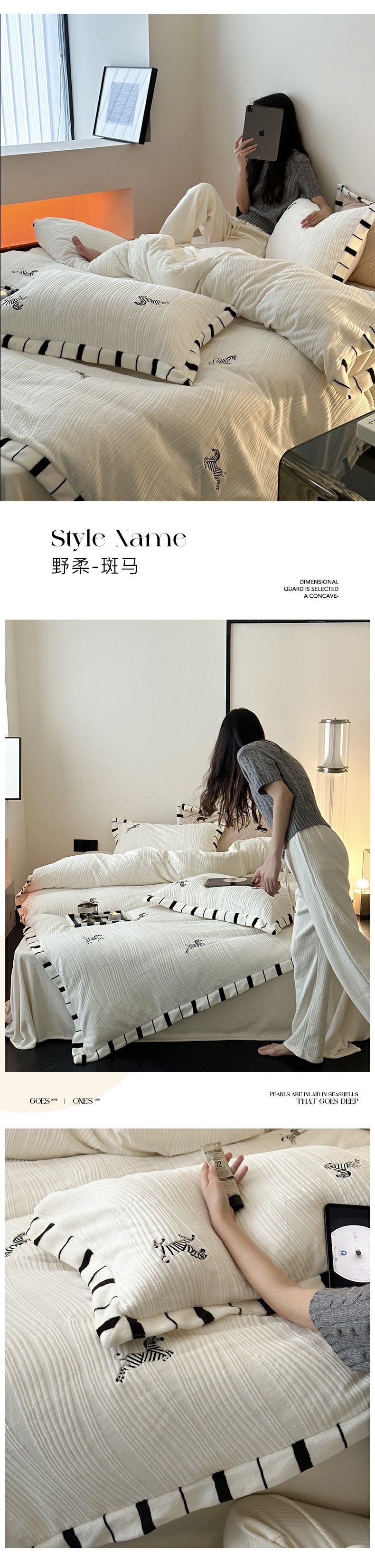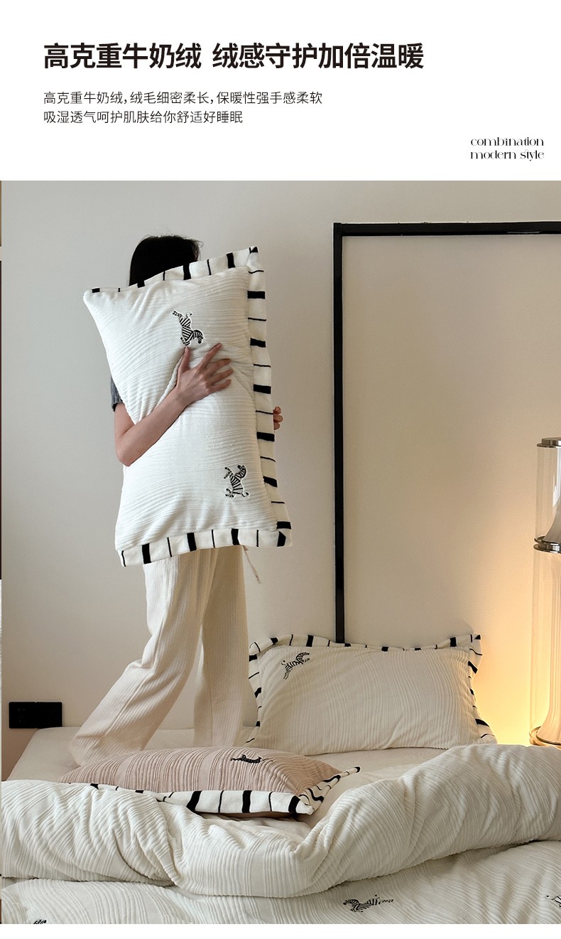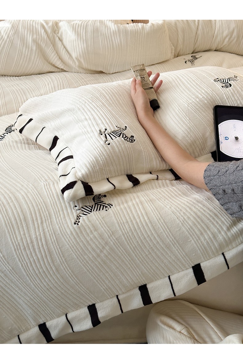 总安莱生活2023年新品专版撞色宽边刺绣牛奶绒230克四件套-野柔系列
