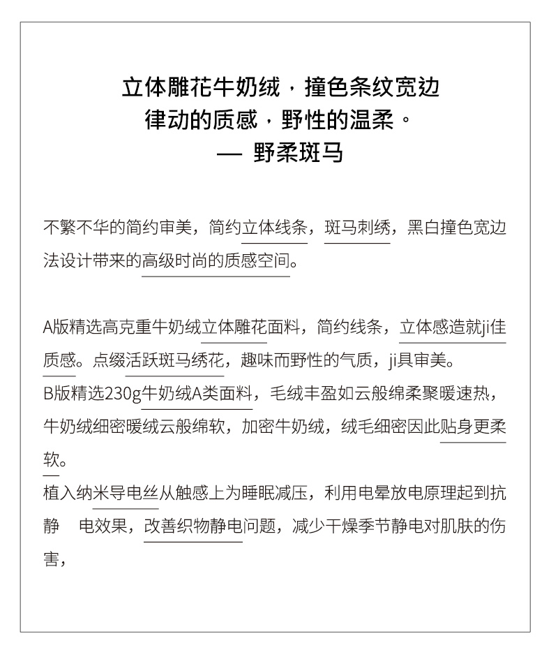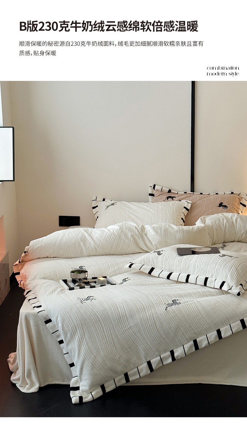 商品名称:总安莱生活2023年新品专版撞色宽边刺绣牛奶绒230克四件套-野柔系列
