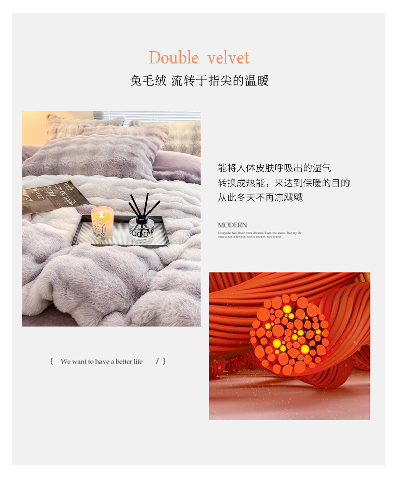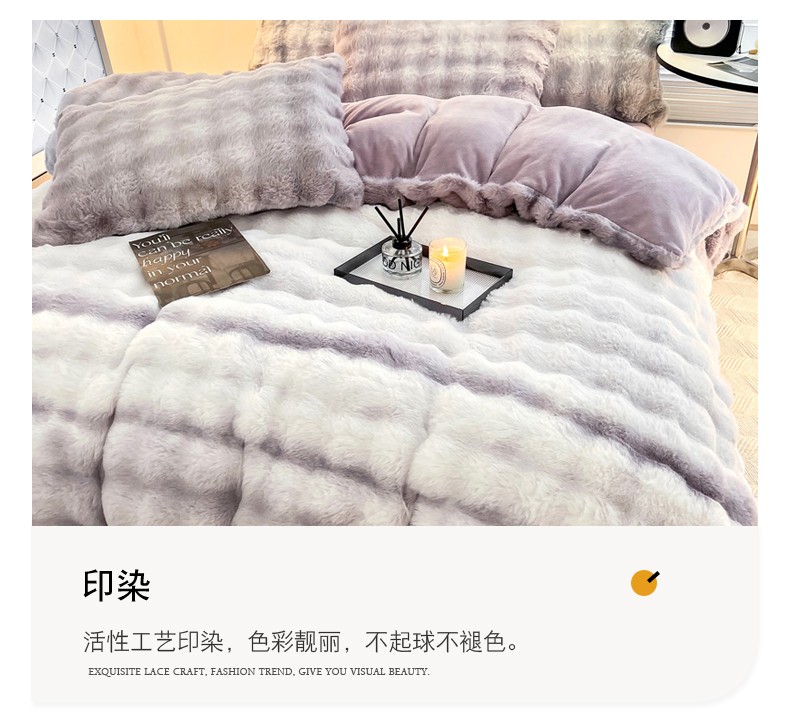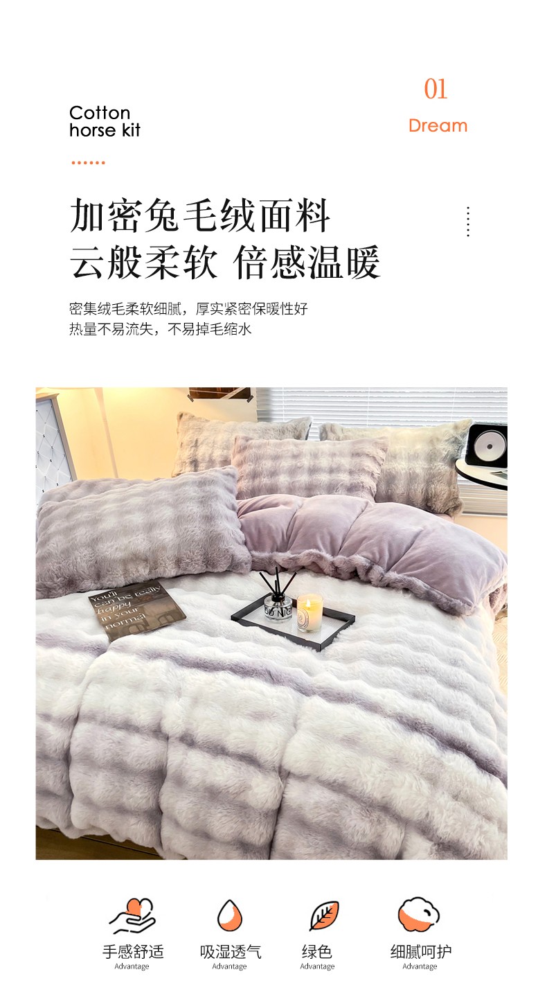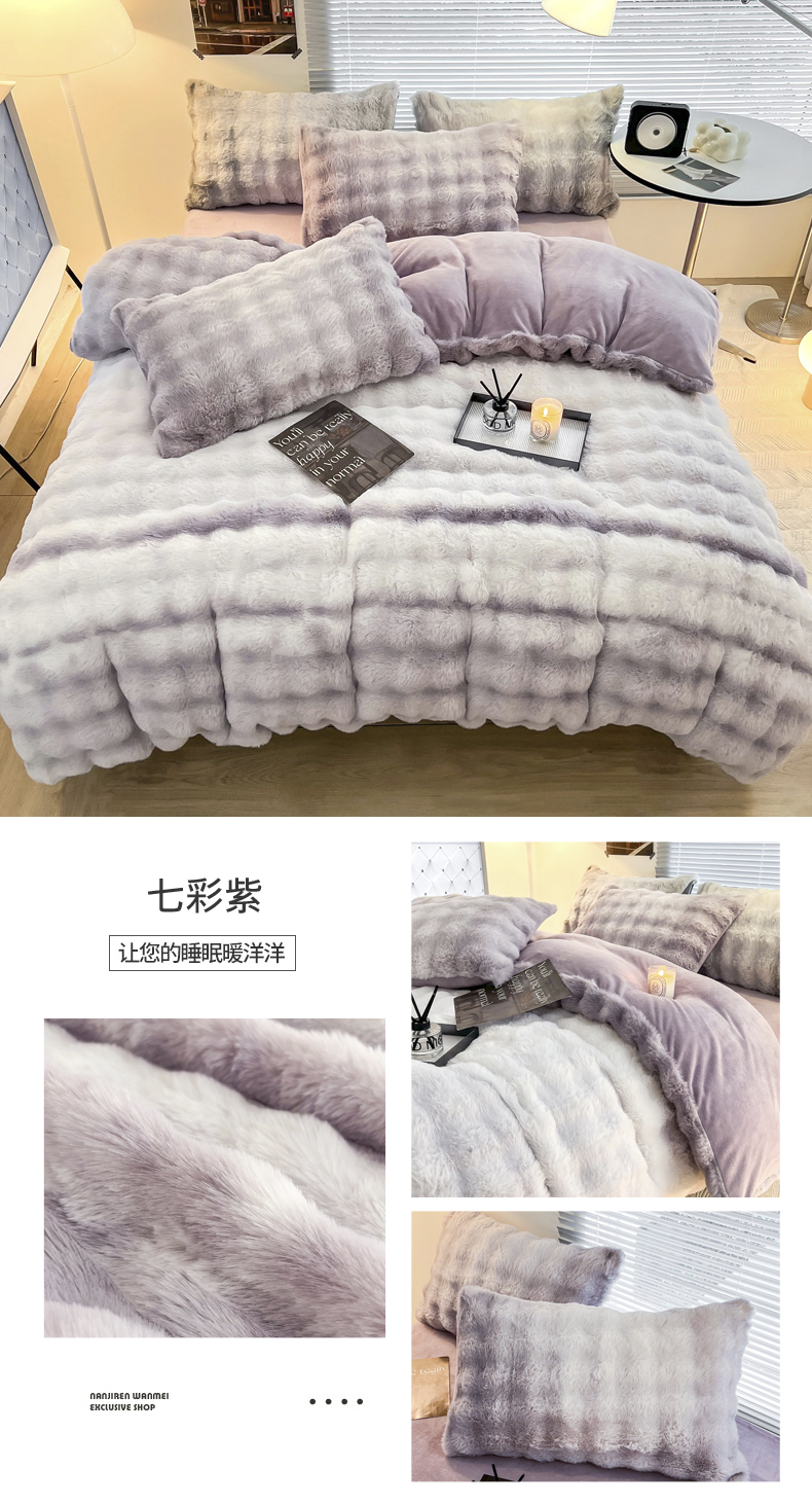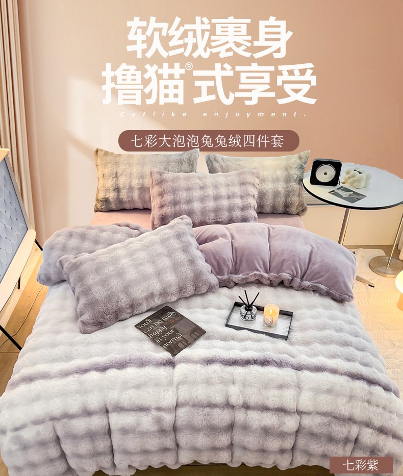 商品名称:金爱家 2023新款七彩大泡泡兔兔绒兔毛绒四件套 七彩紫