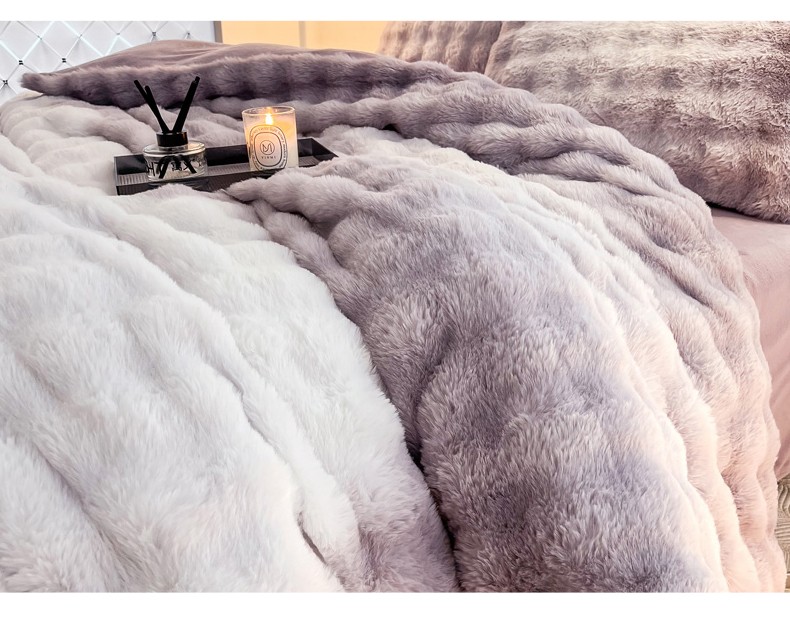 金爱家 2023新款七彩大泡泡兔兔绒兔毛绒四件套 七彩紫