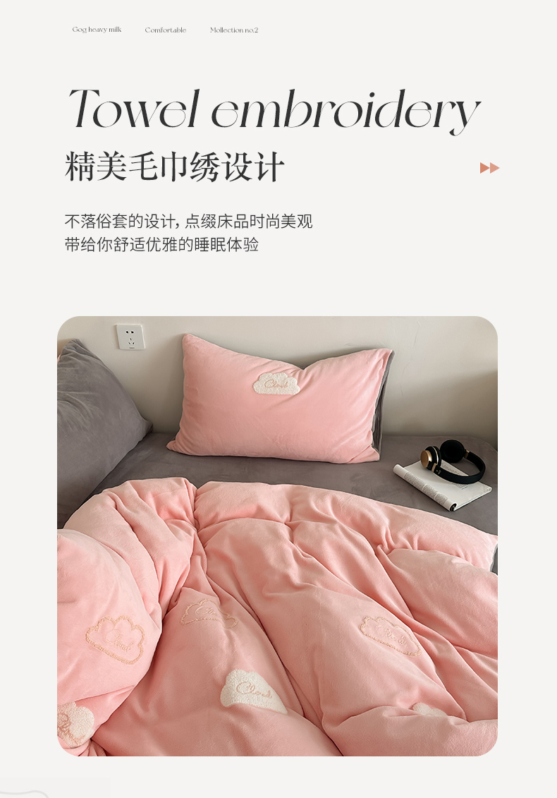 当前位置: 91家纺网 > 商品网购 > 床品套件 > 四件套 > 牛奶绒四件套 > 时年家纺 2023新款高克重牛奶绒立体毛巾绣四件套 充值会员优惠5元 云朵-粉