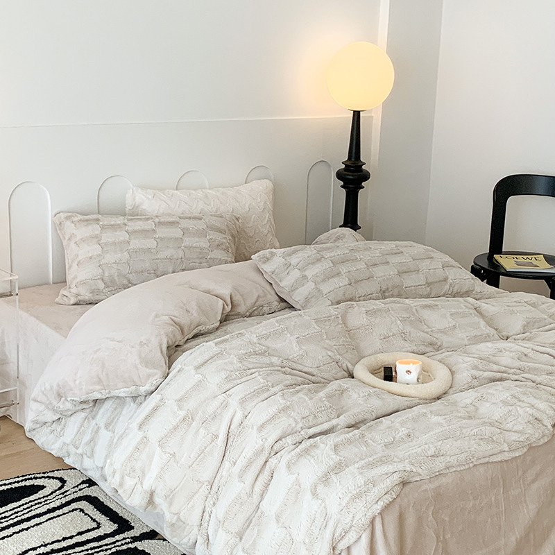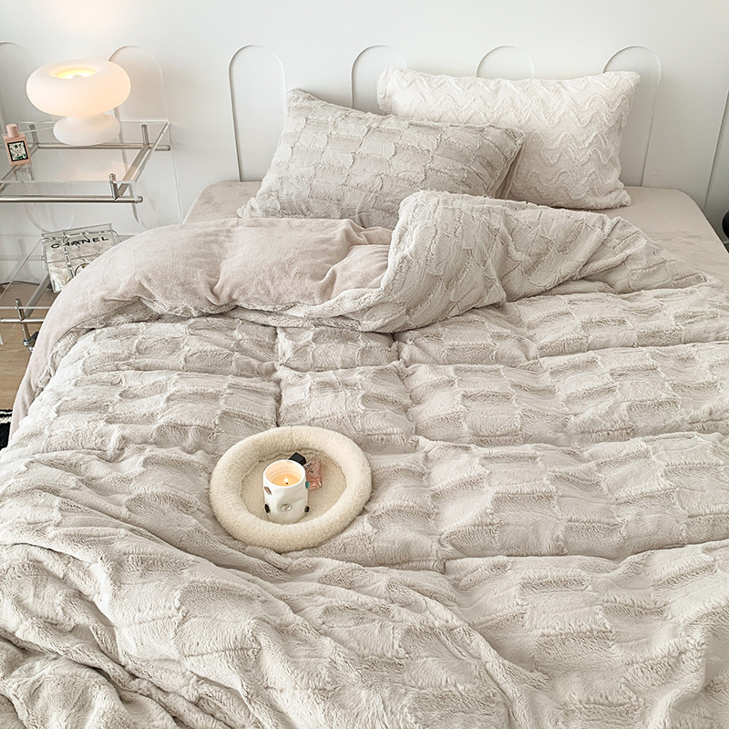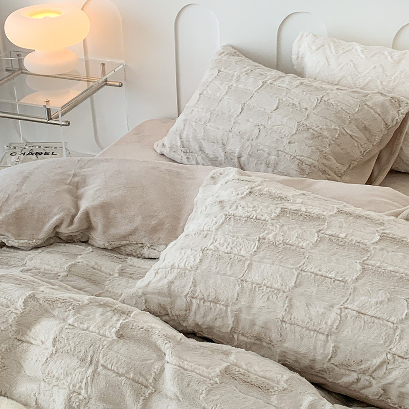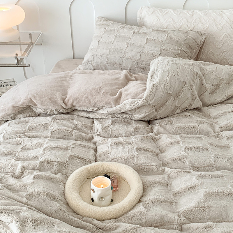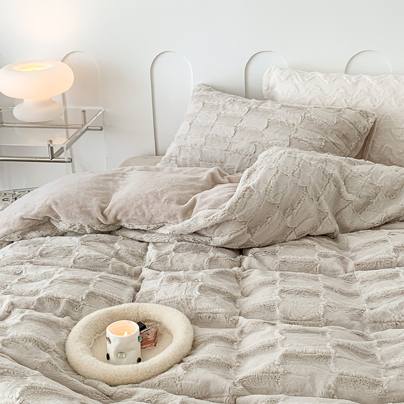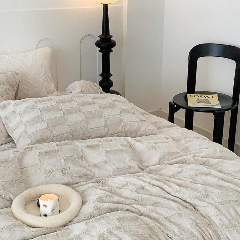 昔可家纺 2023新款ins风纯色兔兔绒兔毛四件套 格调卡其色