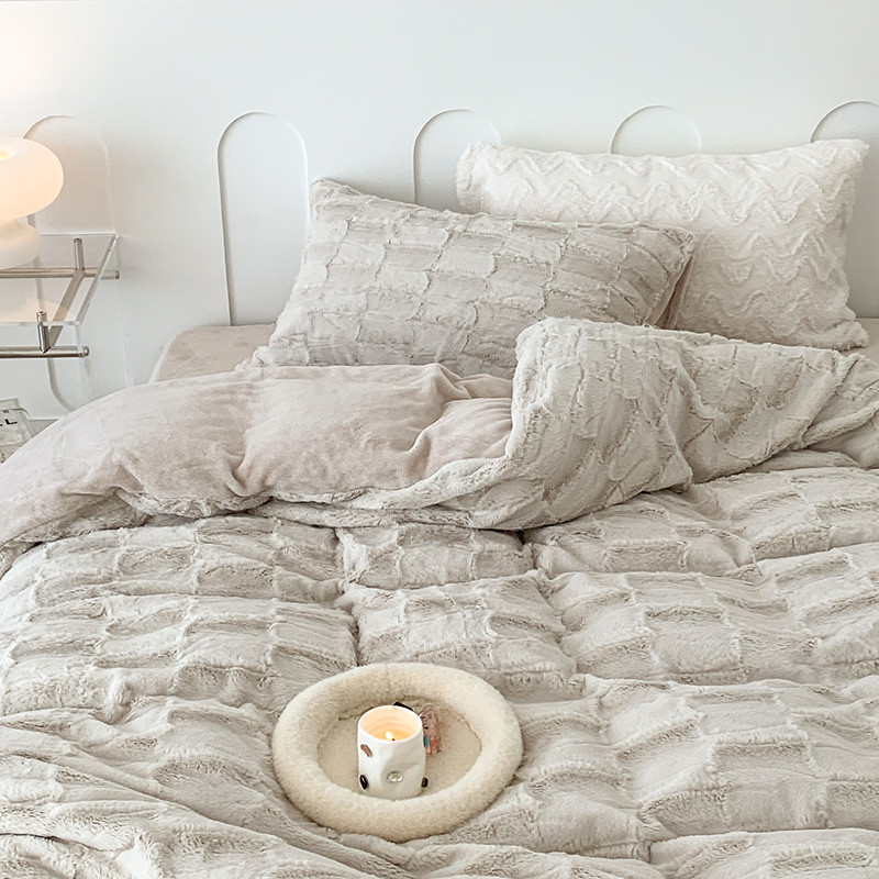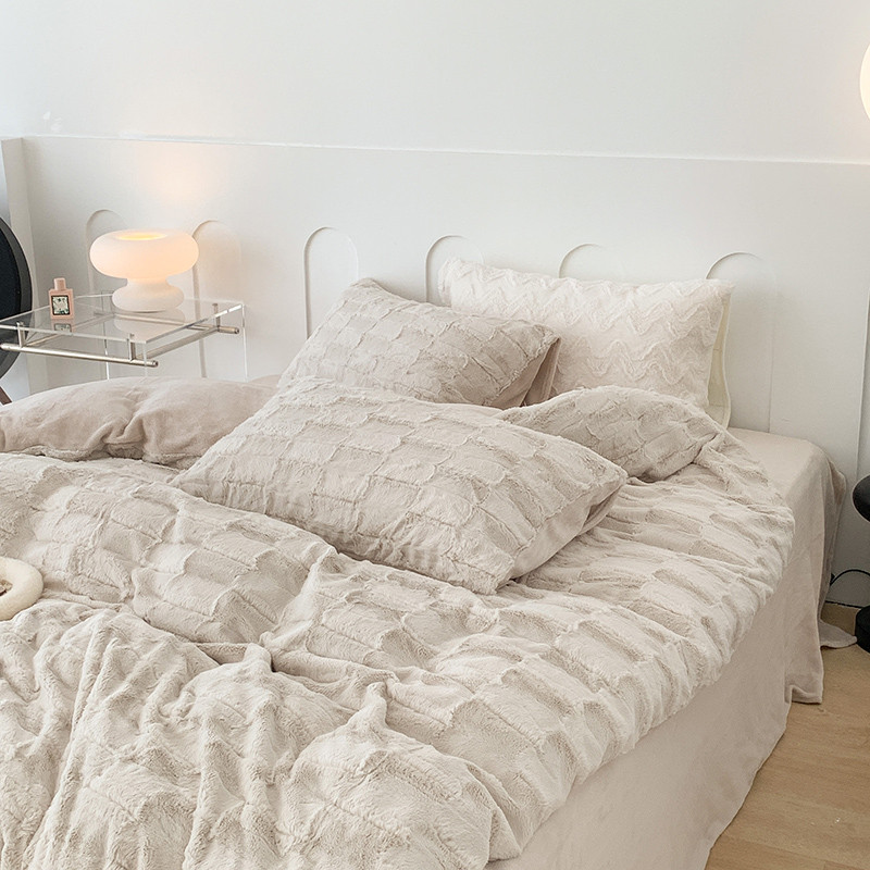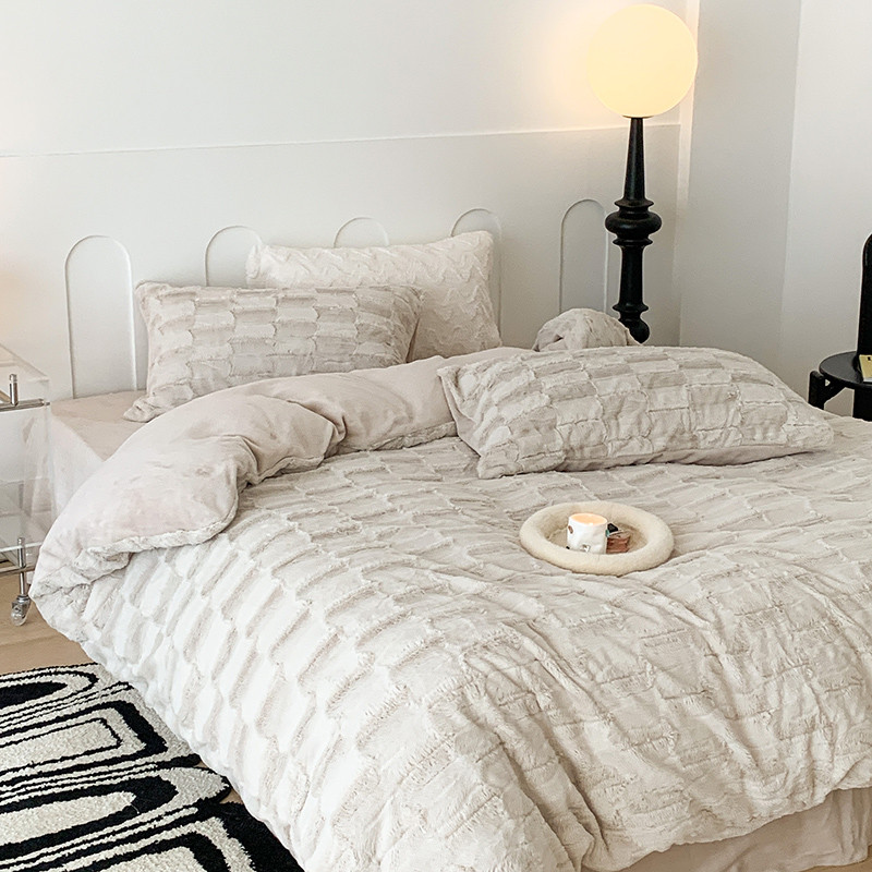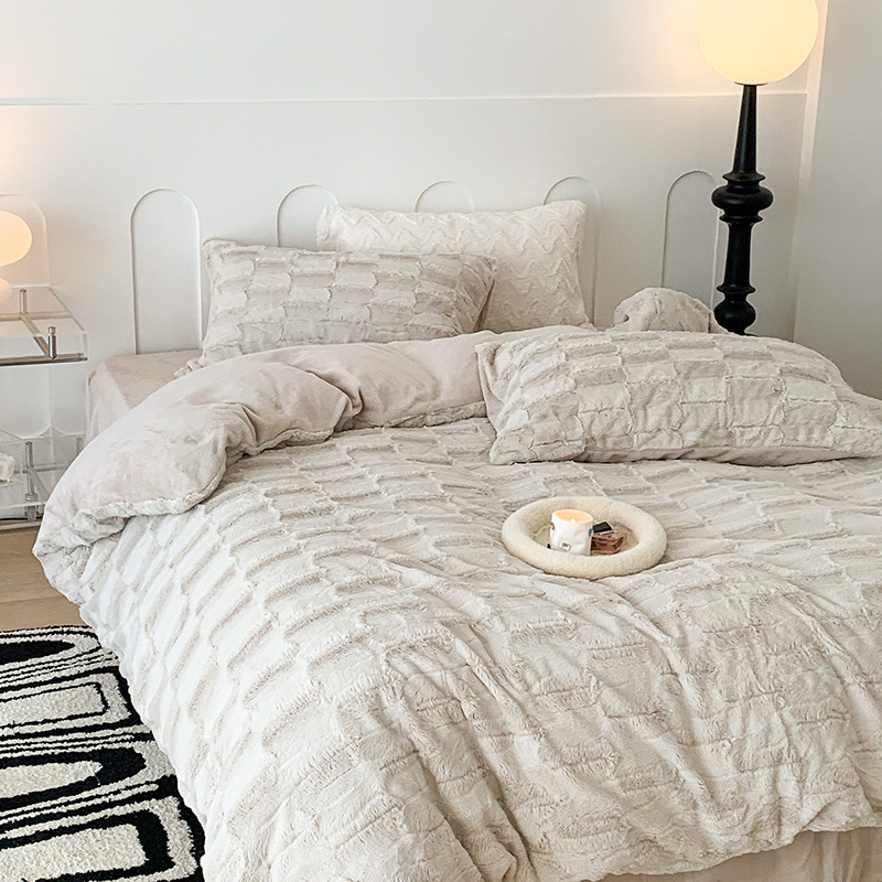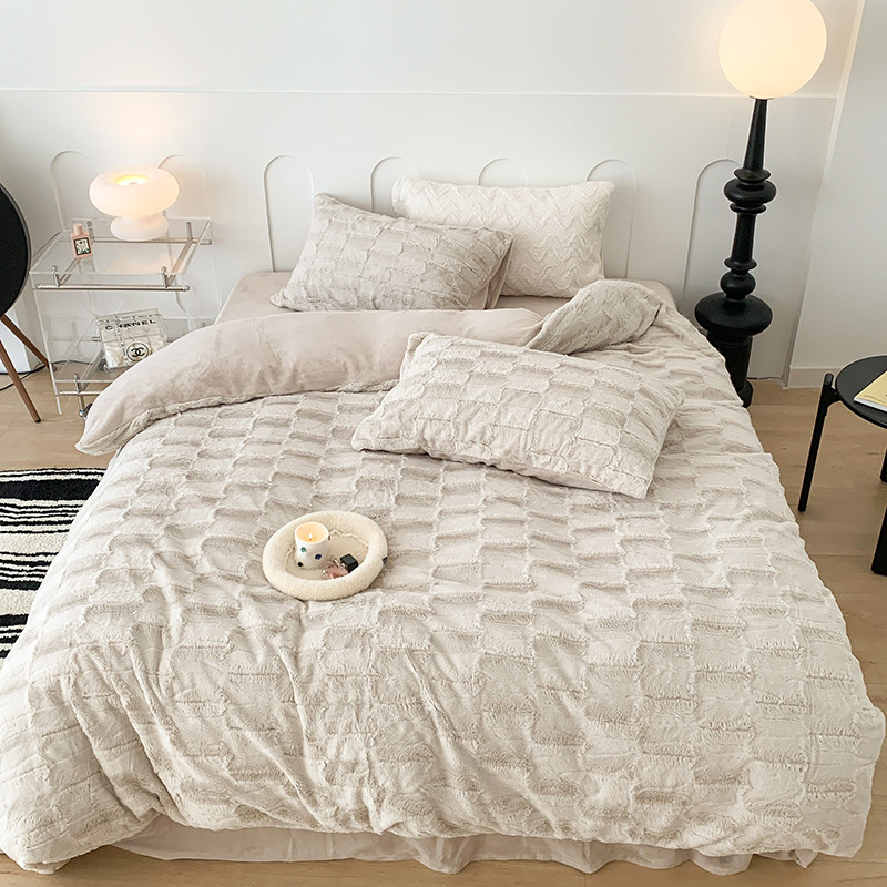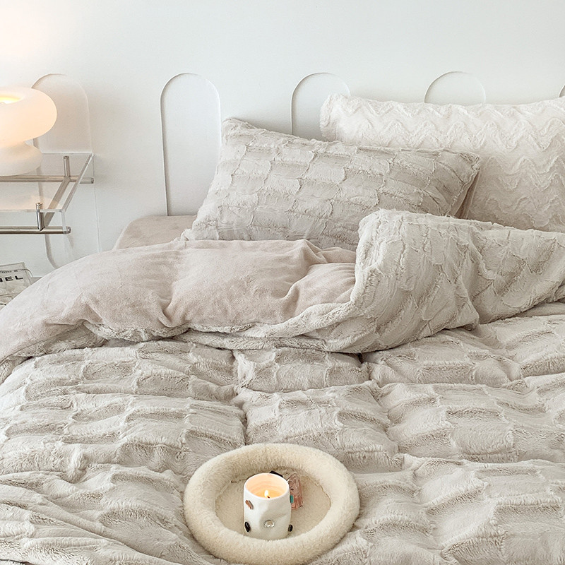 昔可家纺 2023新款ins风纯色兔兔绒兔毛四件套 格调卡其色