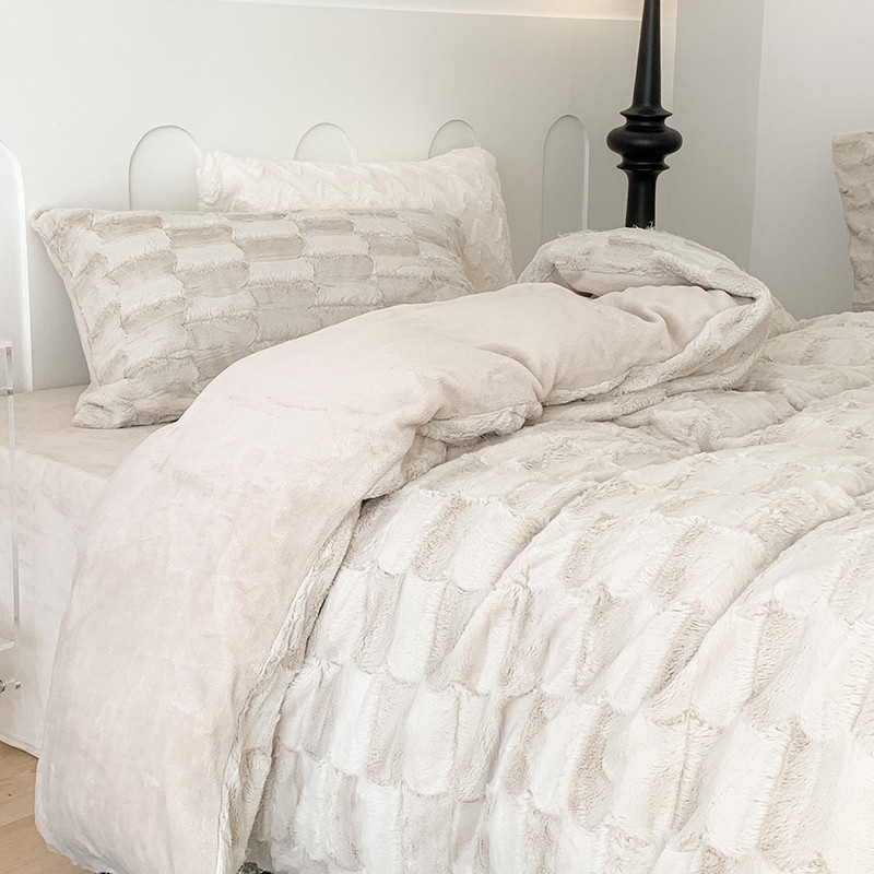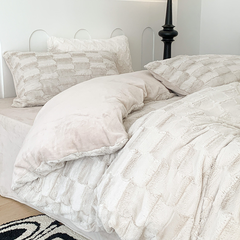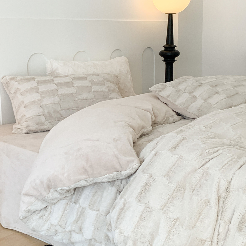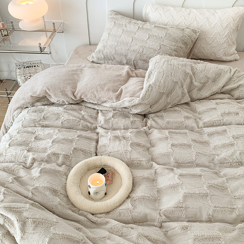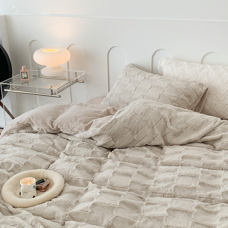 商品名称:昔可家纺 2023新款ins风纯色兔兔绒兔毛四件套 格调卡其色