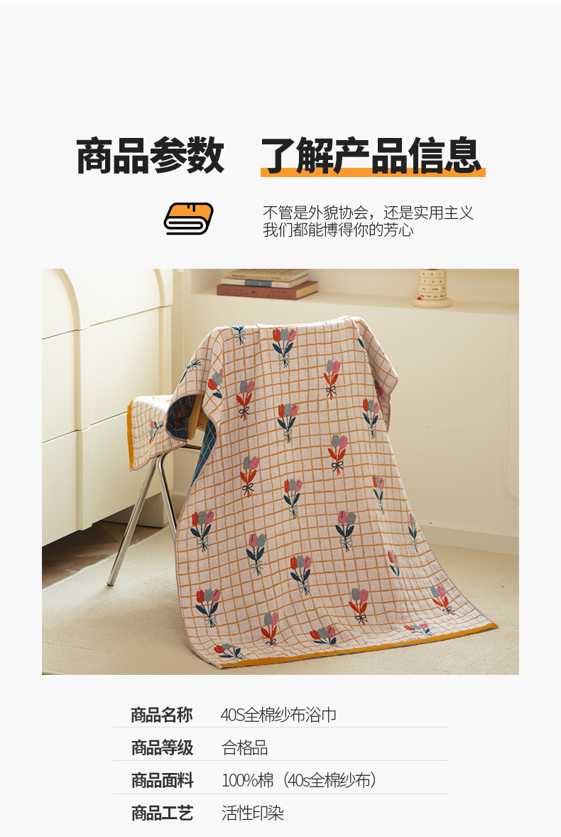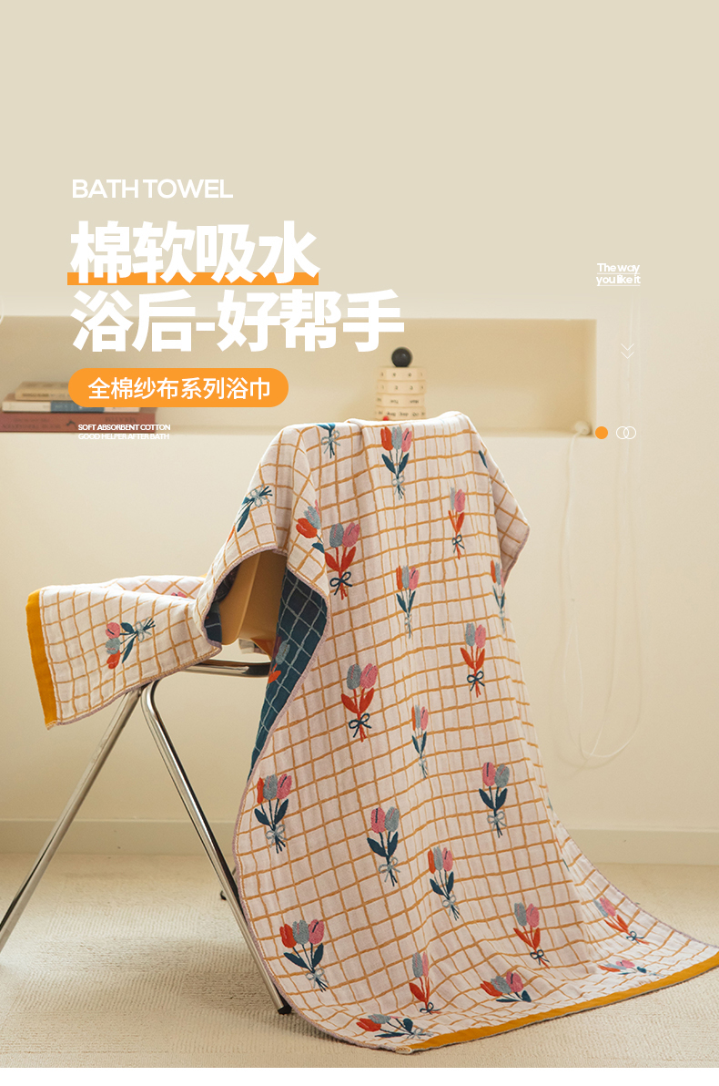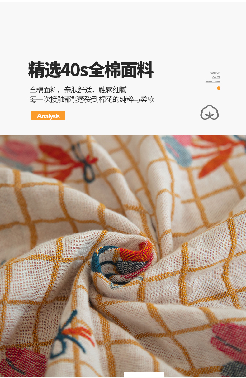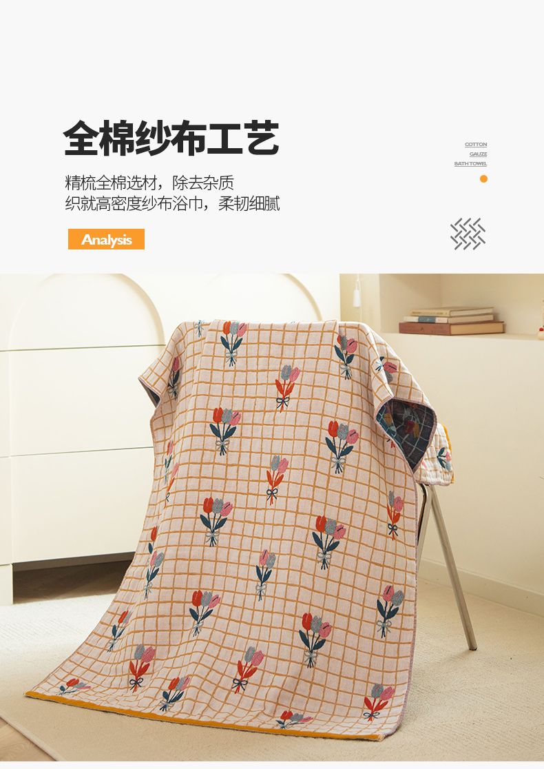 当前位置: 91家纺网 > 商品网购 > 居家日用 > 毛巾/浴巾/浴袍 > 浴巾 > 雯雨家纺 2023新款全棉卡通系列纱布浴巾 碎花物语-白