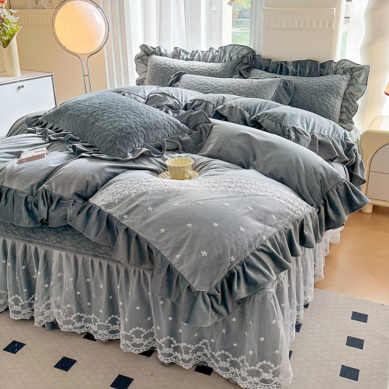 (总)漫布云 2025新款230g高克重韩版立体盘花牛奶蚕丝绒绣花四件套床裙款被套-洛丽塔系列,洛丽塔-嫩黄 ,洛丽塔-香芋紫 , 洛丽塔-珍珠粉,洛丽塔-婴儿蓝