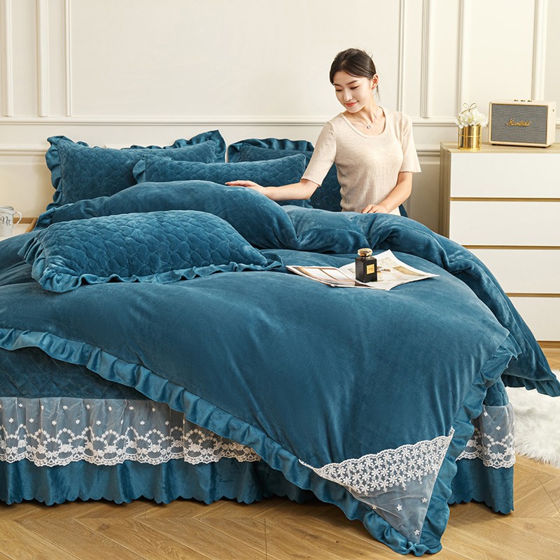 商品名称:漫布云家纺2023新款浪漫花语秋冬保暖加厚牛奶绒夹棉床盖四件套