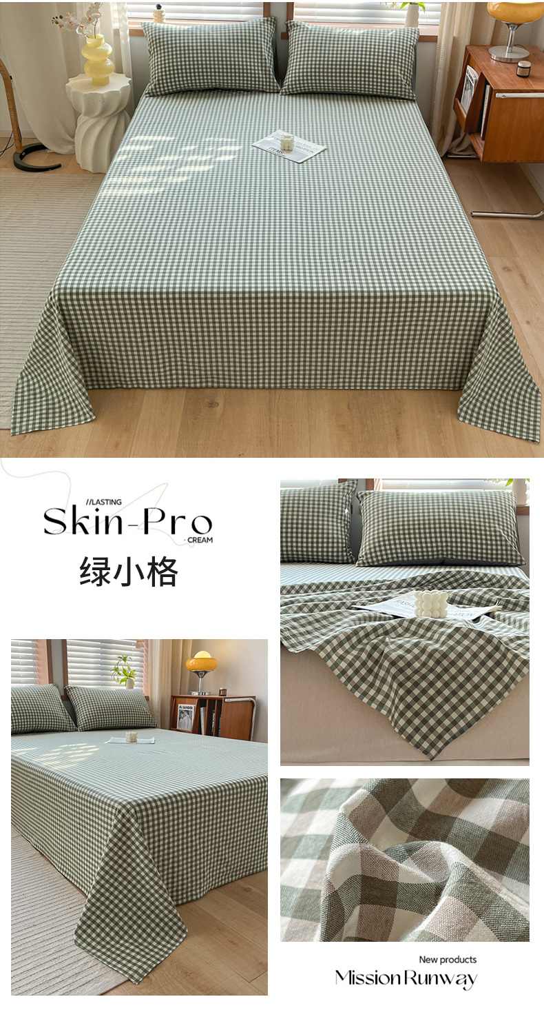 启程家纺 2026新款全棉A类水洗棉多规格四件套单品-单床单 绿小格