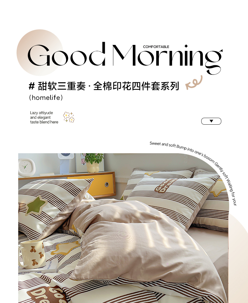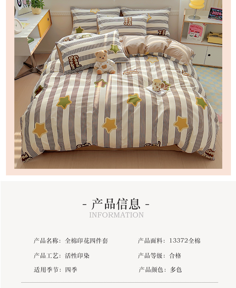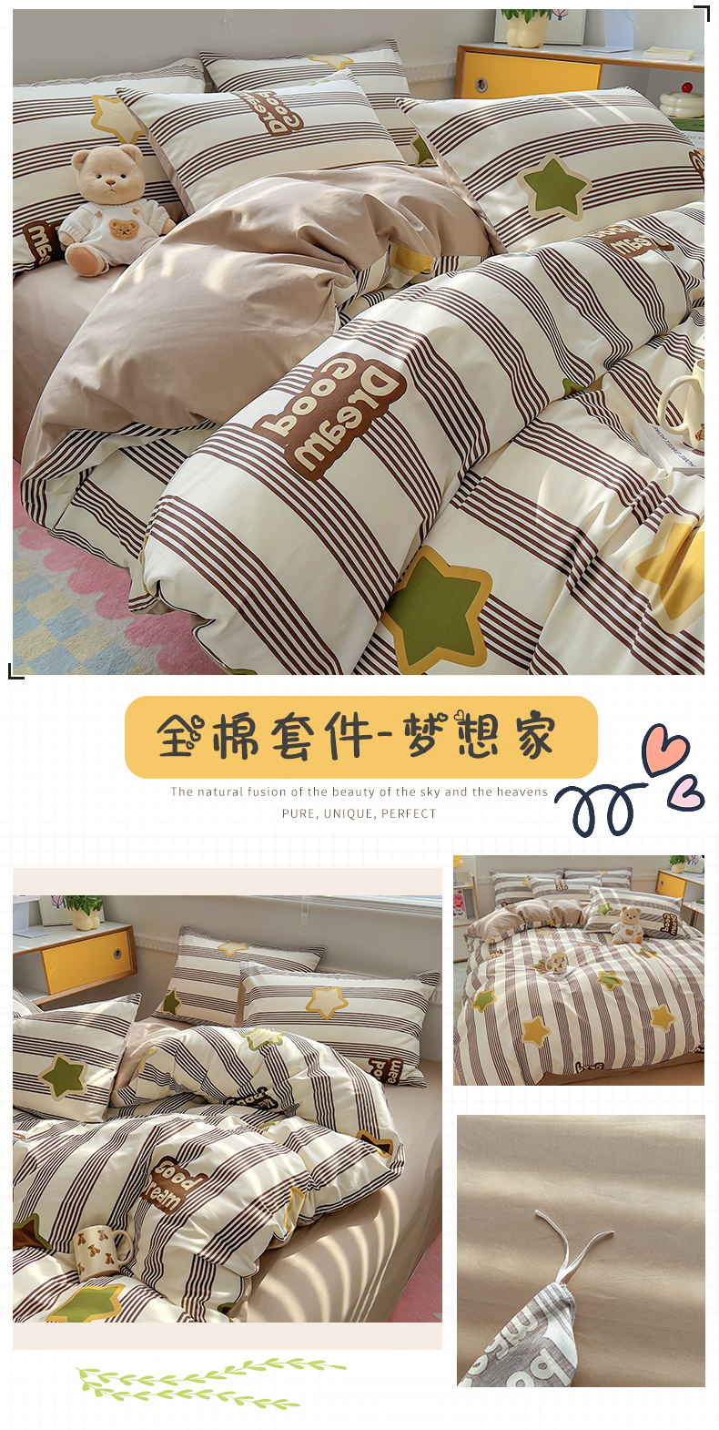 当前位置: 91家纺网 > 商品网购 > 床品套件 > 四件套 > 全棉普通四件套 > 百寐2024新款小清新碎花卡通13372全棉四件套纯棉床单床笠款 梦想家