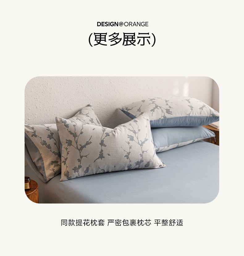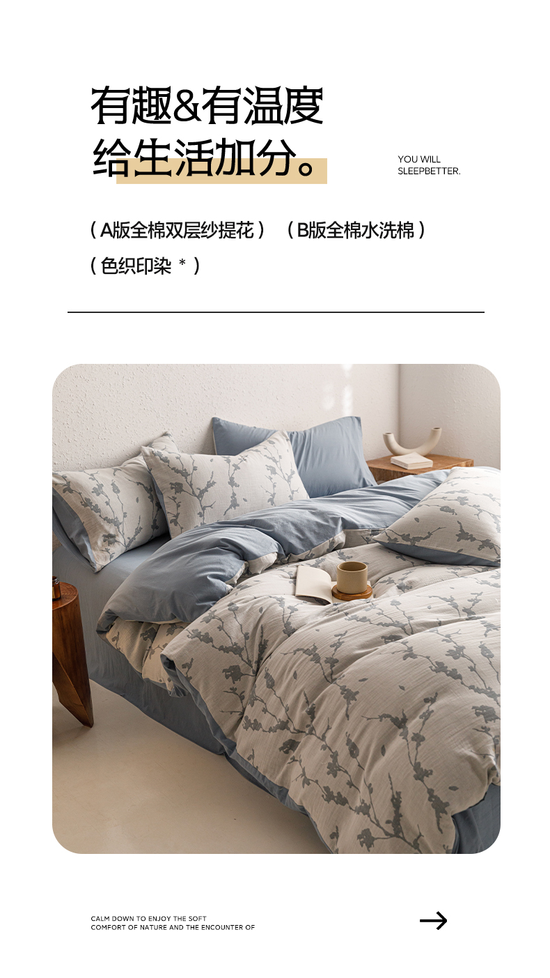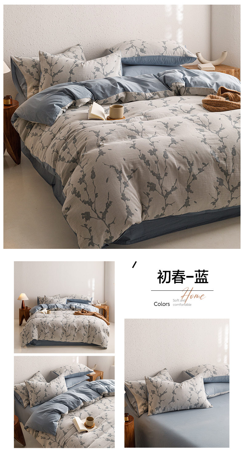 商品名称:雅居纺家纺 2024新款双层纱色织提花四件套 初春-蓝